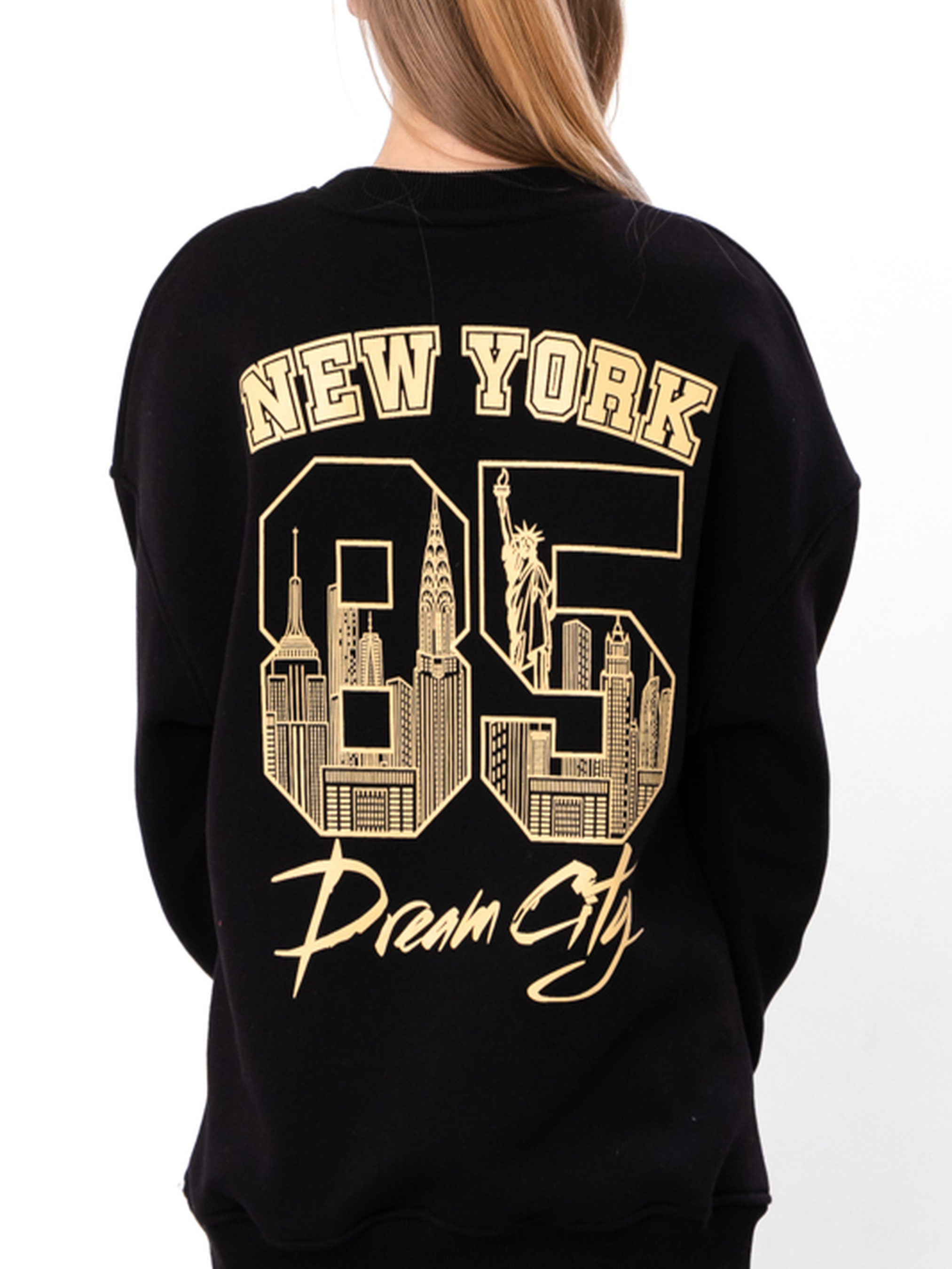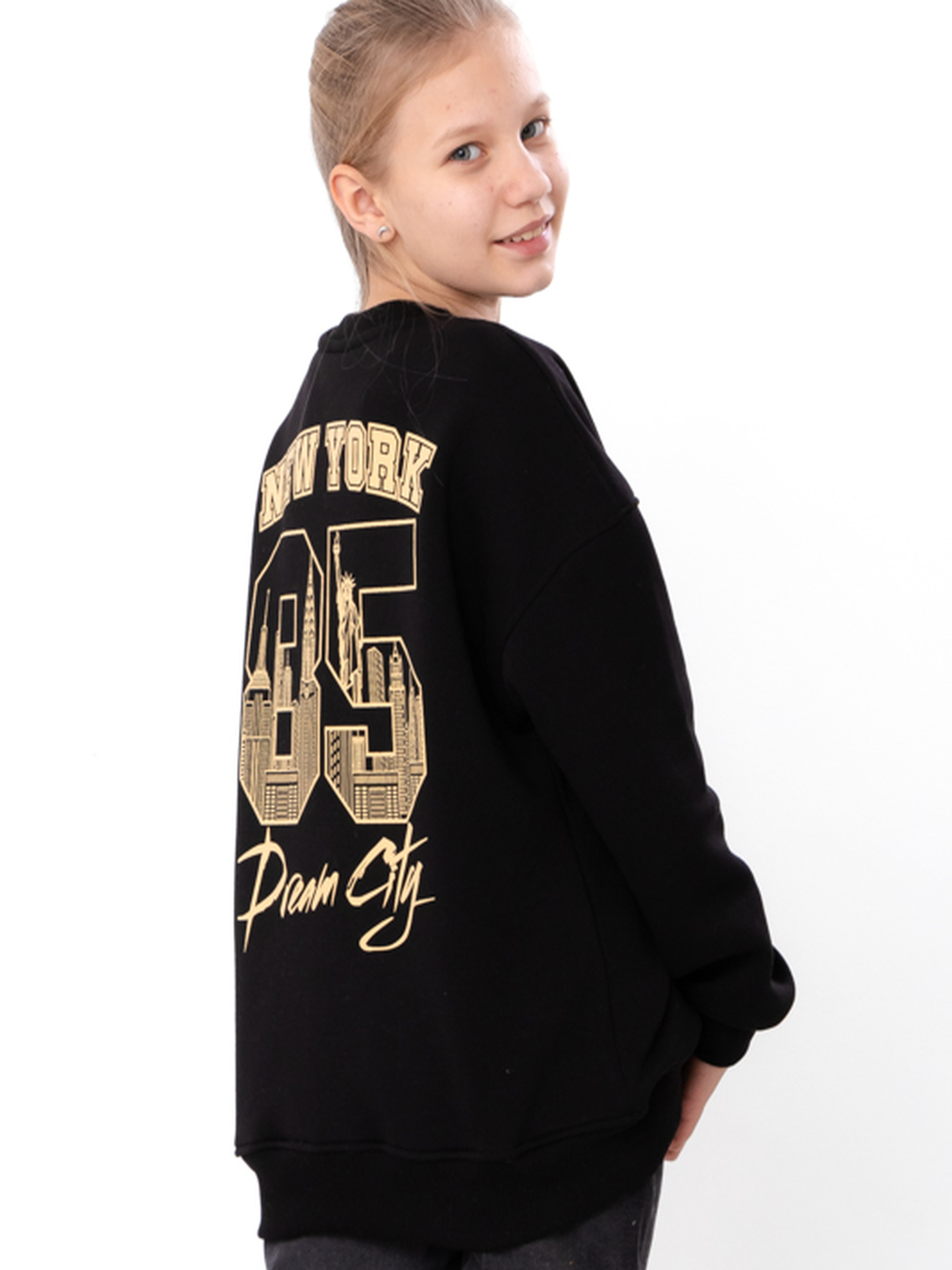Полотно: трьохнитка однотонна Склад полотна: 80% бавовна, 20% поліестер Зріст: 140-170 Теплий світшот для дівчинки оверсайз крою з принтом New York це улюблений елемент гардероба сучасних дівчаток. Однотонна модель із щільної трьохнитки однотонної виглядає стильно. Склад полотна вісімдесят відсотків бавовна двадцять відсотків поліестер. Трьохниткове полотно добре тримає форму не розтягується та чудово зберігає тепло. Оверсайз крій забезпечує максимальну свободу рухів. Модель має м'які манжети та акуратну горловину що забезпечують зручну посадку. Великий принт "NEW YORK 85 Dream City" на спині додає трендовий вигляд. Такий світшот для дівчинки ідеально комбінується з джинсами лосинами чи спідницями.