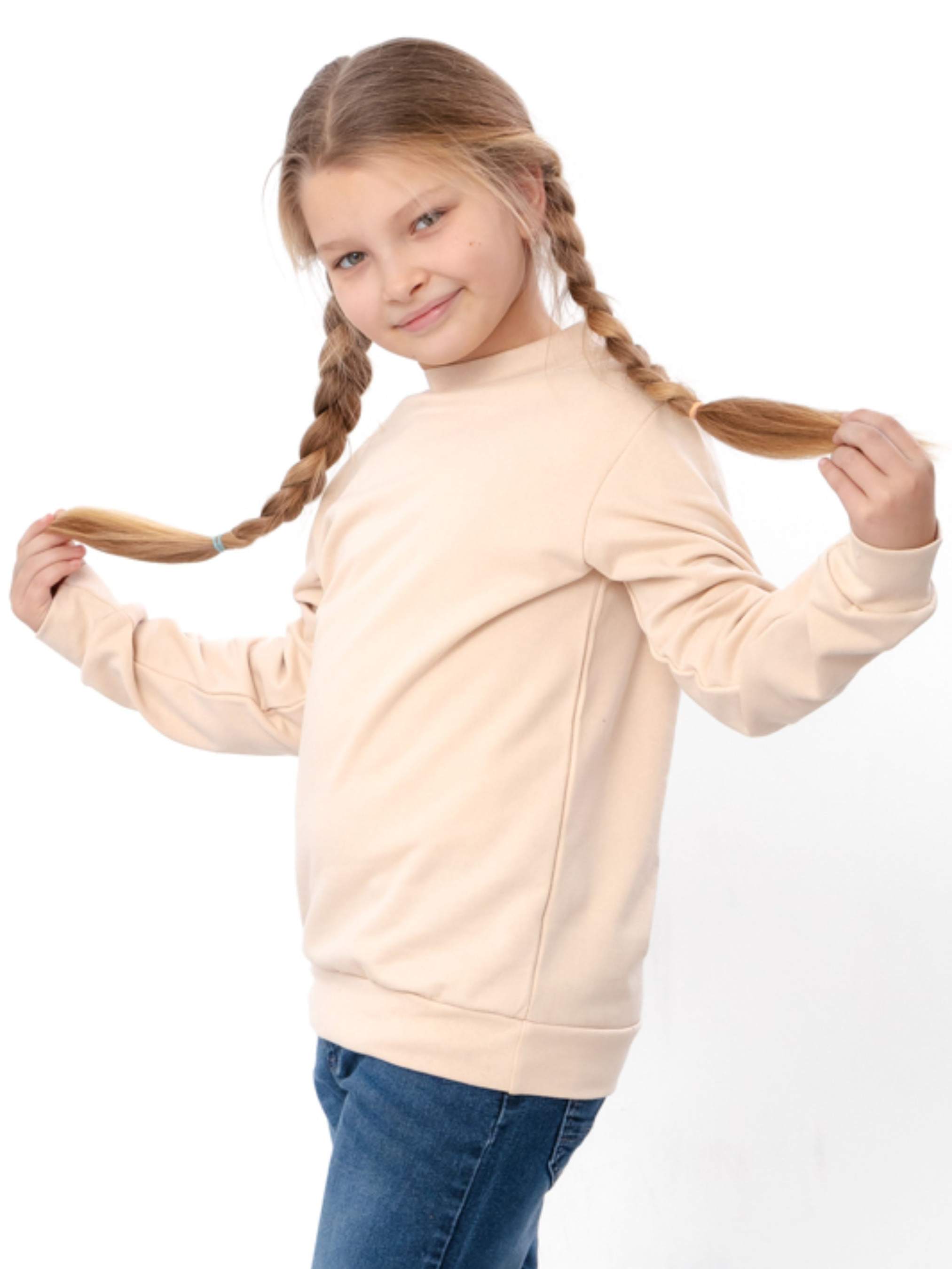 Утеплений джемпер для дівчинки однотонний прямого крою, Бежевий Носи Своє (6069-023-5) модель 6069-023-5-kremovij