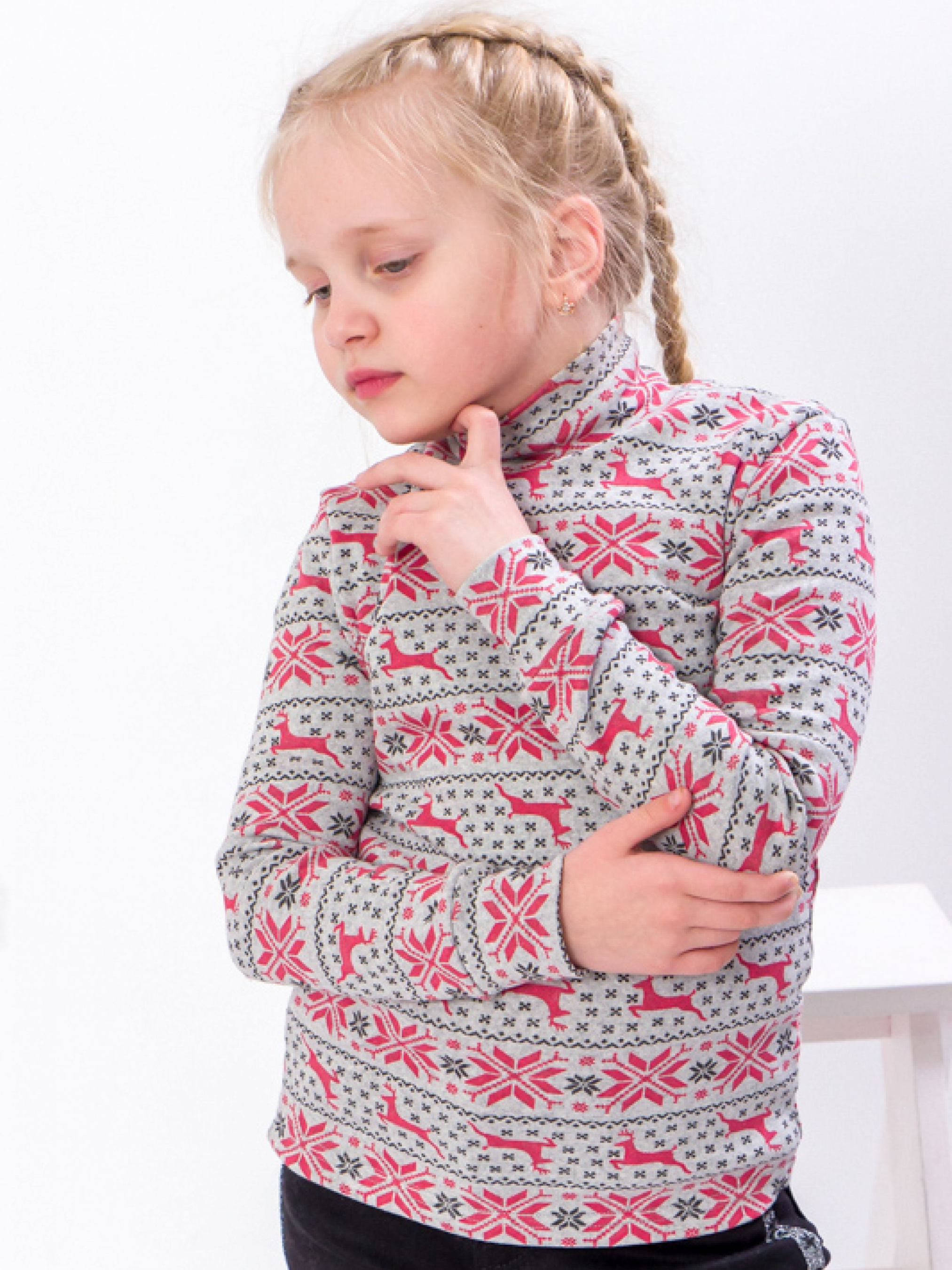 Полотно: стрейч-начос принтований Склад полотна: 95% бавовна 5% лайкра Зріст: 86-158 Яскравий дитячий гольф прикрасить гардероб ваших маленьких модників надаючи вашій дитині ошатний вигляд. Гольф стане відмінним доповненням як до ділового костюму так і джинсів. Модель виконана зі стрейч-начесу. Полотно щільне тепле з гладкою лицьового боку і з м'яким начосом з виворітного боку. Одна з найбільш делікатних і приємних для тіла тканин.
