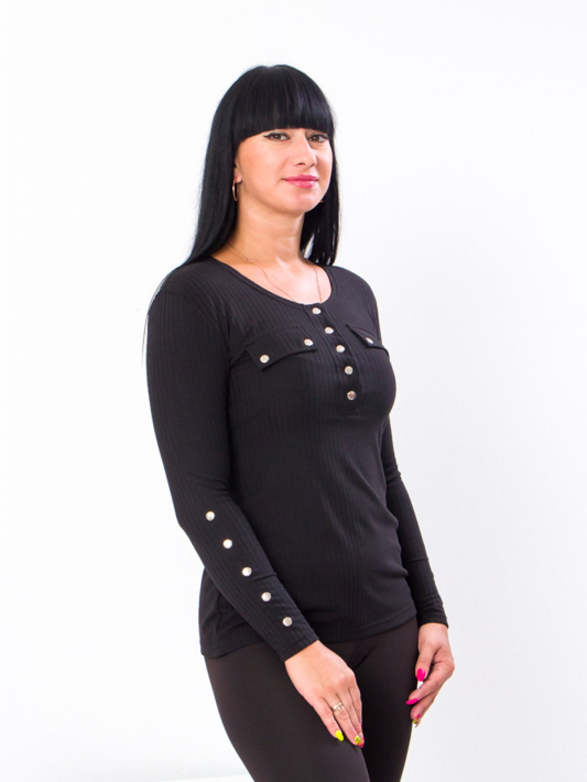 Полотно: трикотаж-рубчик Розмір: 42-52 Представляємо текстурований лонгслів з декоративними кнопками від ТМ Носи Своє який за якістю не поступається аналогом європейських брендів при цьому має невисоку ціну. Ця модель виготовлена з трикотажного полотна «рубчик». Це дуже еластичний м'який і делікатний матеріал який ніжно прилягає до тіла не доставляючи дискомфорт. Виріб має класичний крій - з круглою горловиною і довгими рукавами що робить його оптимальним предметом для базового жіночого гардеробу. Адже лонгслів чудово комбінується з іншими видами одягу а також не буде виділятися під більш щільними речами. Широкий вибір відтінків дозволить вам підібрати колір моделі для будь-якого наряду. Для вашої зручності кожен колір представлений на окремому фото. Лаконічна модель лонгсліву легко впишеться в базовий гардероб і стане ідеальним компаньйоном для створення численних образів. Догляд: прання в теплій воді до 40 ° з нейтральними миючими засобами; прасування злегка нагрітою праскою (не вище 100 °). При пранні не використовуйте засоби що містять відбілювач.