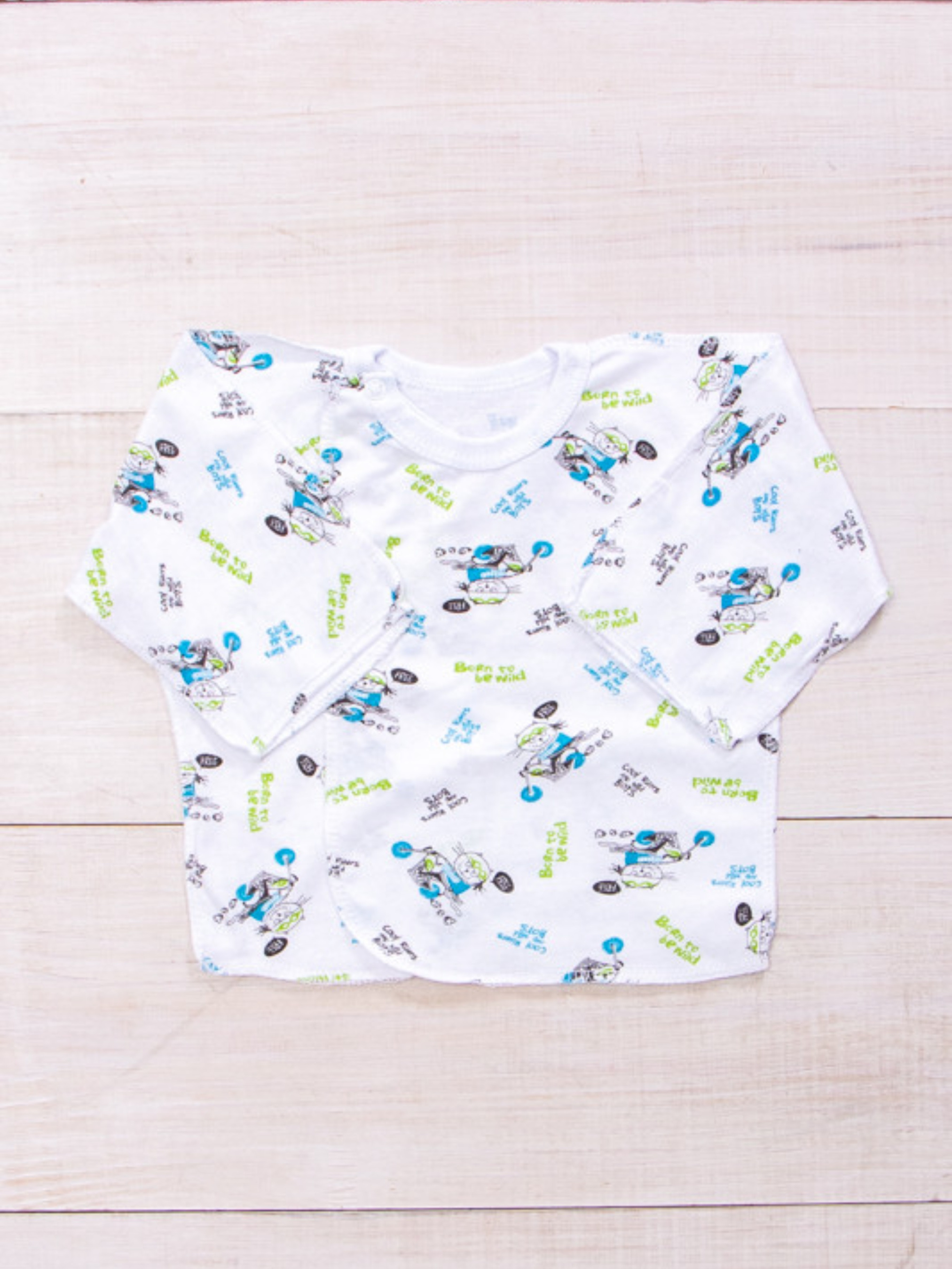 Полотно: кулір набивний Склад полотна: 100% бавовна Розмір 22 Легка простора зручна дитяча сорочечка на запах з довгим рукавом. Виріб виконаний з набивного куліру швами назовні. На плечі застібається на кнопку. Модель призначена для носіння на свіжому повітрі в літню пору. Якість матеріалів бездоганна бавовна відрізняється своїми натуральністю приємлимістью для шкіри і хорошою стійкістю до зносу. Догляд: прання при температурі 30 градусів без попереднього замочування. Вироби з принтом перед пранням необхідно вивернути на виворітний бік барабанна сушка заборонена; прасувати при t не більше 110С; з вивороту; при пранні не змішувати з іншими типами тканин. Продукція бренду відрізняється європейськими стандартами якості і відшивається тільки з сертифікованої сировини. Весь одяг вироблений фабрикою суворо відповідає розмірній сітці. На бірочці вказано орієнтовний зріст дитини а в таблиці - реальні виміри які зробили наші менеджери. Приємних Вам покупок! Прання перед першим носінням ОБОВ'ЯЗКОВЕ!
