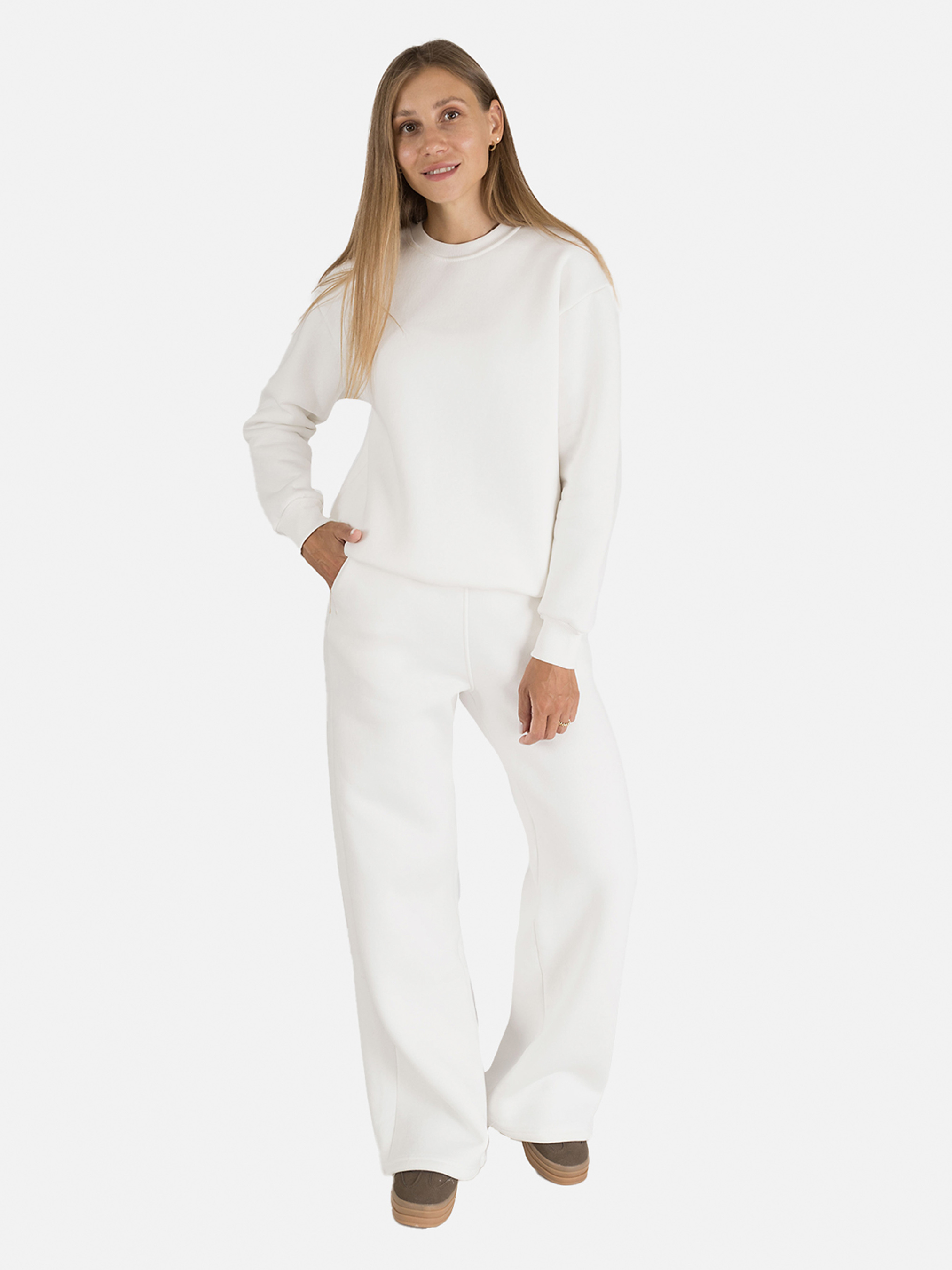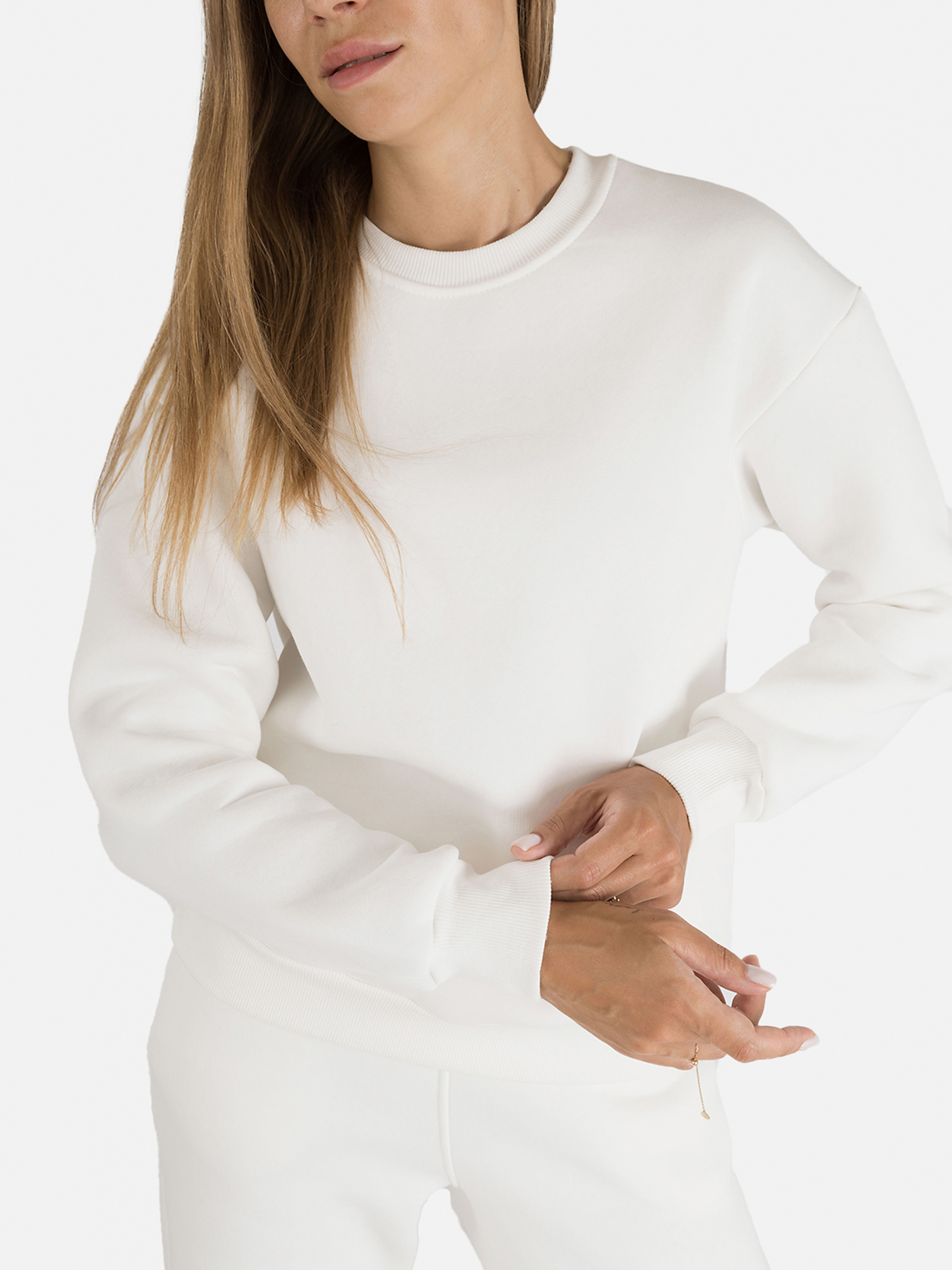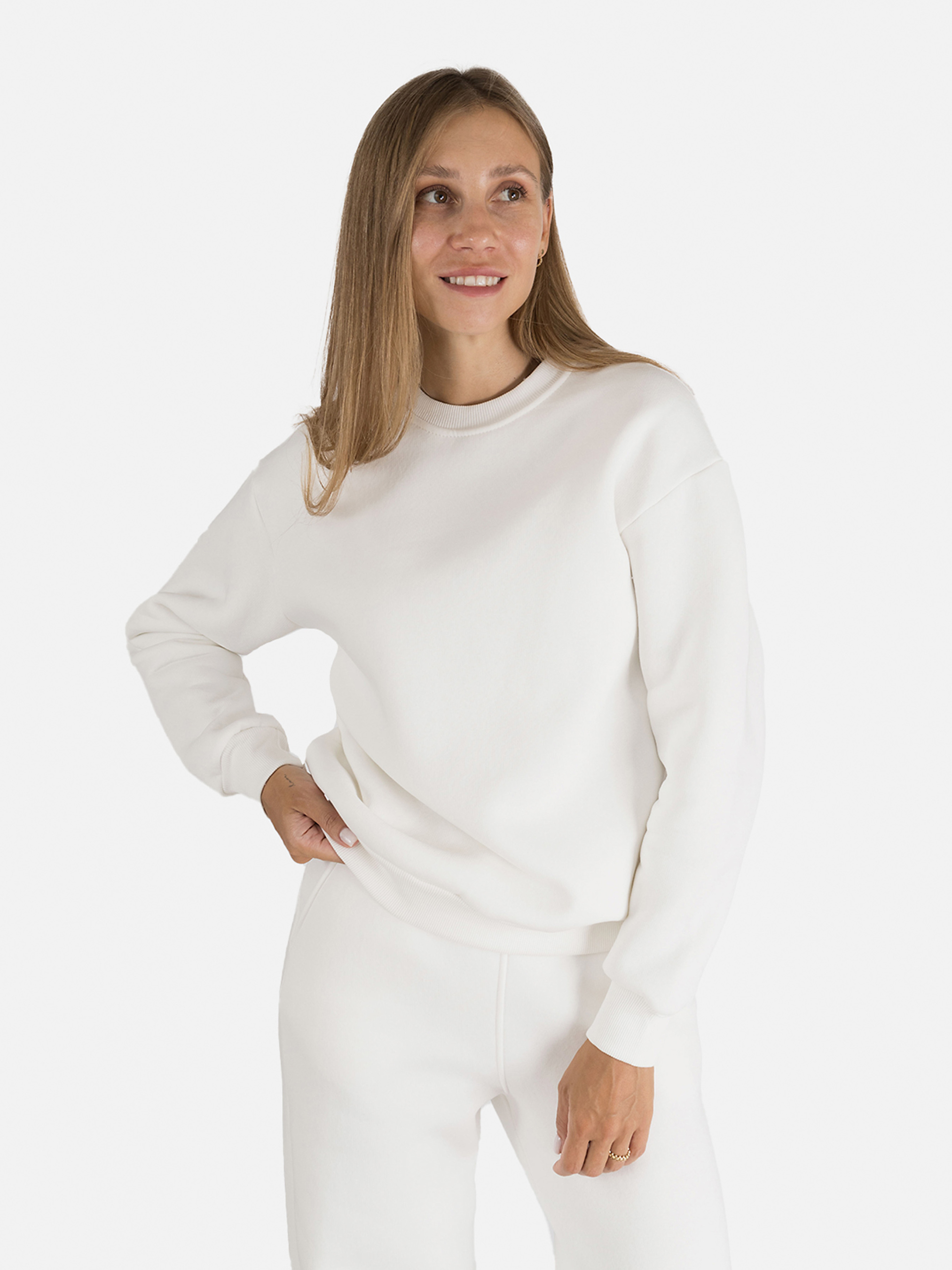 это универсальный предмет одежды, который может быть использован как для повседневной носки, так и для особых случаев. Он удобен, стильен и может помочь создать разные образы. Изготовлен из высококачественных материалов, приятных к телу и не сковывающих движения при ходьбе. Особенности свитшота: Цвет: молочный, однотонный. Крой: прямой, средней длины. Материал изготовления: футер. Состав: 70% хлопок, 30% полиэстер. Свитшот имеет манжеты на рукавах и резинку снизу. Сезон: зима. Параметры модели: Рост: 170 сантиметров. Размер на модели: М/украинский размер – 44. Страна изготовитель: Украина.