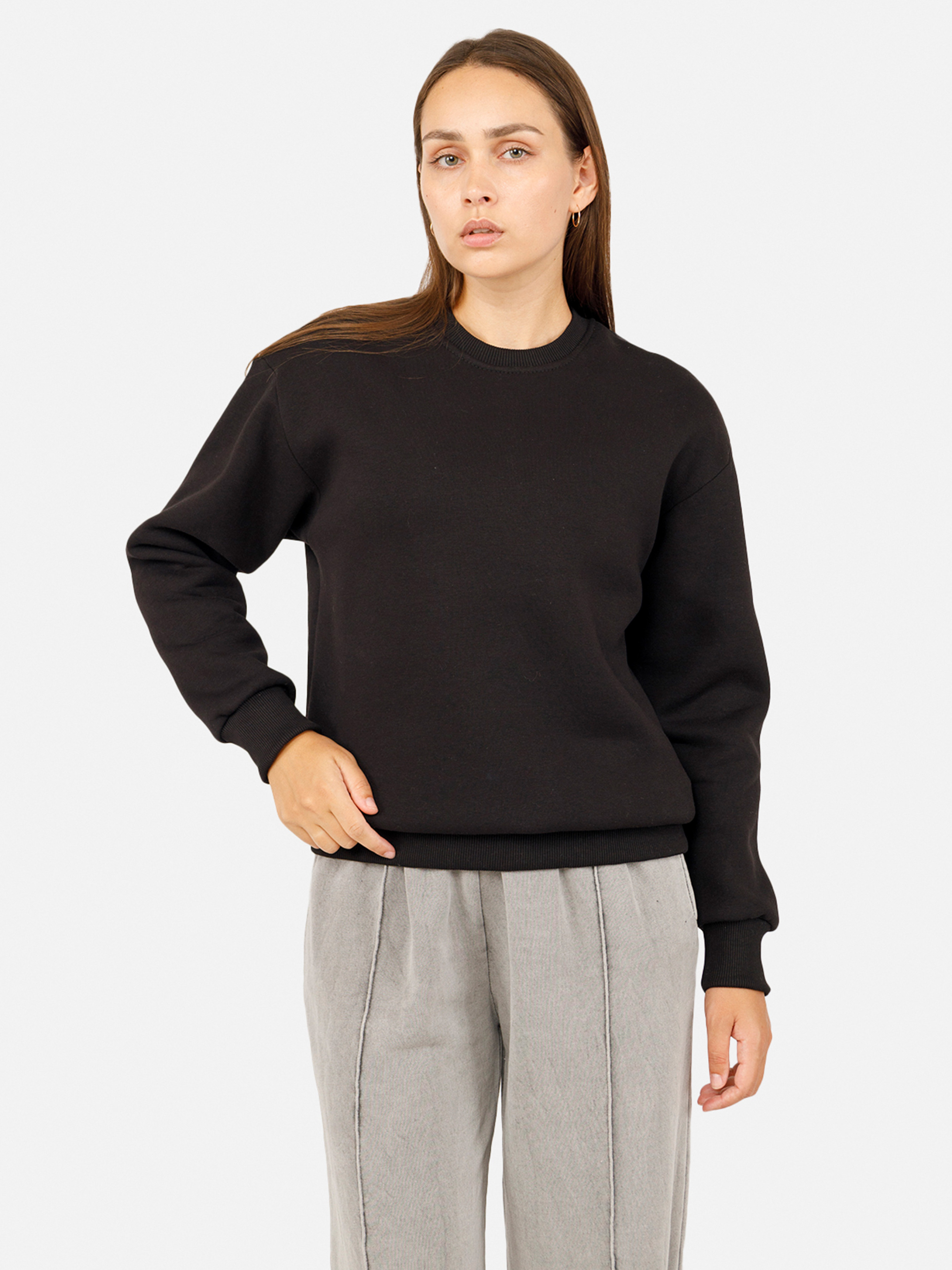 Женский свитшот - это удобная и стильная вещь вашего гардероба для повседневной носки. Изготовлен из высококачественных материалов, что позволит двигаться свободно и легко. Особенности свитшота: Цвет: черный, однотонный. Материал изготовления: футер. Состав: 70 % хлопок, 30 % полиэстер. Крой: прямой. Длина: средняя. Имеет манжеты на рукавах и резинку снизу. Сезон: зима. Параметры модели: Рост: 173 сантиметров. Размер на модели: 44. Страна производитель: Украина.