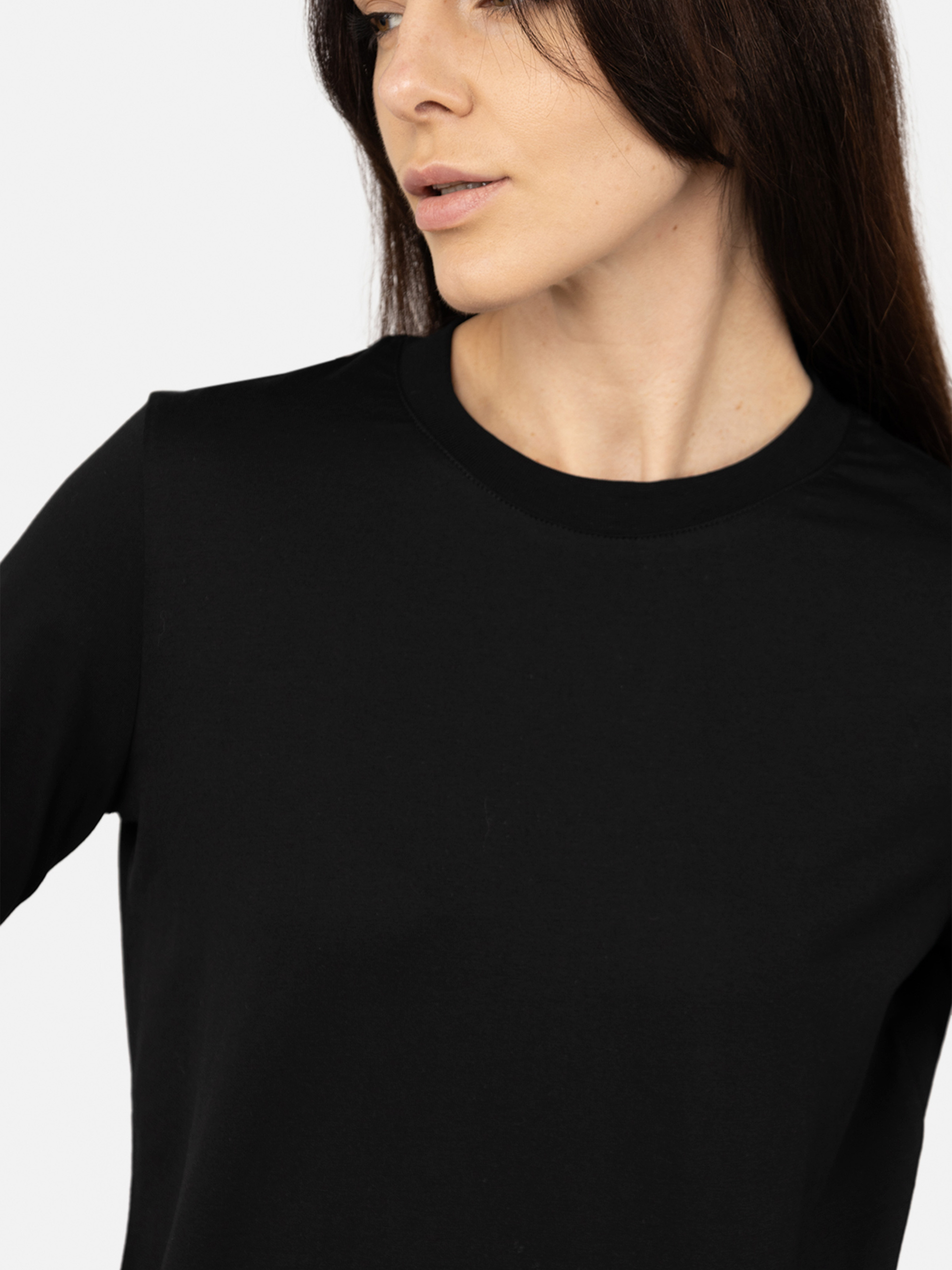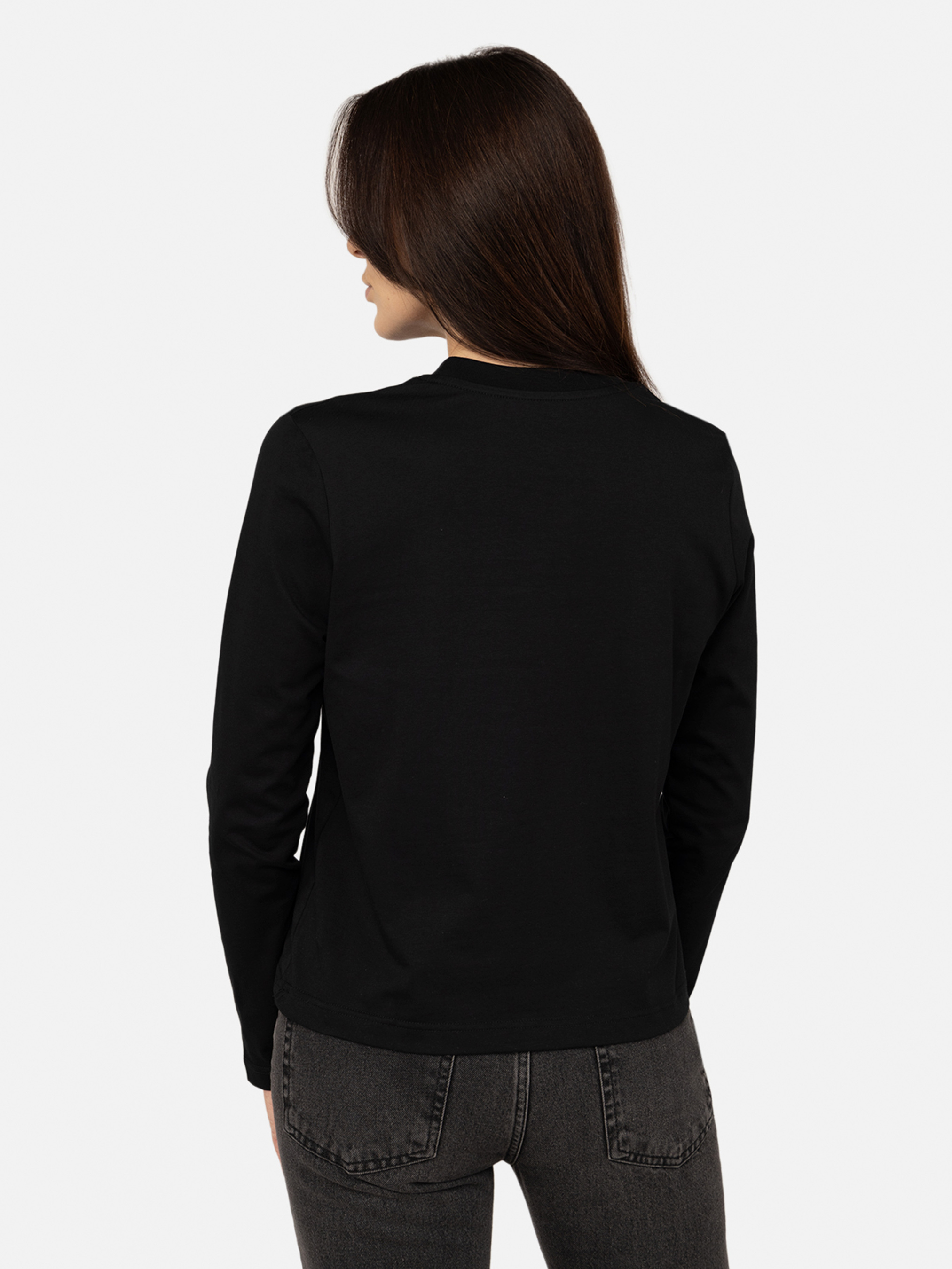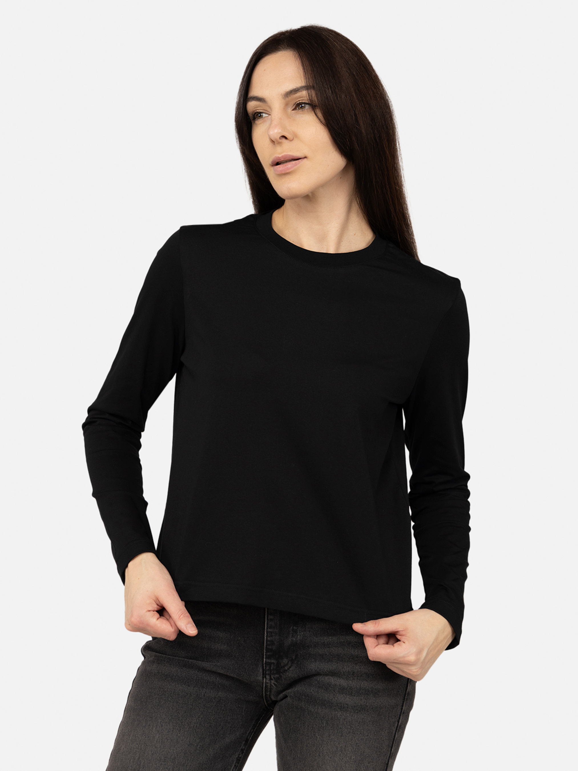 Футболка с длинным рукавом женская: универсальность и комфорт для вашего гардероба Женская футболка с длинным рукавом прямого кроя - это идеальное решение для тех, кто ценит простоту, стиль и удобство. Благодаря классическому прямому крою эта модель подходит для любого типа фигуры, обеспечивая комфортную посадку без лишнего облегания. Она создана из мягкой, приятной на ощупь ткани, которая хорошо пропускает воздух, позволяя коже дышать, а также имеет отличные износостойкие свойства. Материал футболки - это высококачественный хлопок, что придает ткани эластичности и помогает сохранять форму даже после многократных стирок. Легкая и эластичная структура делает эту футболку идеальной для повседневного использования, работы, прогулок или путешествий. Длинные рукава обеспечивают дополнительную защиту в прохладную погоду, а также добавляют модели универсальности. Она идеально подходит для межсезонья или как базовый элемент многослойного образа: ее можно носить под жакетом, кардиганом, худи или жилетом. Прямой крой обеспечивает свободу движений, что делает эту футболку удобной как для активного, так и для расслабленного стиля жизни. Минималистичный дизайн позволяет легко комбинировать футболку с различными элементами гардероба. Она прекрасно сочетается с джинсами, классическими брюками, юбками или даже шортами. Кроме стильного внешнего вида, футболка также отличается практичностью. Она не требует особого ухода - легко стирается и быстро сохнет, оставаясь мягкой и удобной даже после длительного использования. Ее универсальность делает ее отличным выбором как для повседневной носки, так и для создания более официального или делового образа. Закажите женскую футболку с длинным рукавом прямого кроя уже сегодня, чтобы дополнить свой гардероб стильной и практичной вещью, которая станет вашим любимым выбором на любой случай! Особенности футболки: Цвет: черный, однотонный. Материал изготовления: трикотаж. Состав: 100 % хлопок. Крой: прямой. Футболка имеет длинные рукава. С классическим круглым вырезом горловины. Длина: средняя. Сезон: демисезон. Параметры модели: Рост: 174 сантиметра. Размер на модели: 46. Страна производитель: Украина.