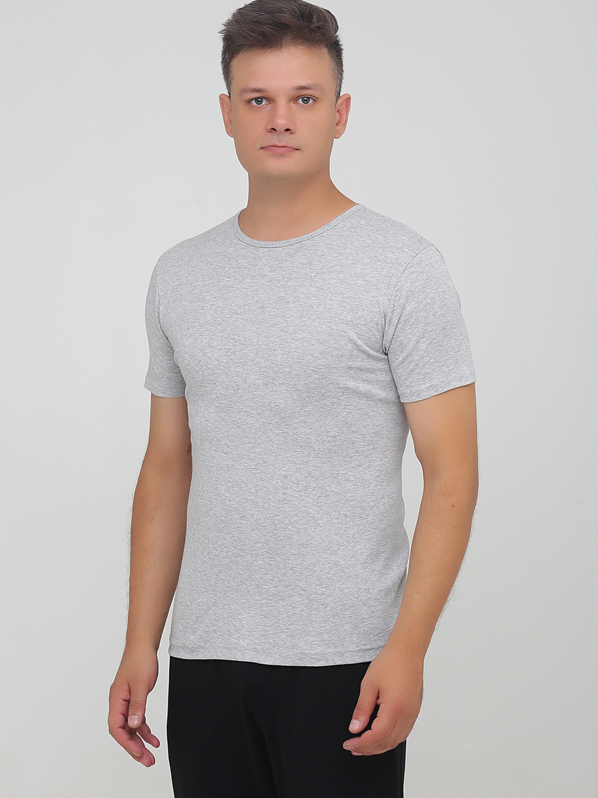 Футболки из трикотажа средней плотности представлены в четырех базовых расцветках, которые больше всего выбирают мужчины, это – черный, серый, белый и темно-синий цвет. Это – элегантные цвета, гармонично сочетающиеся с любыми вещами и цветовыми оттенками. Для пошива этой модели выбрано трикотажное полотно рибана. Фактура материала – мелкая резинка. Полотно упругое, с поперечным растяжением, поэтому изделия хорошо растягиваются и быстро принимают свой первоначальный формат. Трикотаж хорошо переносит стирки, не деформируется, не теряет формы, сохраняет яркость цвета. Благодаря двойному плетению ткань обладает прочностью. Изделия хорошо сохраняют тепло, но не позволяют телу перегреваться. Это – свойства хлопковых тканей. Футболку можно стирать в теплой воде при деликатной стирке с машинным отжимом.