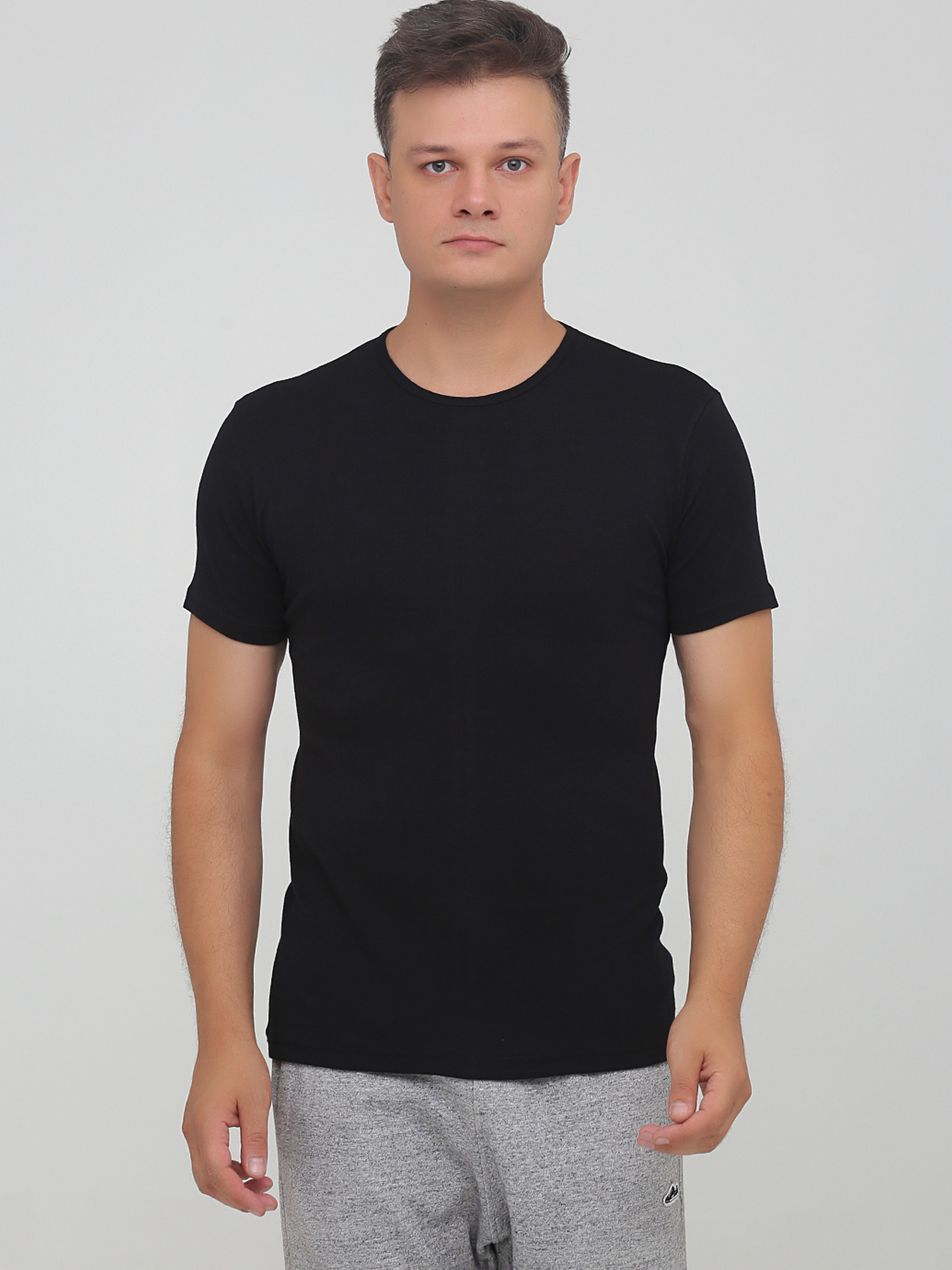 Футболки из трикотажа средней плотности представлены в четырех базовых расцветках, которые больше всего выбирают мужчины, это – черный, серый, белый и темно-синий цвет. Это – элегантные цвета, гармонично сочетающиеся с любыми вещами и цветовыми оттенками. Для пошива этой модели выбрано трикотажное полотно рибана. Фактура материала – мелкая резинка. Полотно упругое, с поперечным растяжением, поэтому изделия хорошо растягиваются и быстро принимают свой первоначальный формат. Трикотаж хорошо переносит стирки, не деформируется, не теряет формы, сохраняет яркость цвета. Благодаря двойному плетению ткань обладает прочностью. Изделия хорошо сохраняют тепло, но не позволяют телу перегреваться. Это – свойства хлопковых тканей. Футболку можно стирать в теплой воде при деликатной стирке с машинным отжимом.