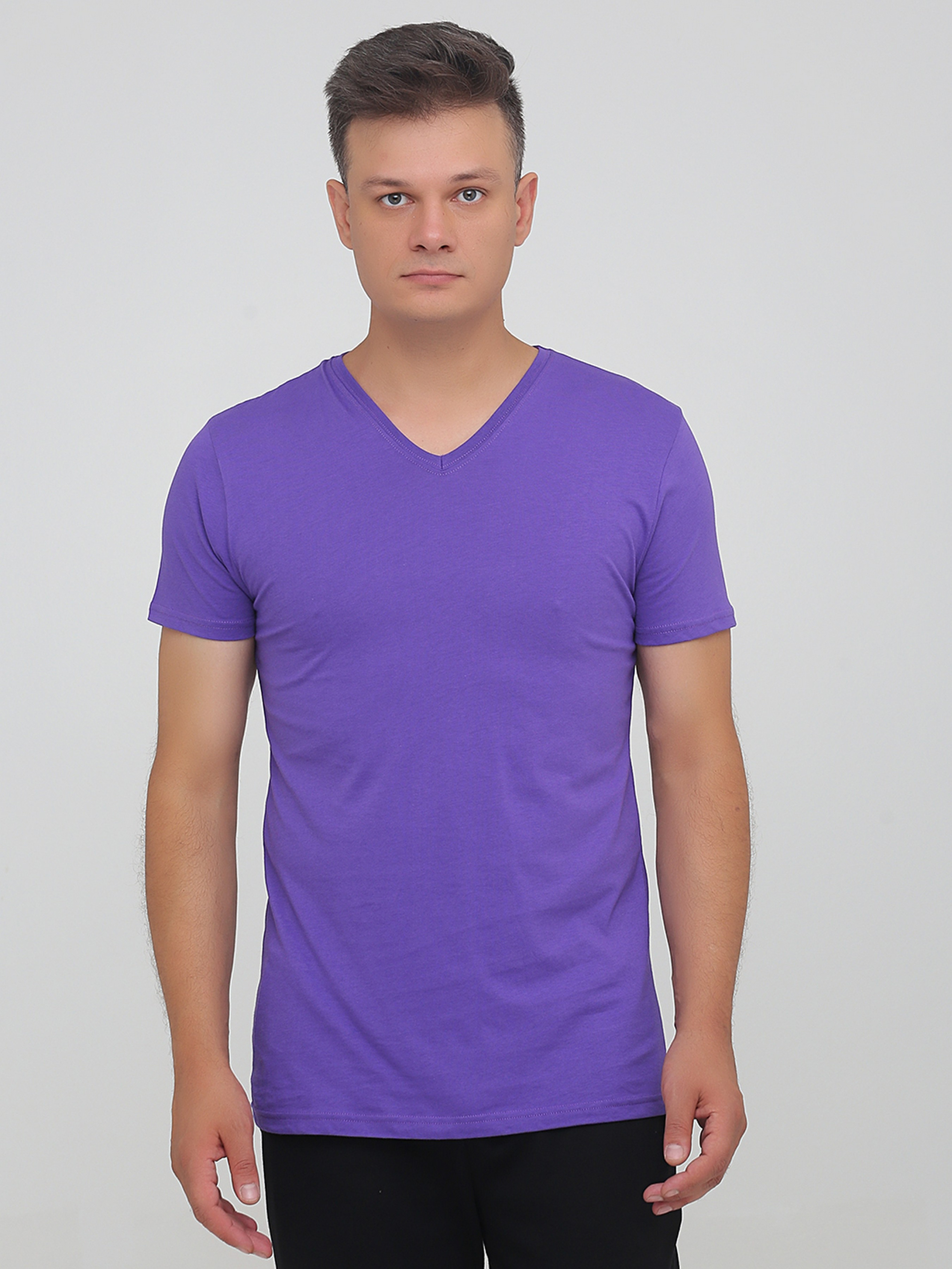 Футболка с V-образным вырезом классического кроя предлагается во всевозможных расцветках. Каждый может для себя подобрать наиболее подходящее по цвету изделие. Для поклонников базовых расцветок мы предлагаем футболки белого, черного, синего, темно-синего тона, для любителей ярких вещей – красные, оранжевые, розовые модели. Мужчины, особенно в теплое время года, предпочитают носить именно футболки. Они удобны, практичны, гармонируют практически со всеми другими вещами. Многие мужчины не любят, когда рубашки и футболки сдавливают в области шеи, поэтому модель с У-образным вырезом особенно актуальна. Данная модель слегка приталена и, если мужчина спортивного телосложения, она подчеркнет его накаченное тело в области груди и спины. Такие изделия подойдут для занятий спортом, она гармонично впишется в любой спортивный комплект одежды.