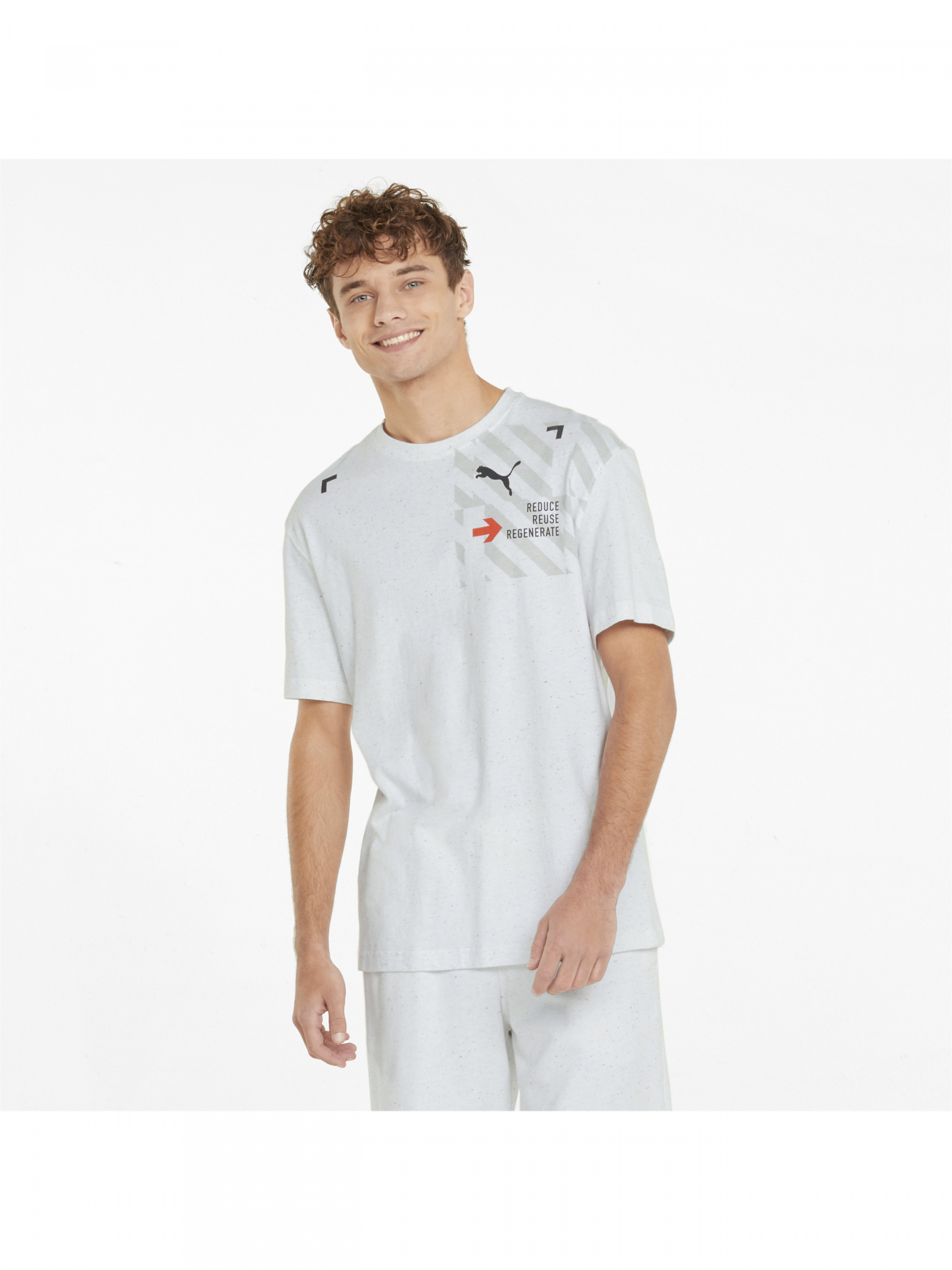 Футболка RE:Collection Relaxed Tee мягкая и удобная, как и следует из ее названия. Она идеально подойдет для моментов, когда вы хотите расслабиться. Мы обязаны переписать историю: уменьшить наше влияние на окружающую среду, бережно использовать ресурсы и восстанавливать их. Материалы, из которых изготовлена одежда коллекции RE:Collection, говорят сами за себя. Детали Коллекция: Весна-лето — 2022 Стиль: стритстайл Характеристики Состав: 100 % хлопок Содержит переработанный материал: изготовлено из переработанного волокна. Одно из решений PUMA для уменьшения воздействия на окружающую среду Свободная посадка Круглый вырез Логотип PUMA Cat logo с надписью «Reduce. Reuse. Recycle», пигментный принт Изготовлена из переработанных волокон. Страна-производитель: Китай