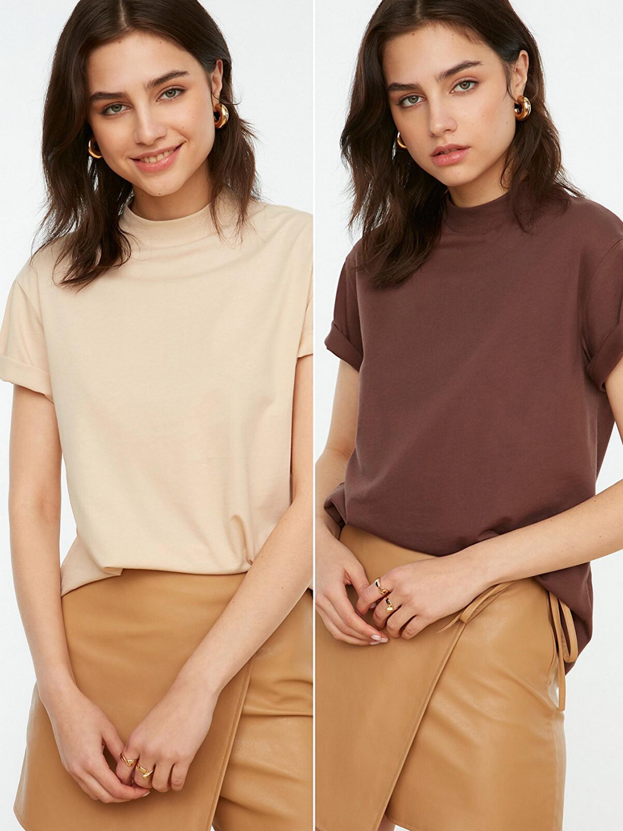 Набор футболок Trendyol модель TWOSS20TS1500/Kahverengi-Bej
