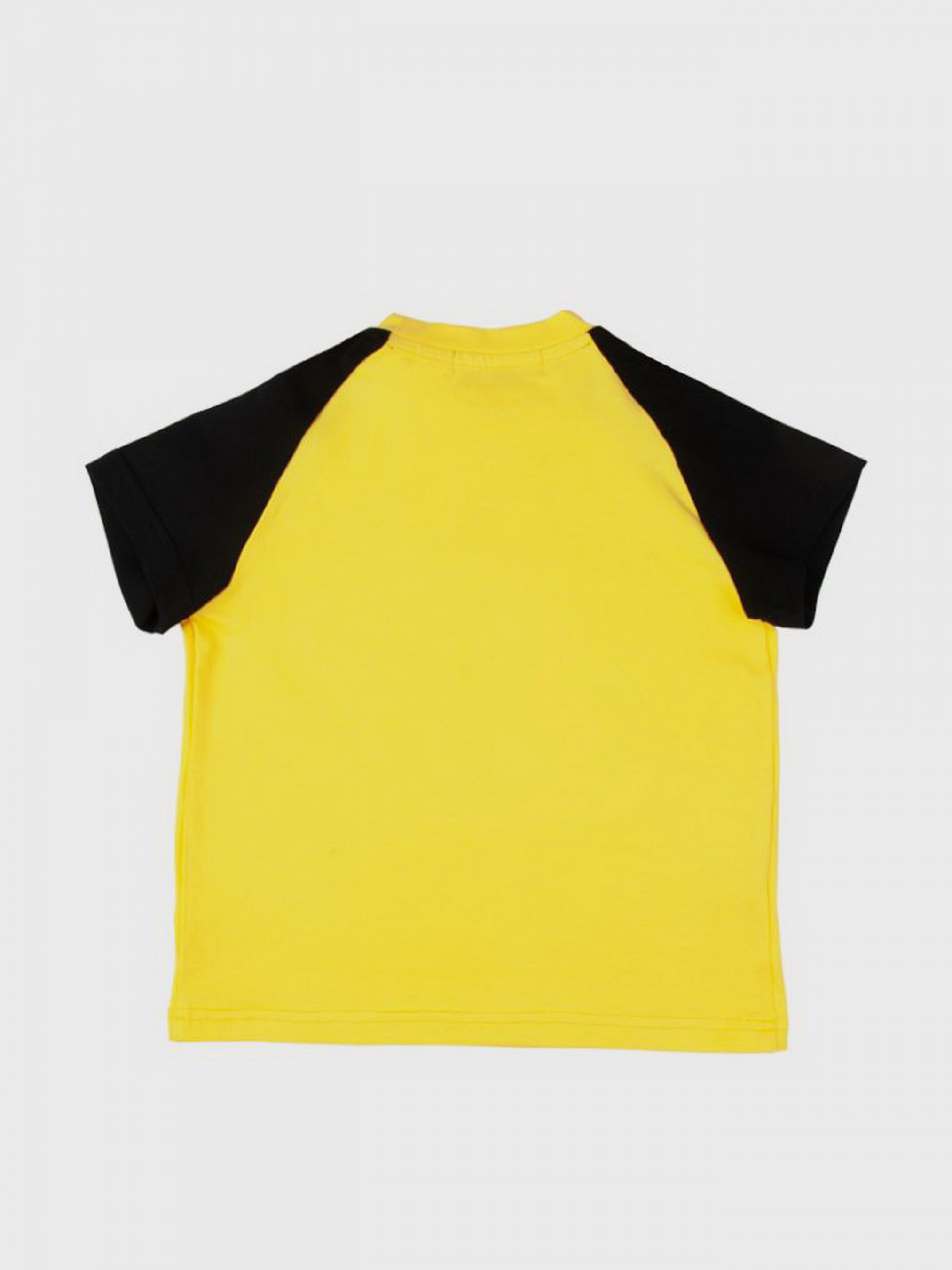 Детская футболка для мальчиков. Размерный ряд: на рост от 98 см до 134 см. Детали модели: Футболка прямого силуэта, с коротким рукавом реглан, контрастных цветов. По центру полочки расположен красочный принт. Ткань - кулир. Основной цвет - желтый. Рукава - черного цвета. Круглая горловина, обработана обтачкой. Состав: 95% хлопок, 5% эластан Рекомендации по уходу: машинная стирка при температуре 30 градусов. *Оттенок цвета на фотографии может отличаться от реального
