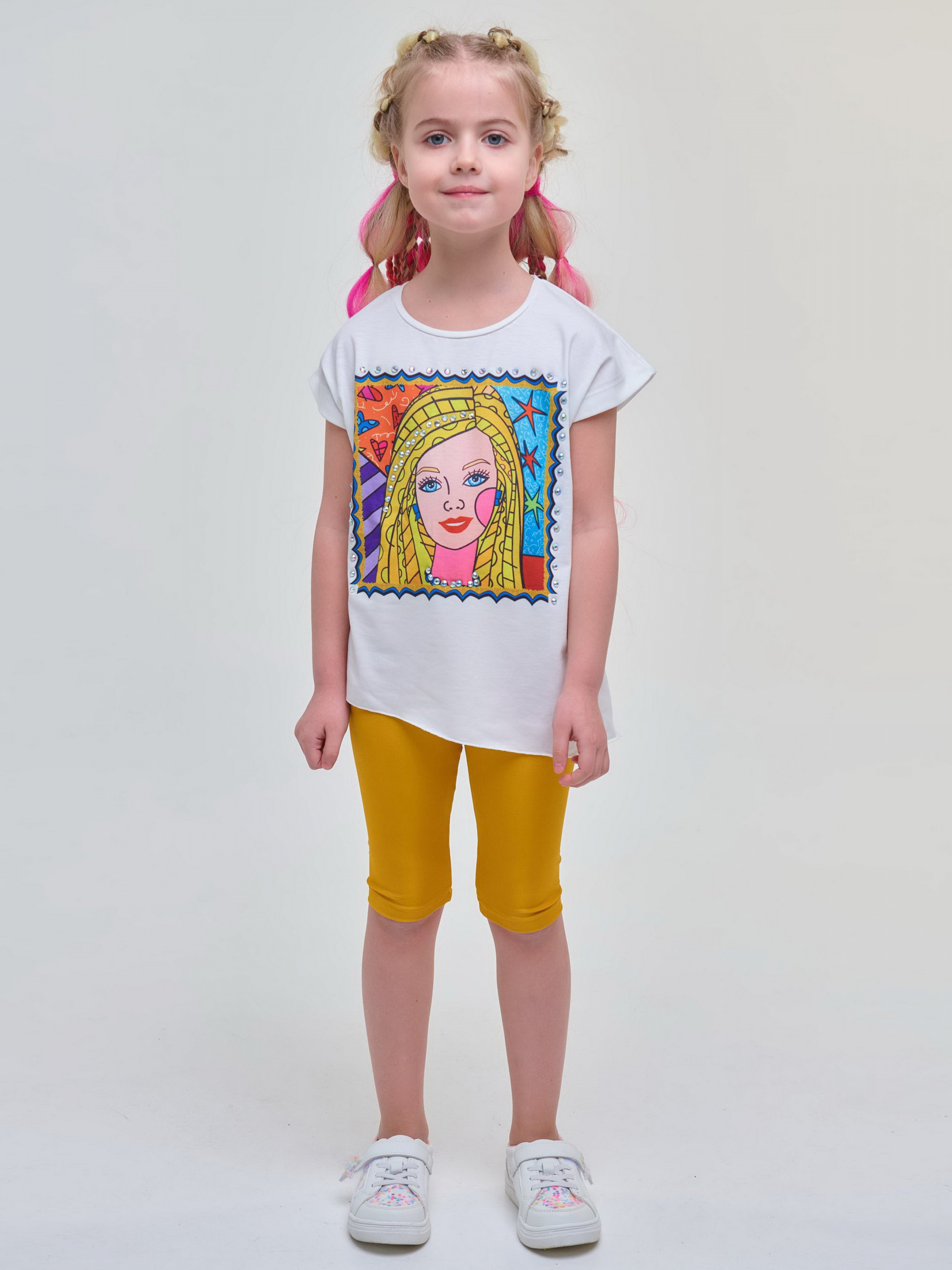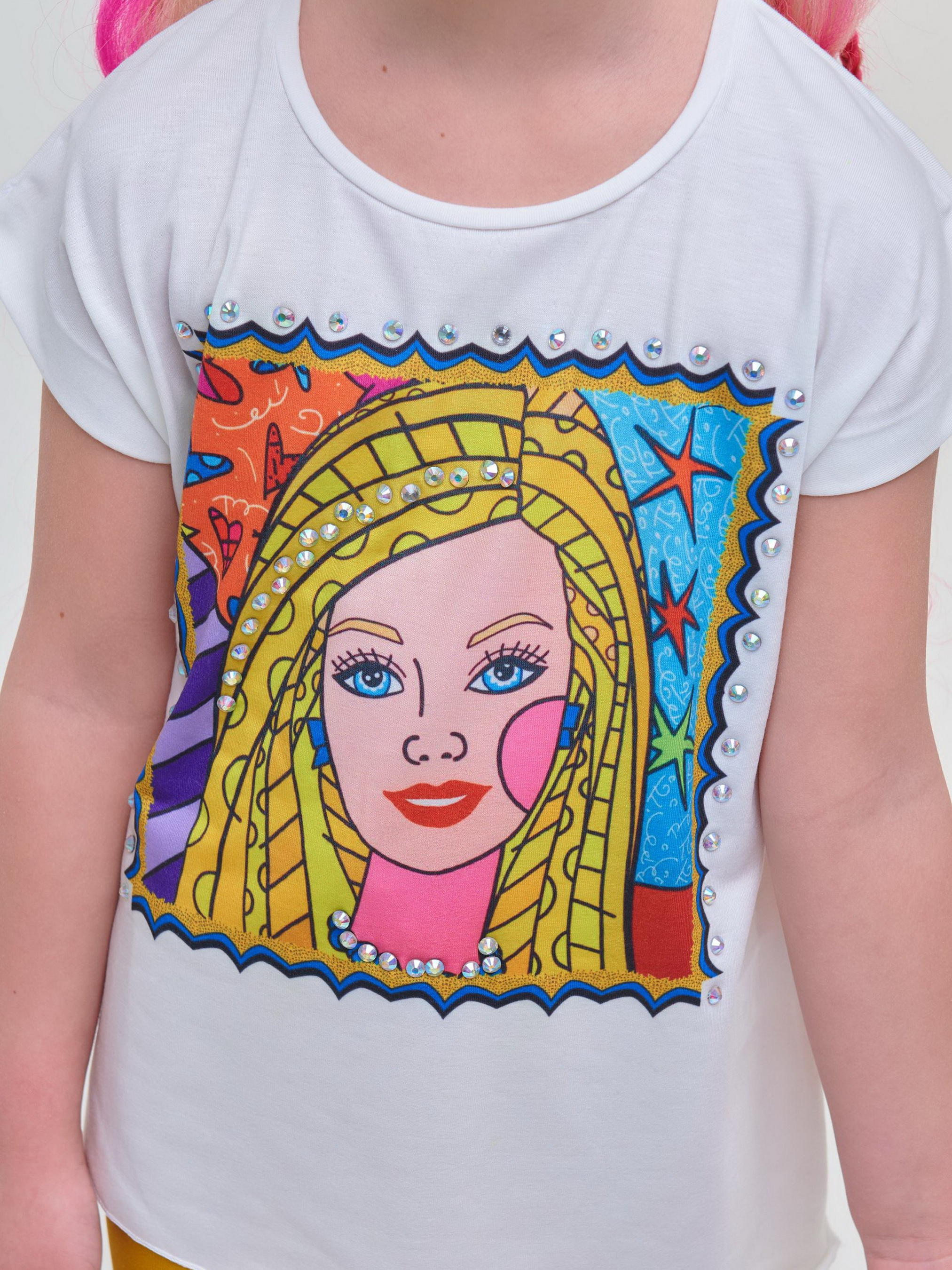 Стильная белая футболка с принтом "Барби" для юных модниц. Отлично разбавит любой гардероб своей легкостью и непринужденностью. Размерный ряд: для девочек на рост от 104 см до 164 см.