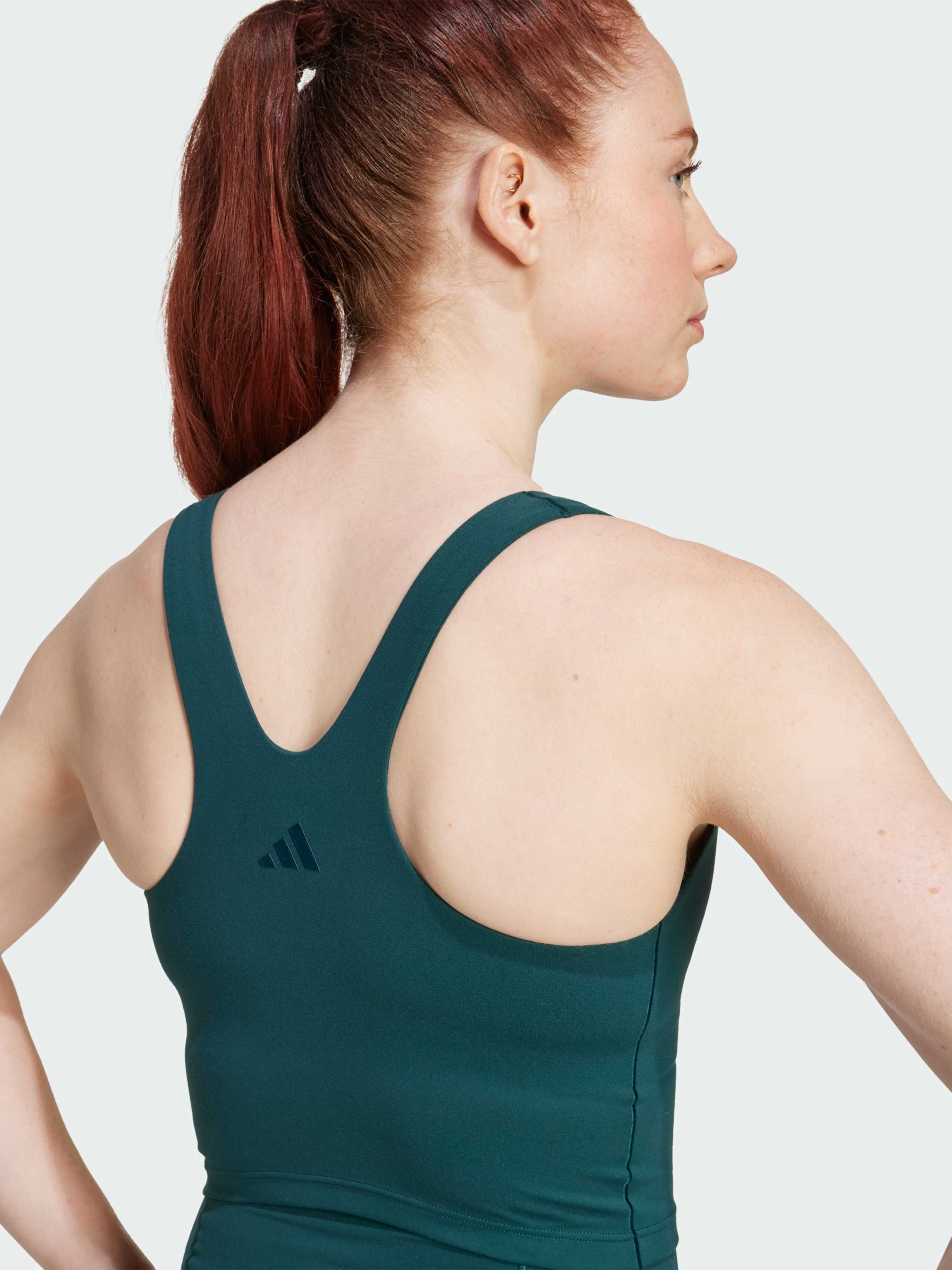 Характеристики 79% переработанный полиэстер, 21% эластан Глубокий круглый вырез Мягкая, гладкая ткань Adisoft Облегающий крой, средняя поддержка Ткань LYCRA® ADAPTIV™ Фиксированная подкладка Описание Достигай новых высот на занятиях барре или кардио с бра от adidas. Средняя поддержка дарит полную свободу движений, обеспечивая комфорт и уверенность на протяжении всей тренировки. Легчайшая ткань AdiSOFT нежно обвивает тело, создавая ощущение невесомости. Элегантный силуэт сидит идеально, так что можешь носить его без футболки. Вшитые вкладыши придают естественную форму и обеспечивают нужную защиту - идеальный выбор для твоих тренировок. Идет размер в размер. Мы рекомендуем заказать модель твоего обычного размера.