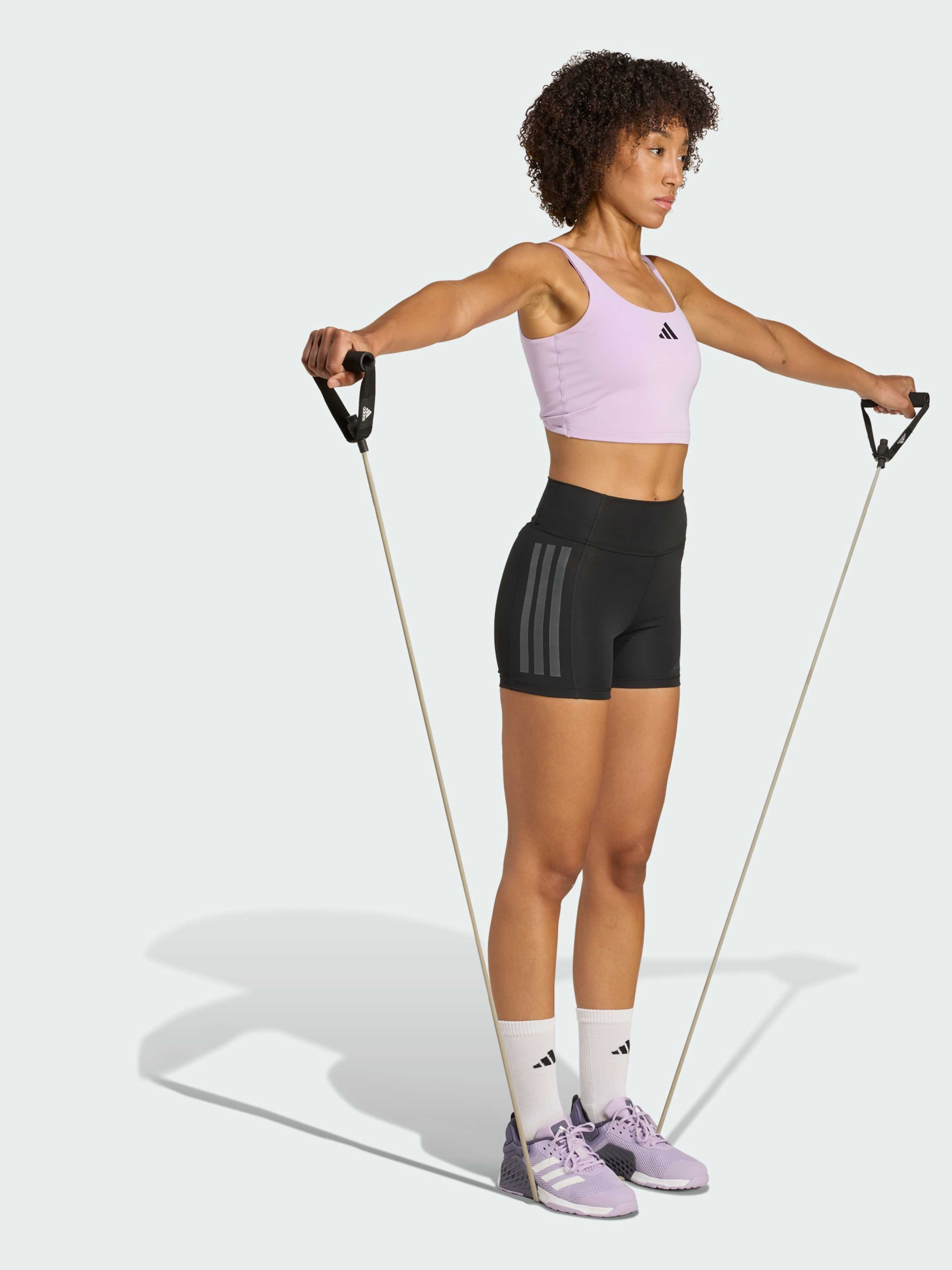 Характеристики 87% переработанный полиэстер, 13% эластан CLIMACOOL Круглый вырез горловины Облегающий крой Описание Почувствуй комфорт и поддержку с этим спортивным бра от adidas. Изготовленное из ткани с четырехсторонней эластичностью, оно идеально подходит для йоги, тренировки с весами и других занятий с низкой нагрузкой. Технология CLIMACOOL эффективно отводит влагу, поддерживая свежесть и сухость, чтобы ты могла сосредоточиться на результате. CLIMACOOL помогает справиться с потоотделением благодаря материалам, которые быстро впитывают и отводят пот. Быстросохнущие волокна обеспечивают ощущение свежести. Идет размер в размер. Мы рекомендуем заказать модель твоего обычного размера.