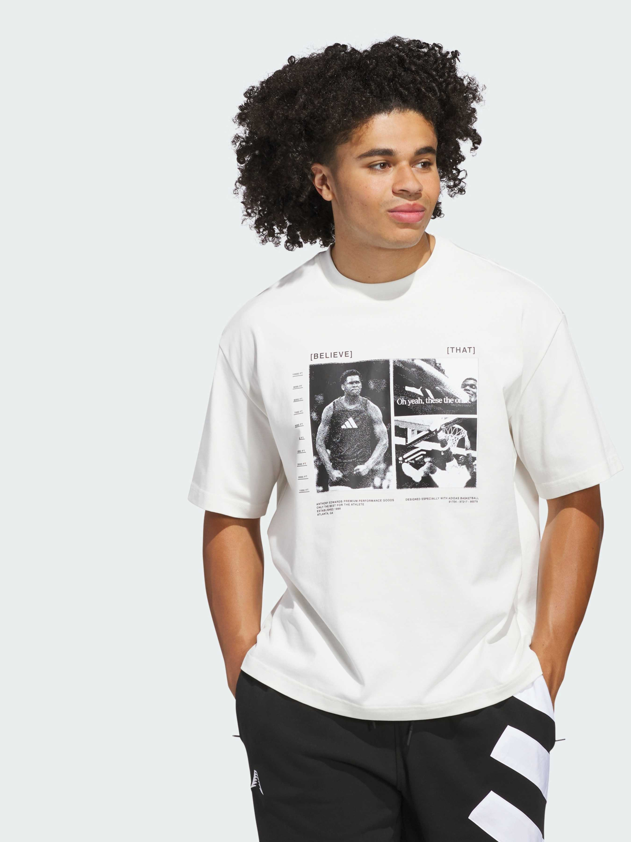 Характеристики 70% хлопок, 30% переработанный полиэстер Круглый вырез горловины Свободный крой Описание Вырази свою поддержку любимому игроку с футболкой Anthony Edwards от adidas. Яркий графический принт отражает энергичную игру и харизму одного из самых ярких талантов на поле. Мягкая и дышащая ткань свободного кроя обеспечивает комфорт и свободу движений, как на тренировке, так и в повседневной жизни. Идет размер в размер. Мы рекомендуем заказать модель твоего обычного размера.