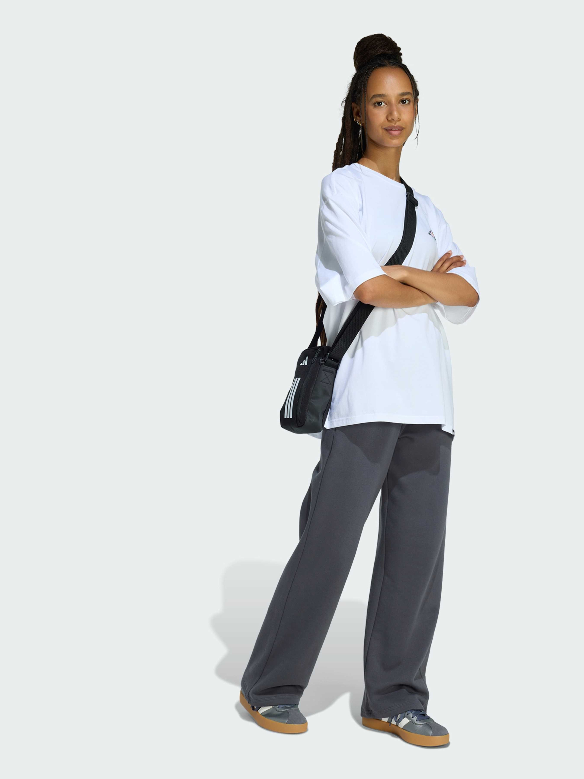 Характеристики Крой оверсайз Прорезиненный принт Тонкий трикотаж: 100% хлопок Пришитая тканевая этикетка Описание Футболка Soft Side Oversized Graphic - это сочетание безупречного комфорта и современного стиля. Свободный крой обеспечивает легкость и непринужденность, а мягкий хлопковый джерси гарантирует комфорт на весь день. Многоцветный резиновый принт добавляет яркости и индивидуальности, а фирменная нашивка adidas подчеркивает подлинность бренда. Универсальная и стильная, эта футболка идеально впишется в повседневный образ, создавая эффектную комбинацию уличной эстетики и классического комфорта.