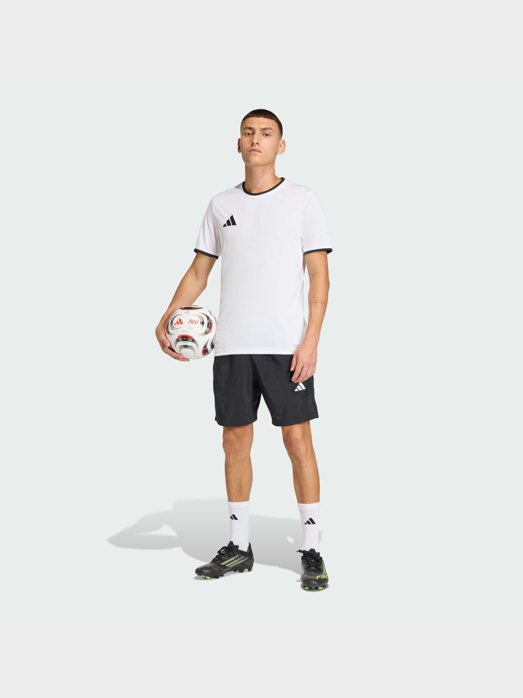 Характеристики 100% переработанный полиэстер Круглый вырез горловины Облегающий крой Технология CLIMACOOL Логотип Badge of Sport Описание Простота сочетается с неподвластным времени стилем в джерси Entrada26. Созданная для тех, кто живет и дышит футболом, эта модель — надежный выбор для тренировок и матчей, обеспечивающий комфорт на поле.ОХЛАЖДЕНИЕ. СУХОСТЬ. ГОТОВНОСТЬ. Технология Climacool отводит и рассеивает пот, обеспечивая прохладу, сухость и отсутствие отвлекающих факторов.Изготовлена из трикотажной ткани интерлок, которая приятна на ощупь, и имеет облегающий крой, который облегает тело, обеспечивая неограниченную свободу движений и ловкость. Круглый вырез придает ей классический вид, а вышитый логотип Badge of Sport воплощает дух adidas.Сконцентрируся на своей технике с этим джерси от adidas, который сочетает в себе стиль и функциональность, и сделай его основным элементом своей коллекции спортивной одежды.