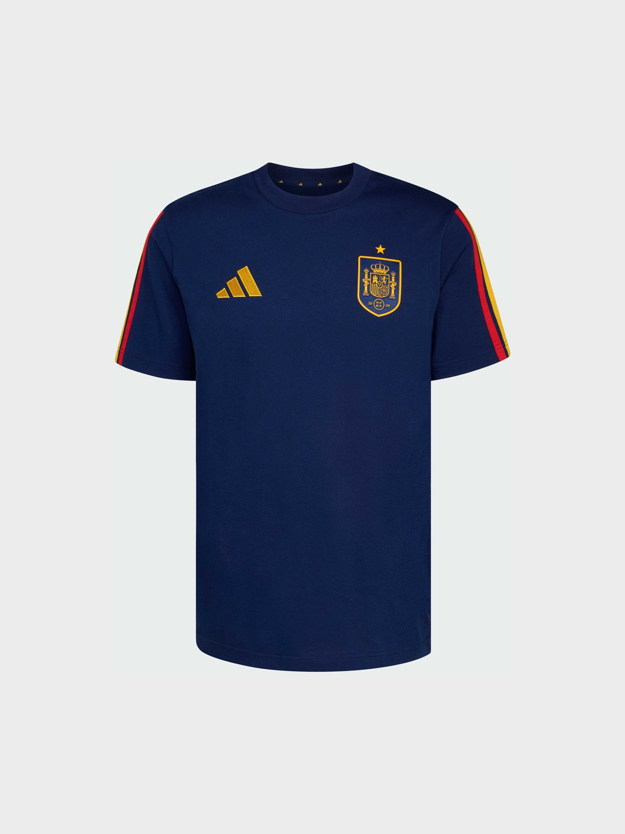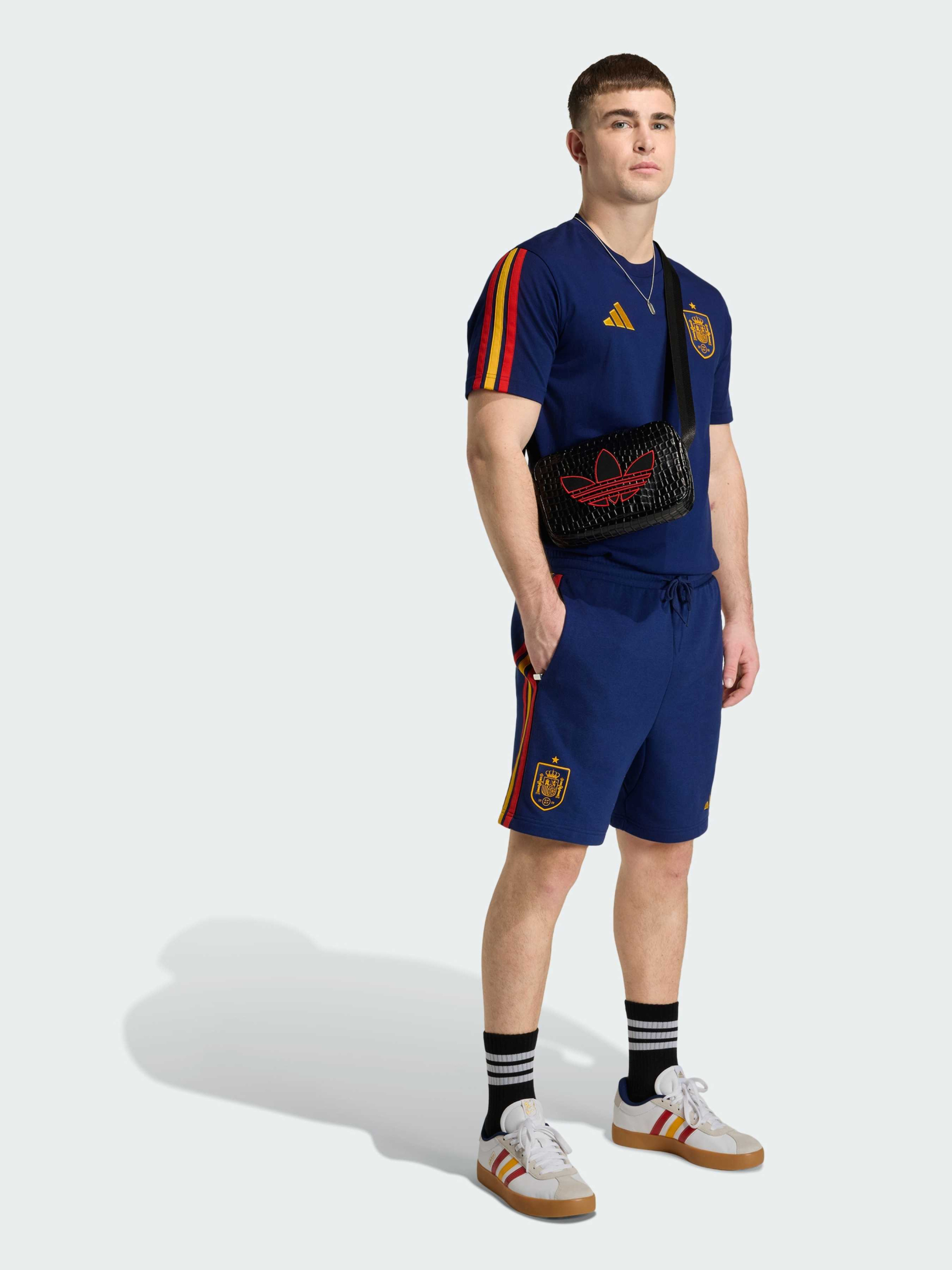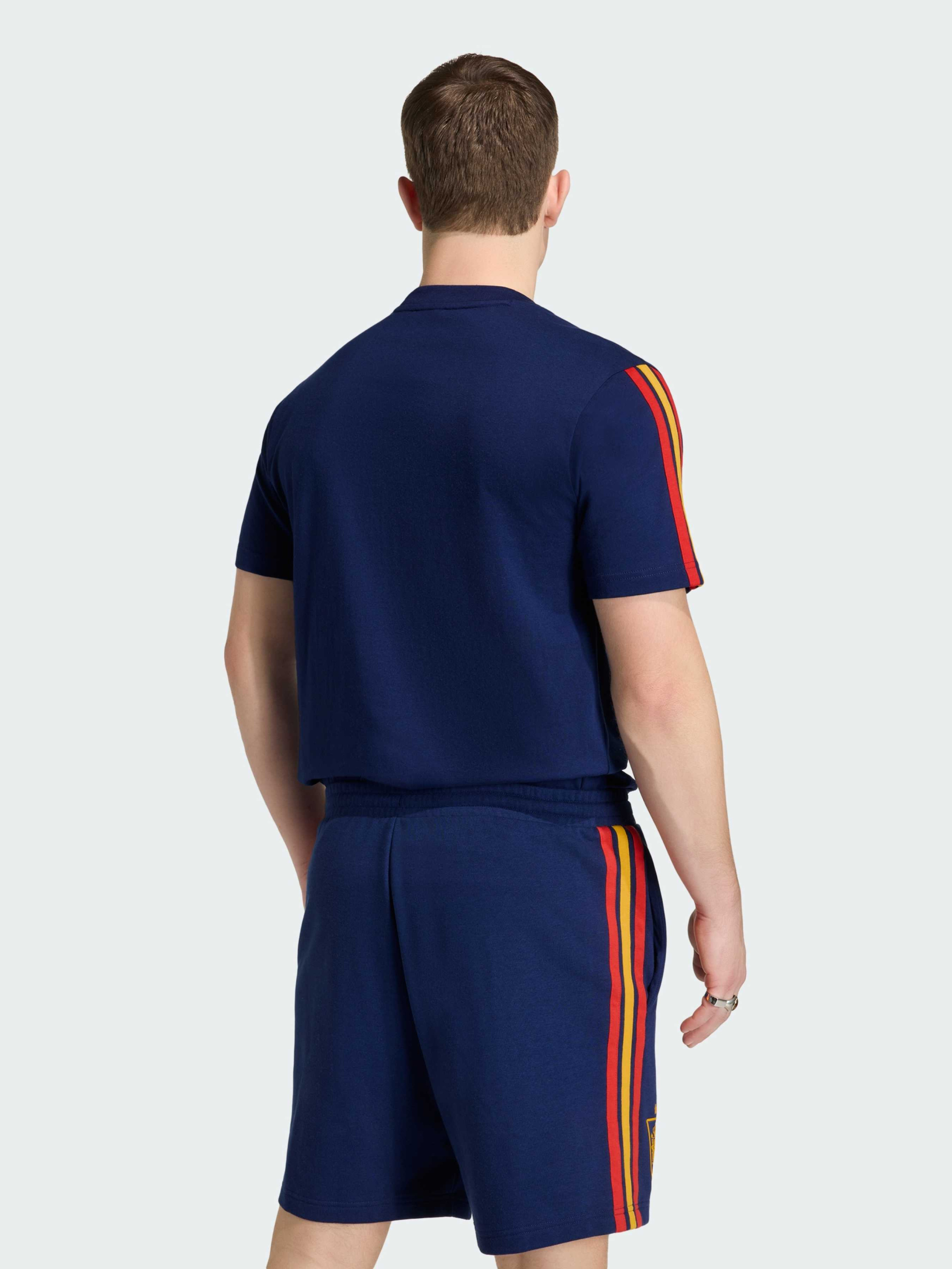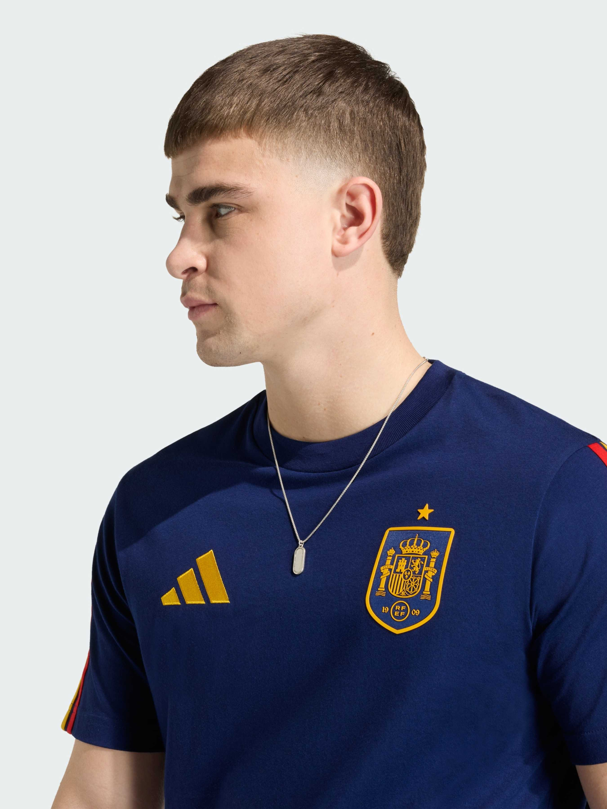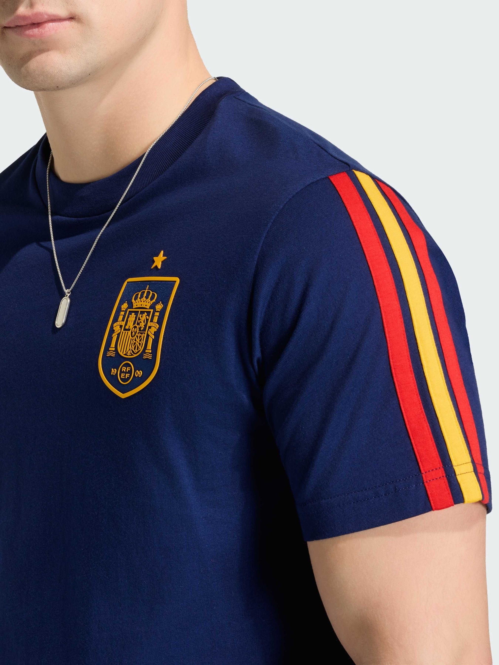 Характеристики Круглый вырез горловины Стандартный крой Тонкий трикотаж: 100% хлопок Описание Футболка Spain DNA - это стильный уличный образ, который переносит уникальную энергию футбольной культуры на улицу, создавая вещь, которая будет уместна как на стадионе, так и за его пределами. Благодаря современному дизайну и лаконичному, универсальному стилю, эта футболка создана для повседневной носки, а благодаря хлопковой ткани она обеспечивает комфорт в течение всего дня, соответствующий ее непринужденному стилю. Фирменный брендинг adidas добавляет нотку аутентичности и современной энергии, позволяя тебе выразить себя и носить цвета своей команды с непринужденной элегантностью.