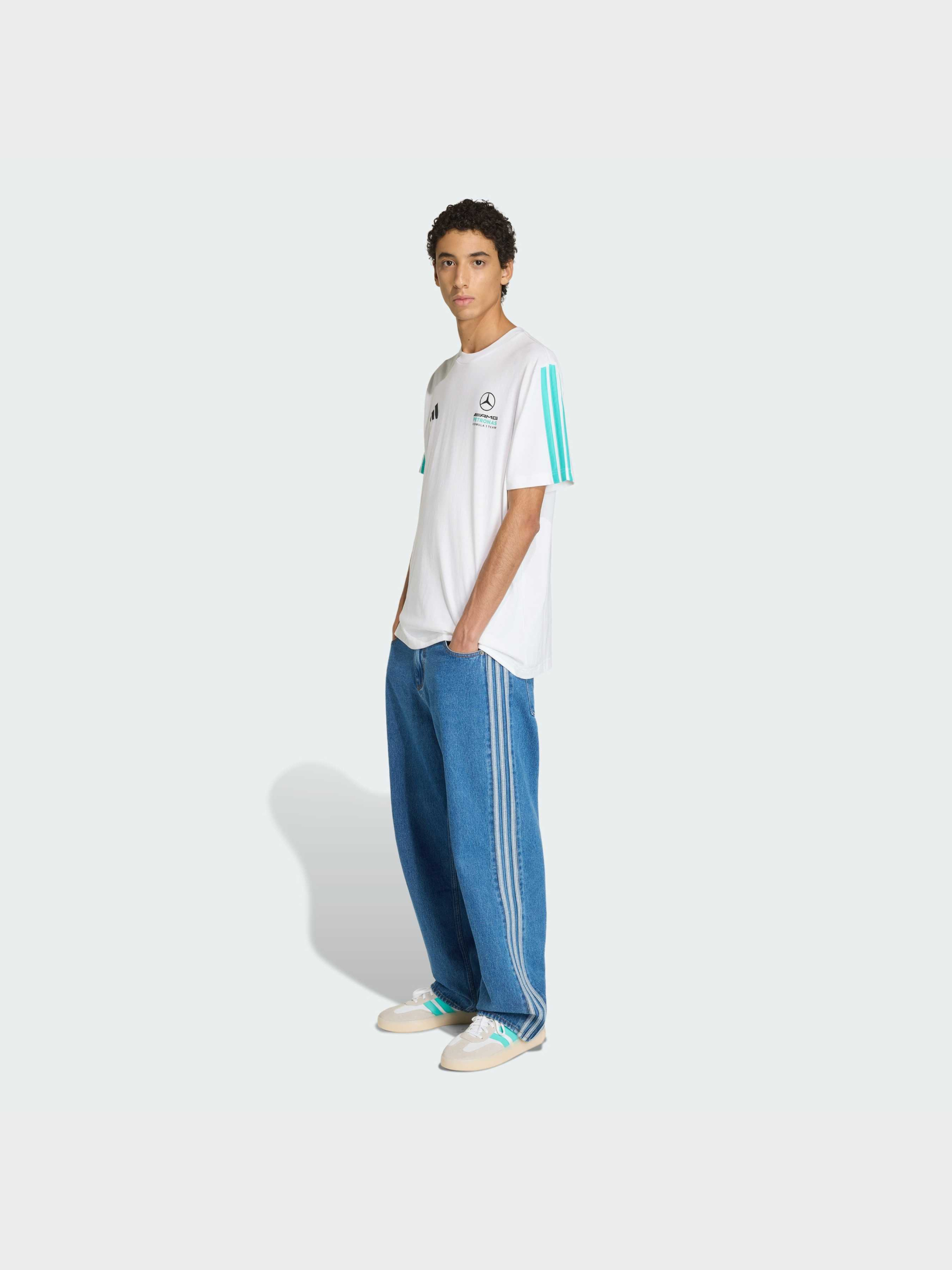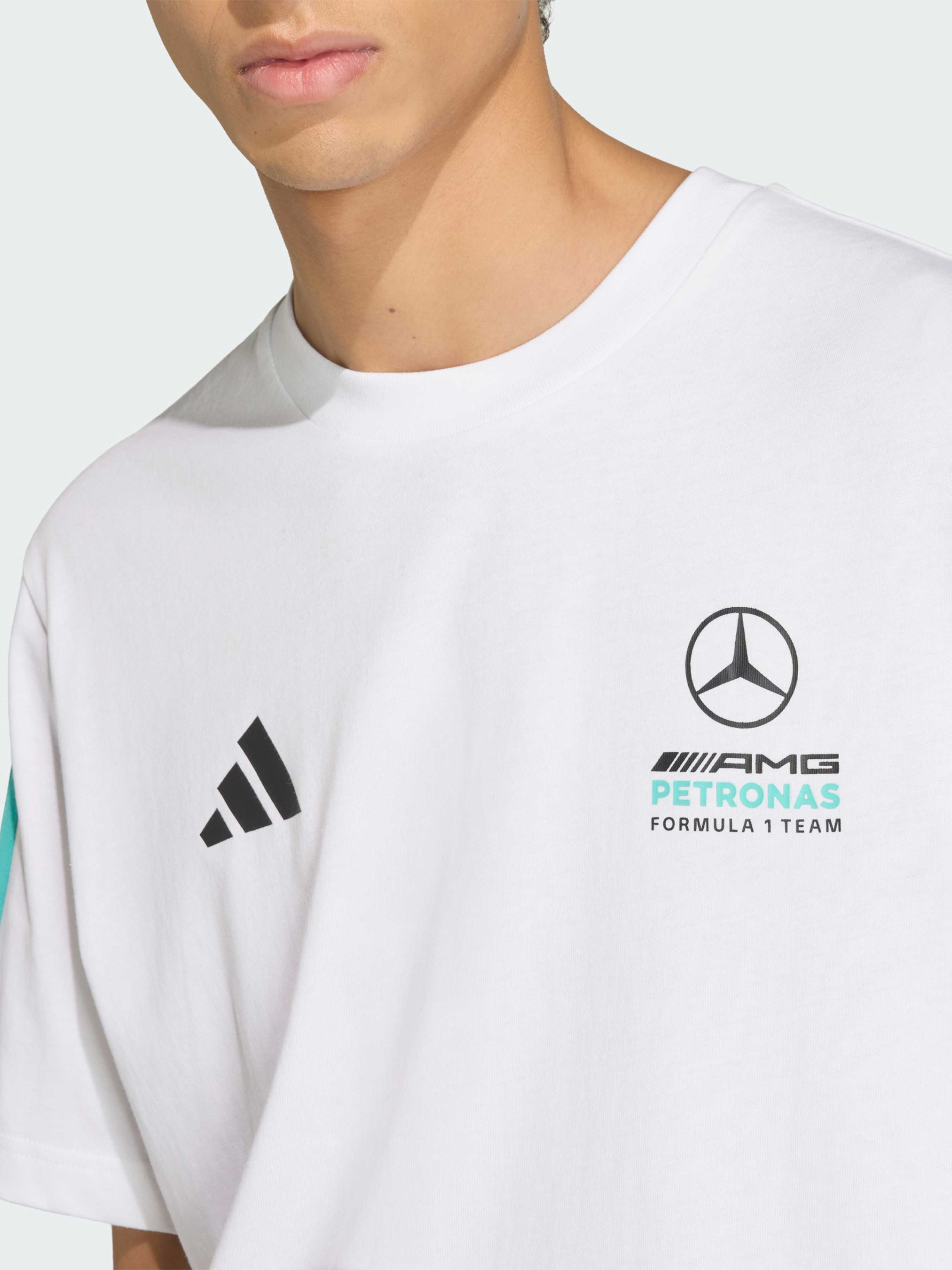 Характеристики 100% хлопок Круглый вырез горловины Стандартный крой Тонкий трикотаж Яркий брендинг с тремя полосками Дизайн со спущенным плечом Описание Погрузись в атмосферу автоспорта с футболкой MERCEDES-AMG PETRONAS FORMULA 1 TEAM DNA. Это больше, чем просто вещь - это отражение скорости, точности и духа гонок. Изготовленная из мягкого хлопкового джерси, она обеспечивает комфорт как на трибунах, так и в повседневных делах. Дизайн со спущенными плечами создает расслабленный и современный силуэт. Фирменная символика команды подчеркивает твою приверженность миру Formula 1, а три полоски и вышитый логотип 3-Bar добавляют узнаваемый акцент adidas. Созданная для поклонников гонок и ценителей стиля, эта футболка переносит энергию Formula 1 в повседневный образ - сочетая спортивный дух и фирменную эстетику adidas.