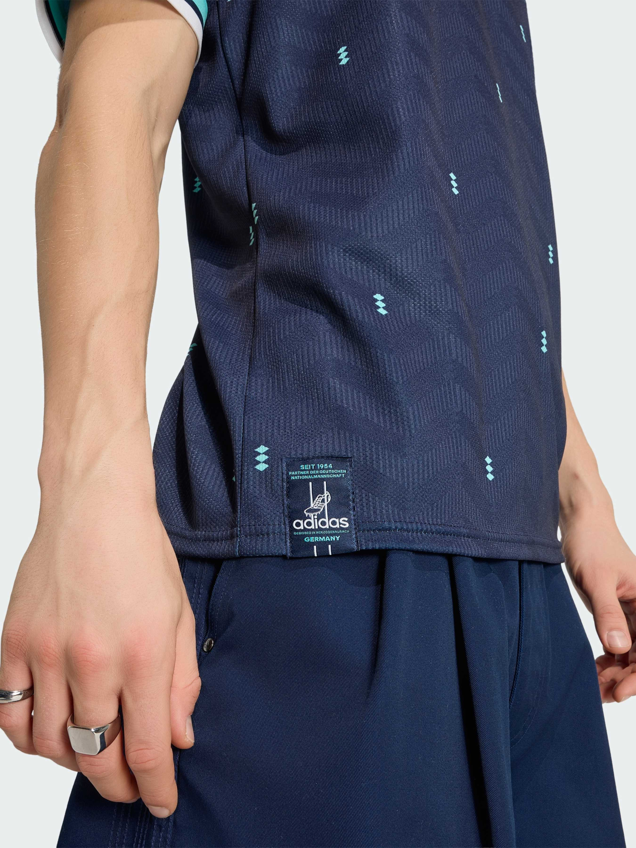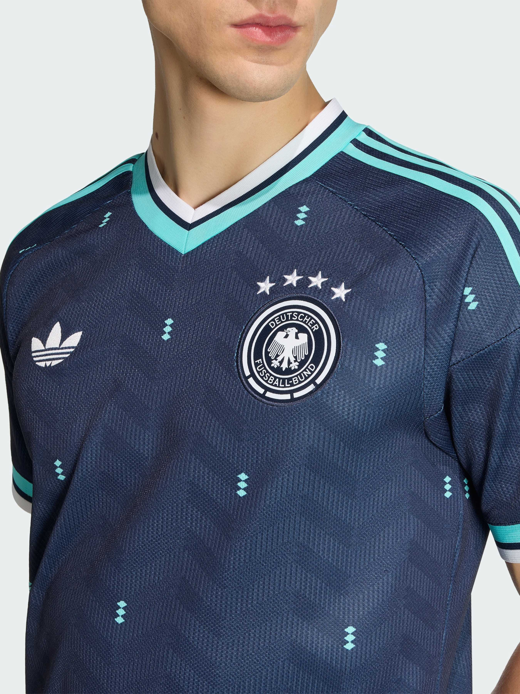 Характеристики 100% переработанный полиэстер V-образный вырез Облегающий крой Плотный трикотаж Технология CLIMACOOL Описание Представляем выездное джерси Germany 26 - сочетание легендарного футбольного наследия и современных технологий. Джерси создано для спортсменов и фанатов, обеспечивая комфорт и стиль как на поле, так и за его пределами. Технология Climacool отводит влагу и сохраняет свежесть для сухого и сосредоточенного выступления, а быстросохнущая ткань позволяет полностью сосредоточиться на технике. Облегающий крой и рифленый низ создают стильный силуэт и свободу движений, а эмблема федерации Германии и фирменная нашивка с флагом подчеркивают твою поддержку команды. Каждая деталь продумана для тех, кто ценит качество и стиль, а знаковый брендинг adidas завершает образ. Это джерси - идеальный выбор для побед и ярких футбольных моментов.