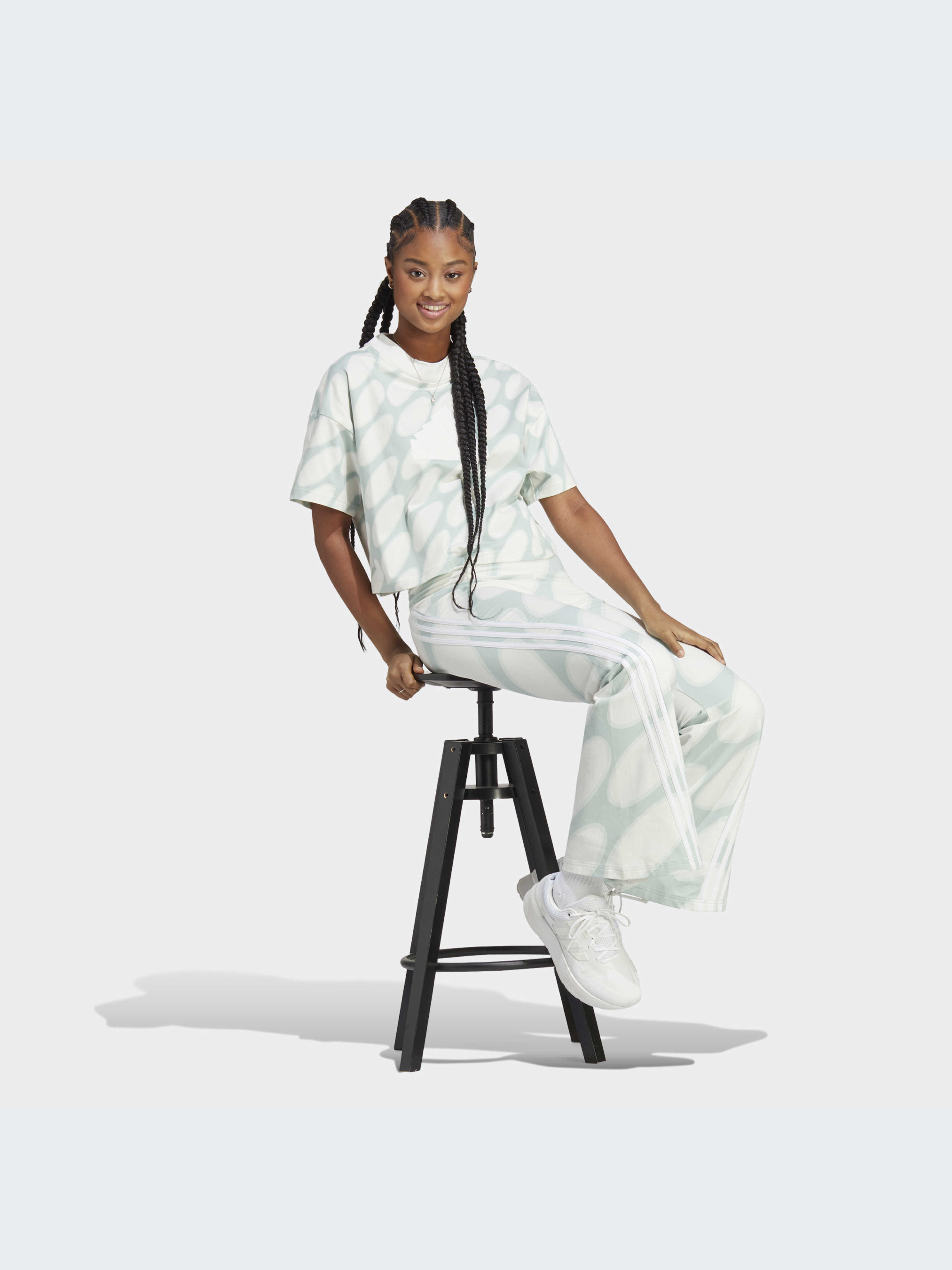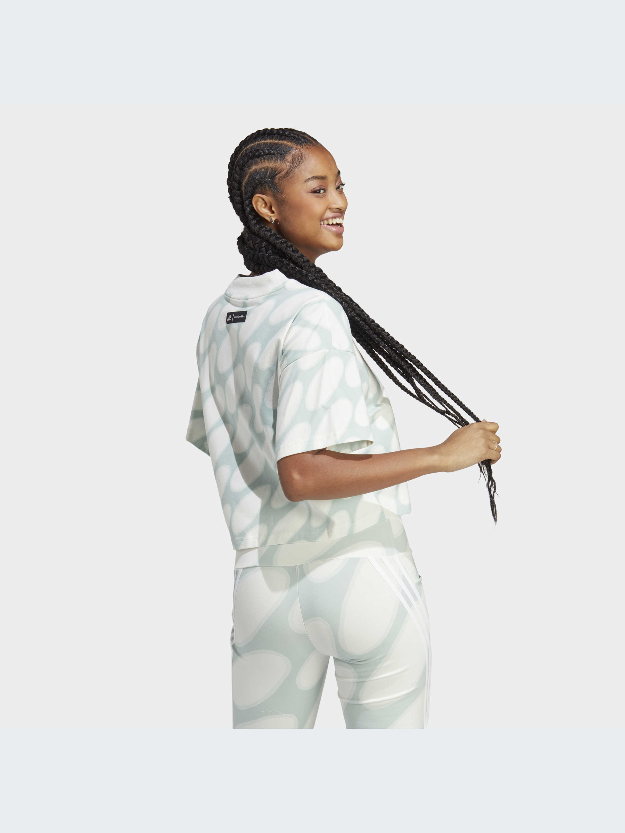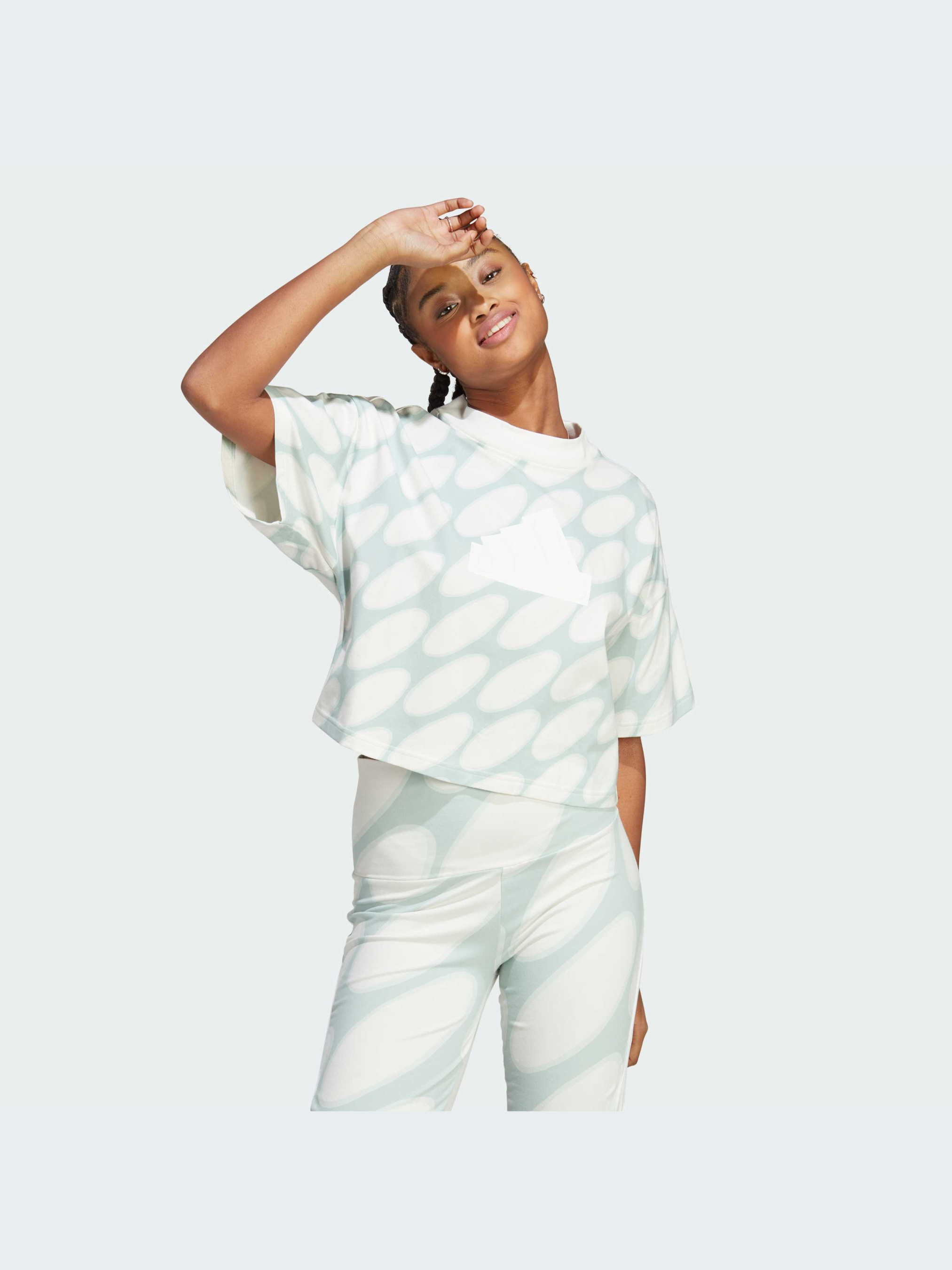 Характеристики Рифленый круглый вырез горловины Свободный крой Тонкий трикотаж: 93% хлопок, 7% эластан Укороченная длина Опис Принт в стиле 60-х годов, переосмысленный для современной женщины. Эта футболка adidas была создана в сотрудничестве с дизайнерским домом Marimekko, известным своими оригинальными мотивами. Изготовленная из эластичного хлопка, футболка имеет спортивный и повседневный, дерзкий и непринужденный стиль. Идет размер в размер. Мы рекомендуем заказать модель твоего обычного размера.
