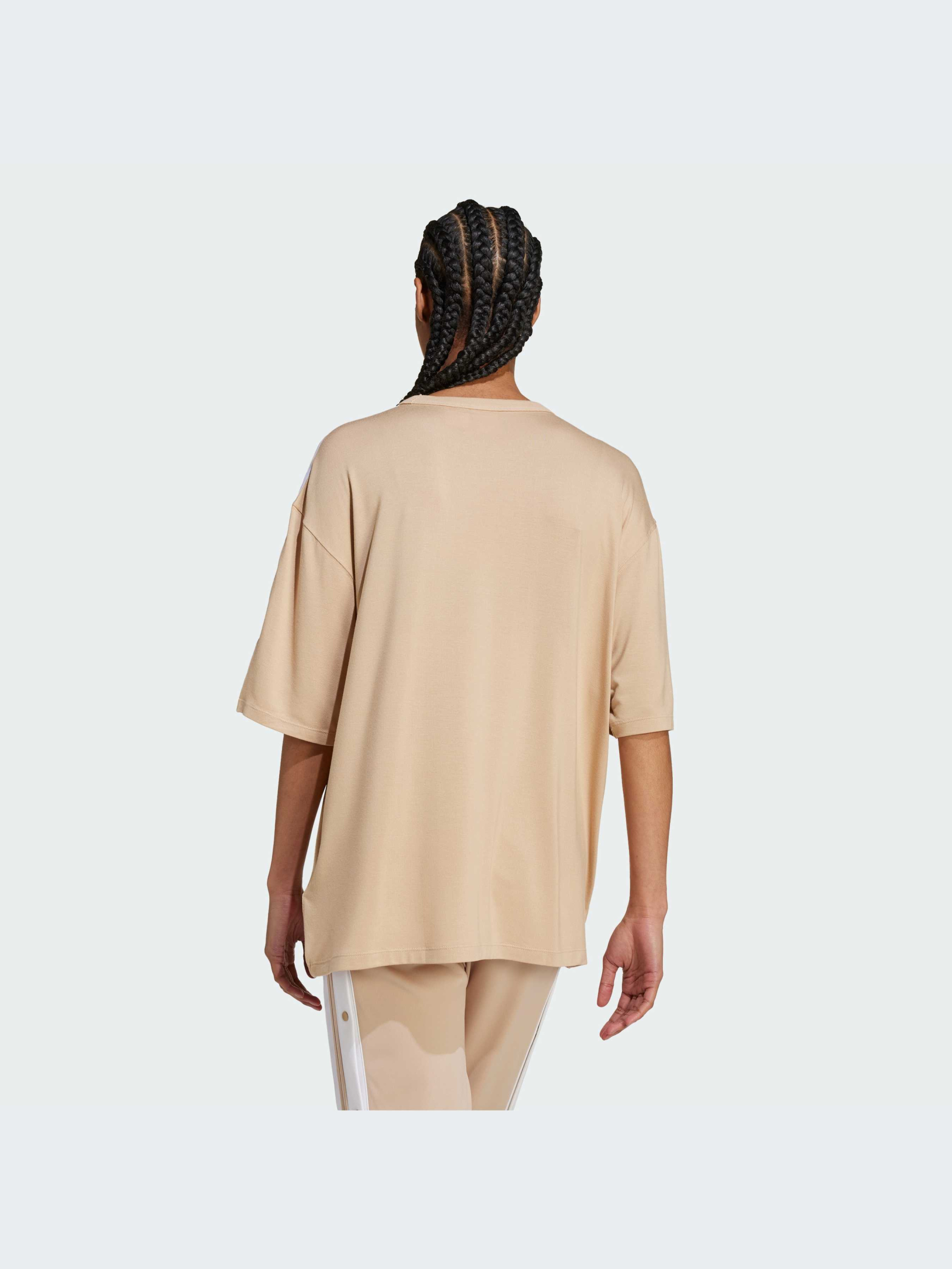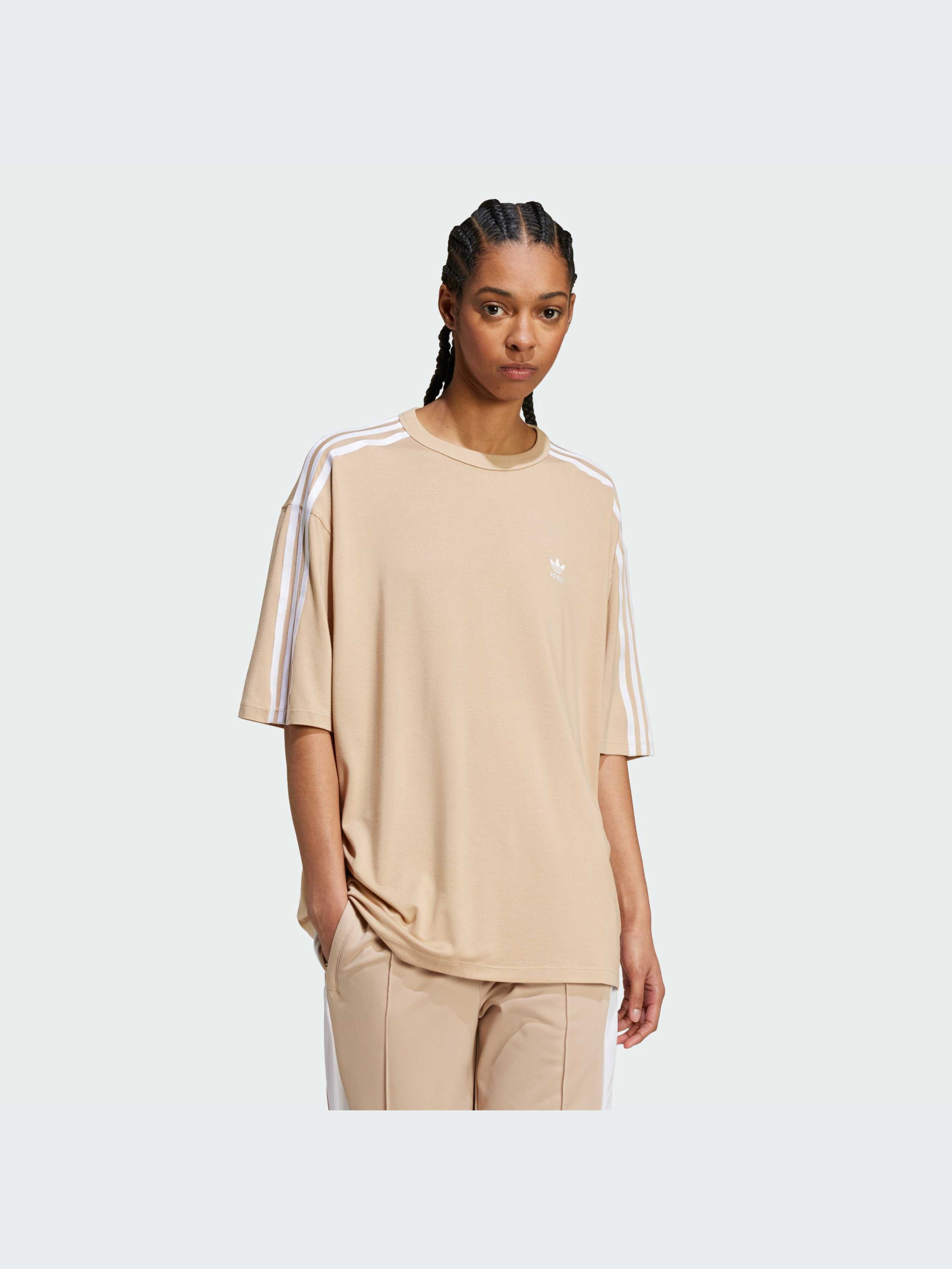 Характеристики Джерси: 69% модал, 27% переработанный полиэстер, 4% эластан Рифленый круглый вырез горловины Свободный крой Опис Футболка 3-Stripes Oversized - это аутентичный стиль adidas в свободном крое. Выполненная из модала с легким эффектом стрейча, эта спортивная модель открывает новые возможности для комфорта. С опущенными плечами, свободными рукавами и удлиненным подолом она подойдет для всего, что ты задумала. Сочетай ее с джоггерами или джинсами для идеального повседневного образа.