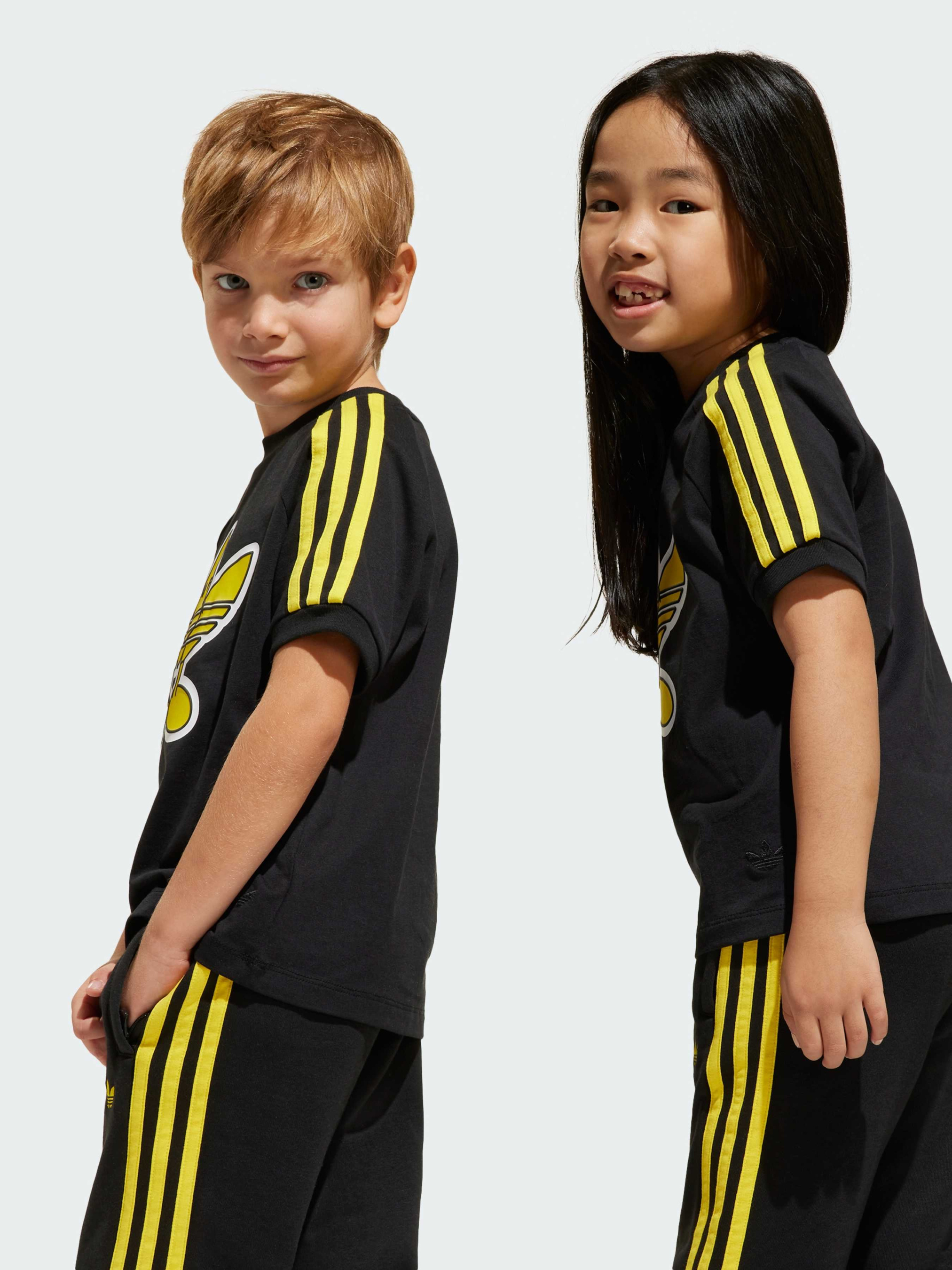 Эта детская футболка от adidas посвящена легендарному Трилистнику в игривой манере. Вместе с ярким принтом Smiley World спереди, она дарит позитивные эмоции. Футболка выполнена из мягкой ткани джерси, в ней удобно играть или просто весело проводить выходные.