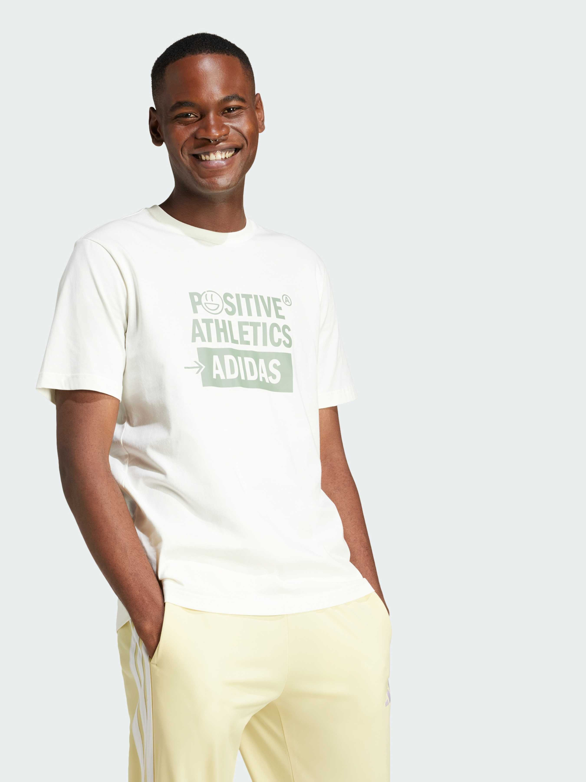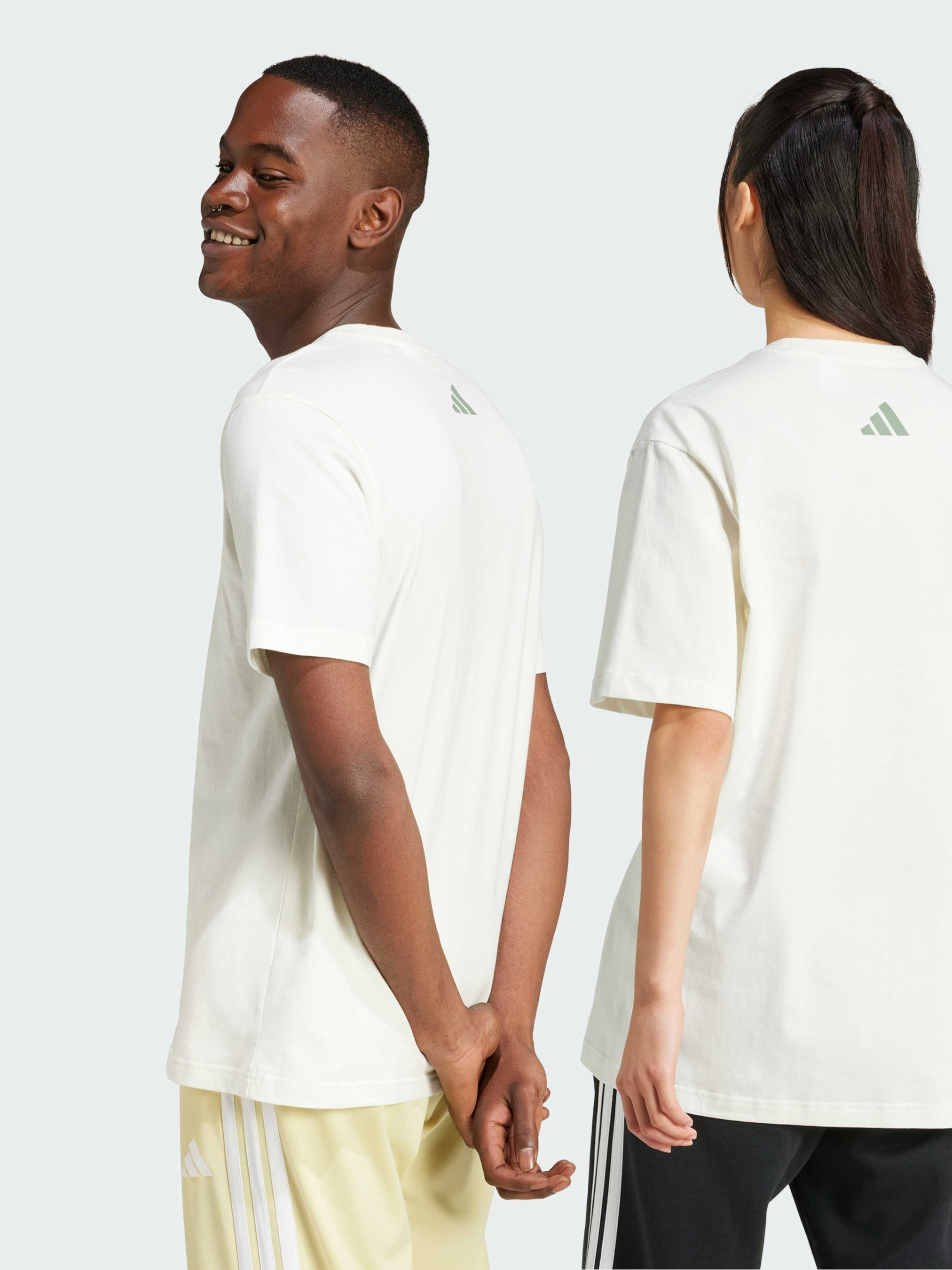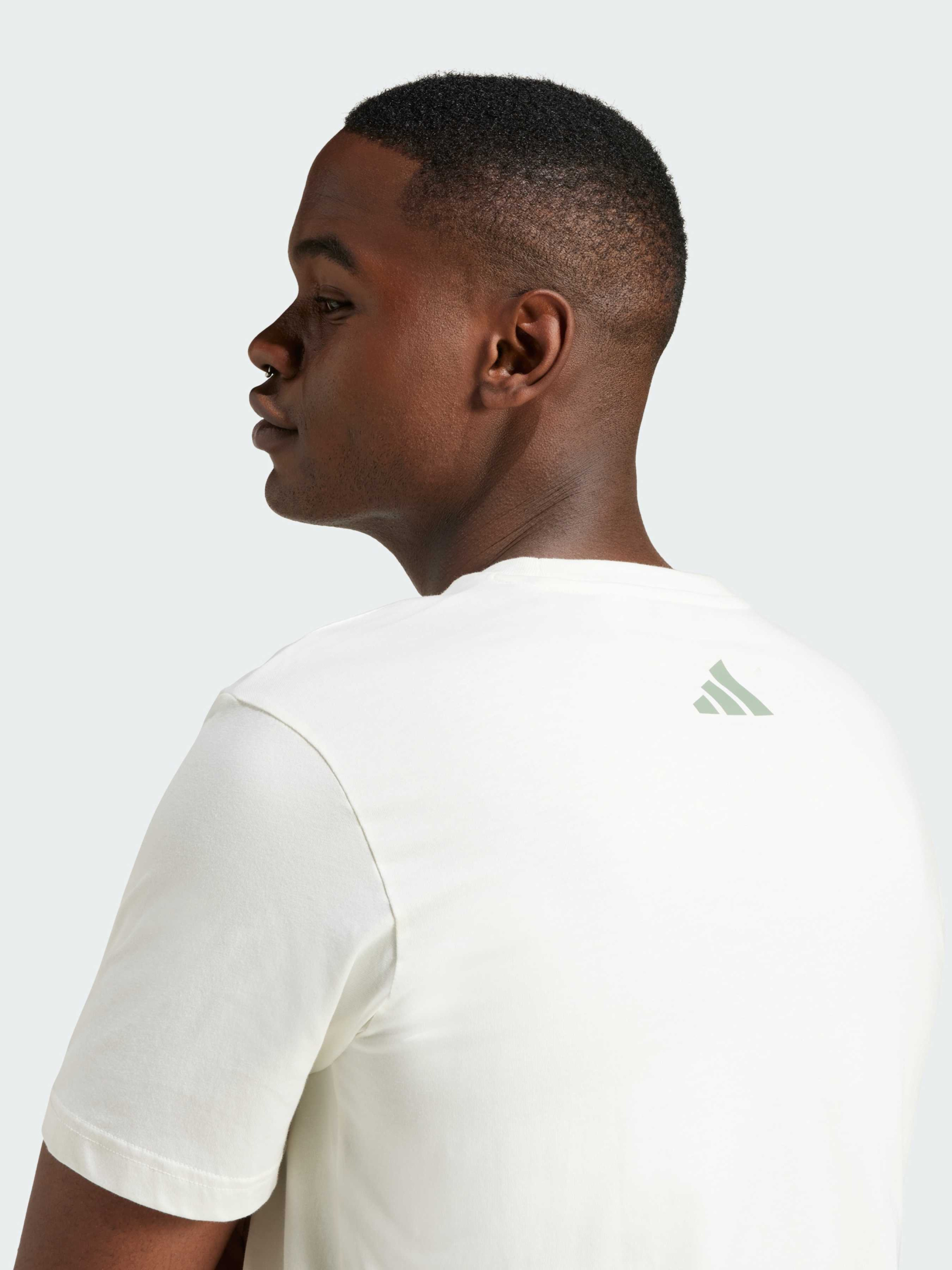 Характеристики 100% хлопок Круглый вырез горловины Прорезиненный принт на груди Стандартный крой Описание Когда нужно немного вдохновения, эта графическая футболка adidas станет отличным выбором. Изготовленная из мягкого и гладкого хлопка, она обеспечивает комфорт с первого мгновения. Яркий графический принт добавляет положительной энергии в твой день, независимо от запланированных дел.