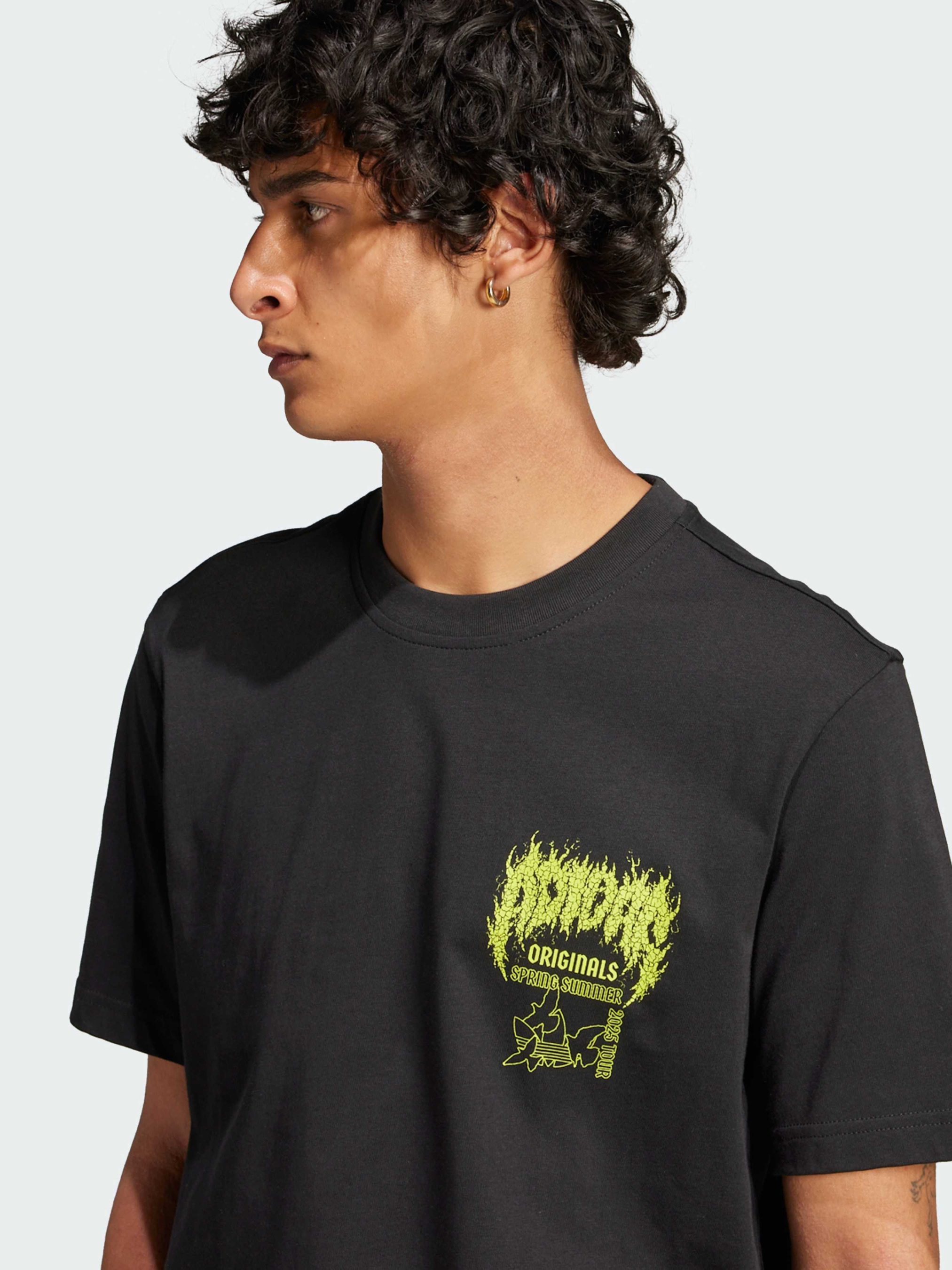 Характеристики 100% хлопок Круглый вырез горловины Стандартный крой Описание Эта футболка adidas сочетает уличный стиль и спортивный дух, выполнена из 100% хлопка для максимального комфорта в течение всего дня. Яркая графика большого размера на спине и поменьше на груди подчеркивают эстетику adidas Originals, вдохновленную графикой концерта в стиле дэт-метал.