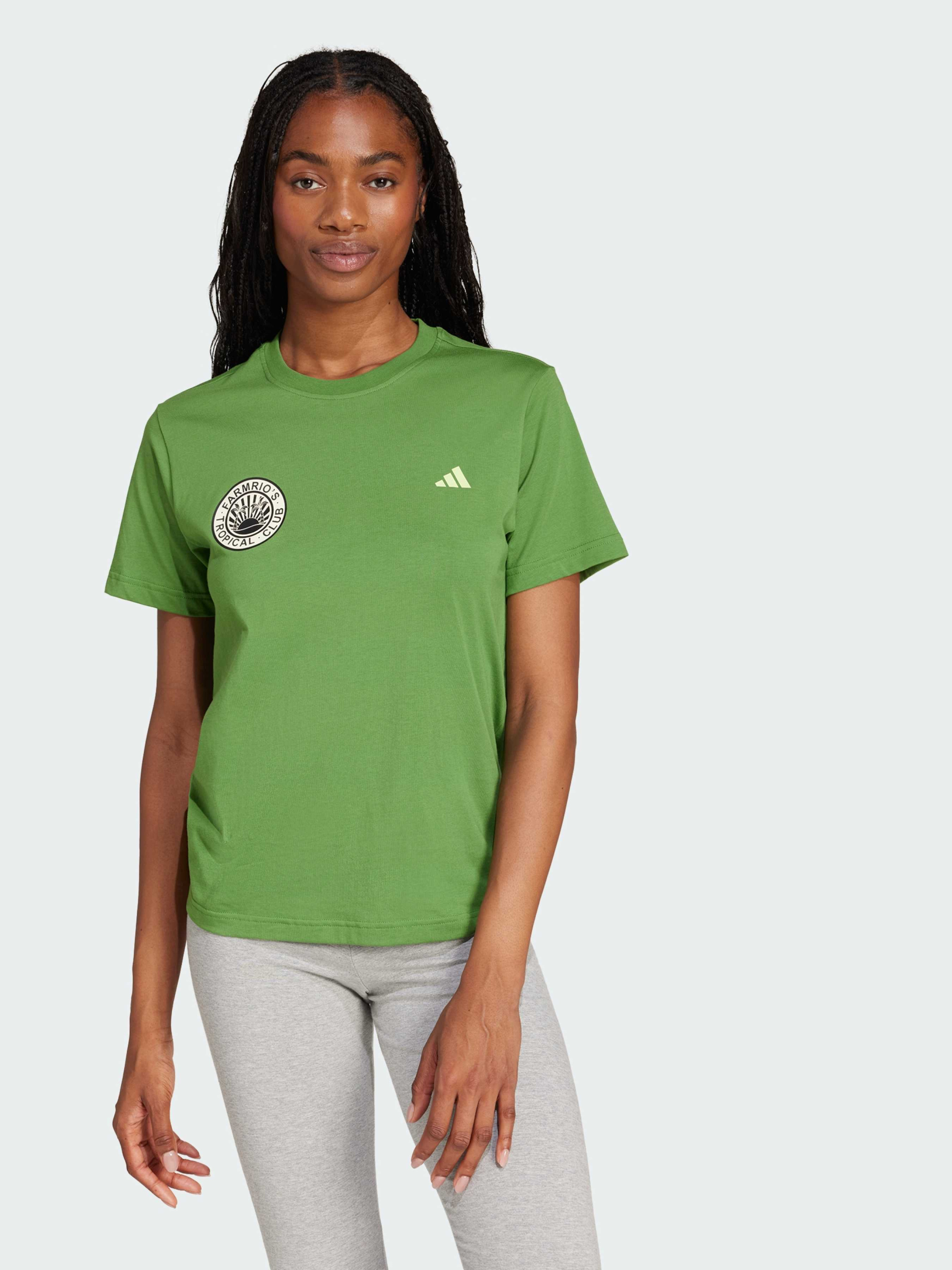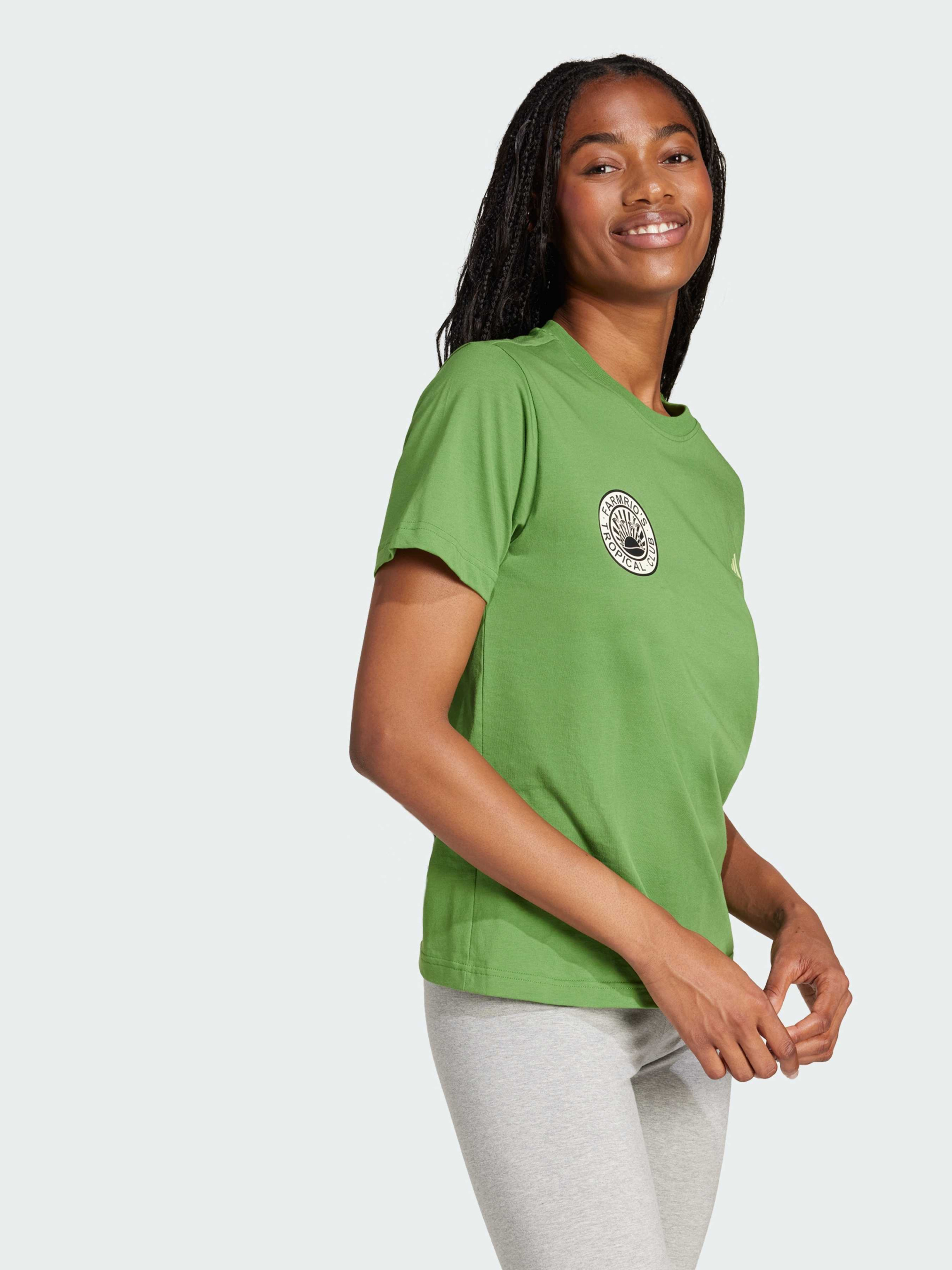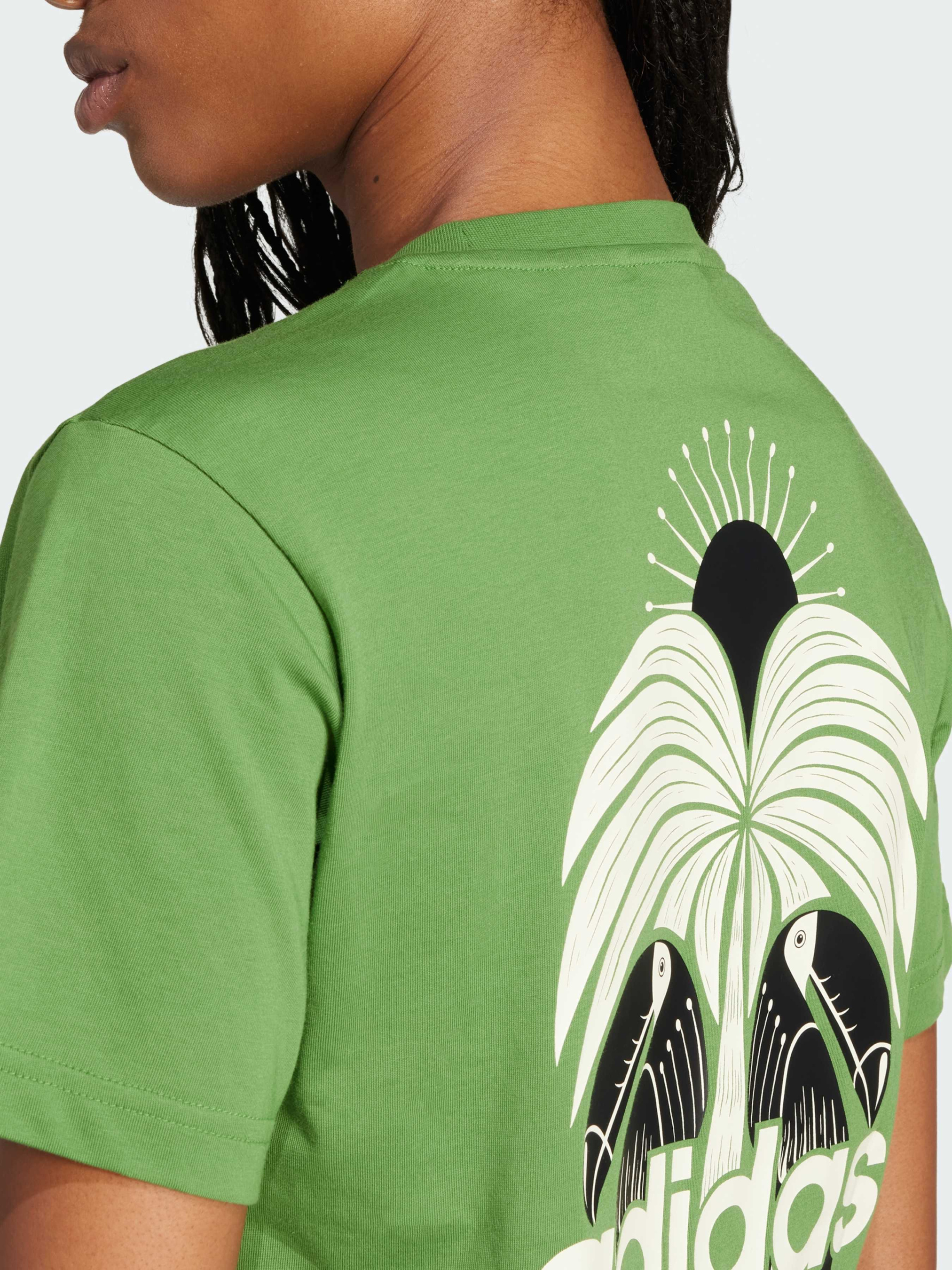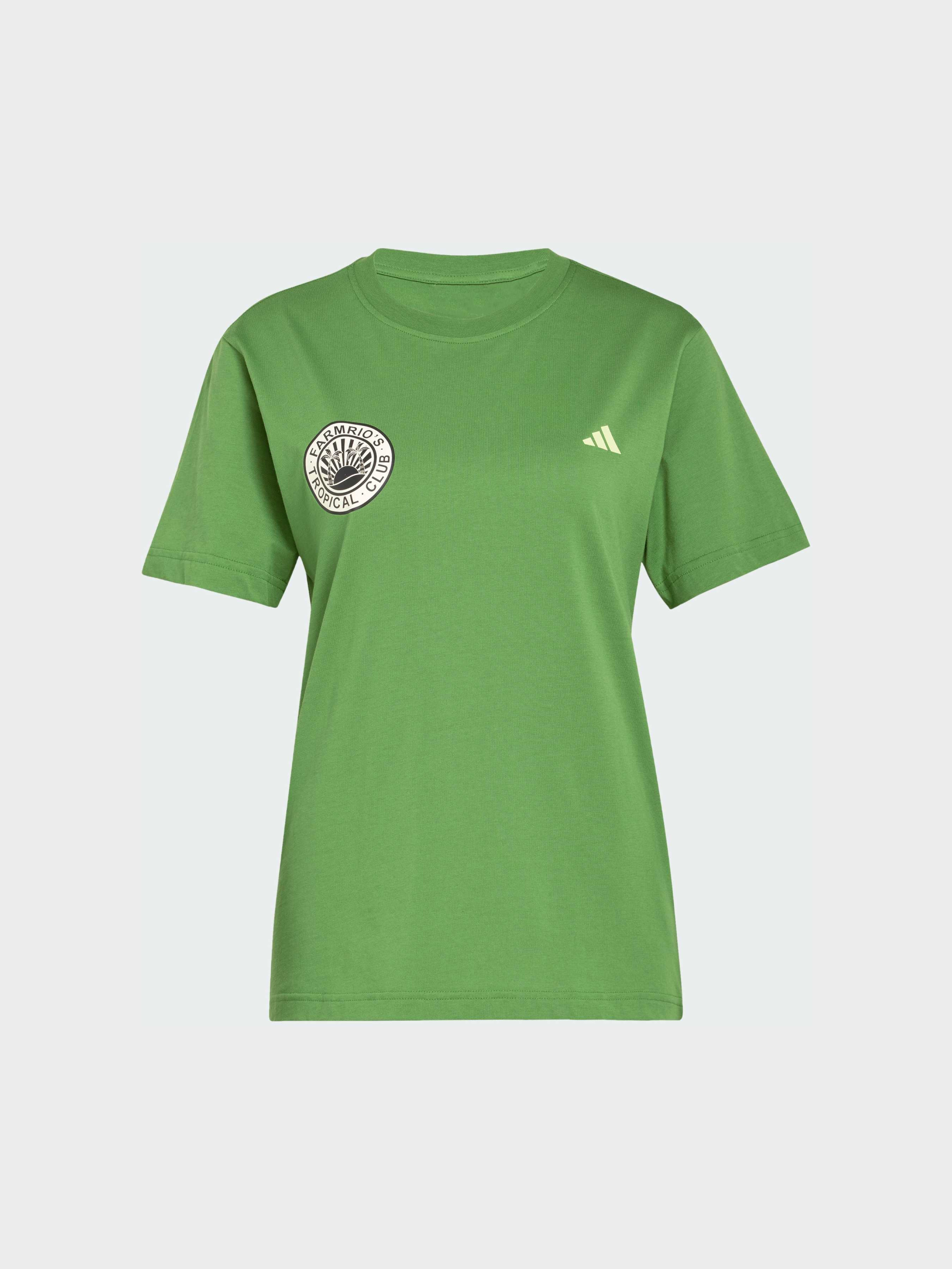 Характеристики 100% хлопок FARM Rio принт Круглый вырез горловины Стандартный крой Описание Празднуй дикую красоту пустыни в этой футболке adidas x FARM Rio. Классический крой и мягкий хлопковый материал задают непринуждённый комфорт. Куда бы ты ни отправилась, пышный тропический принт на спине не останется незамеченным.