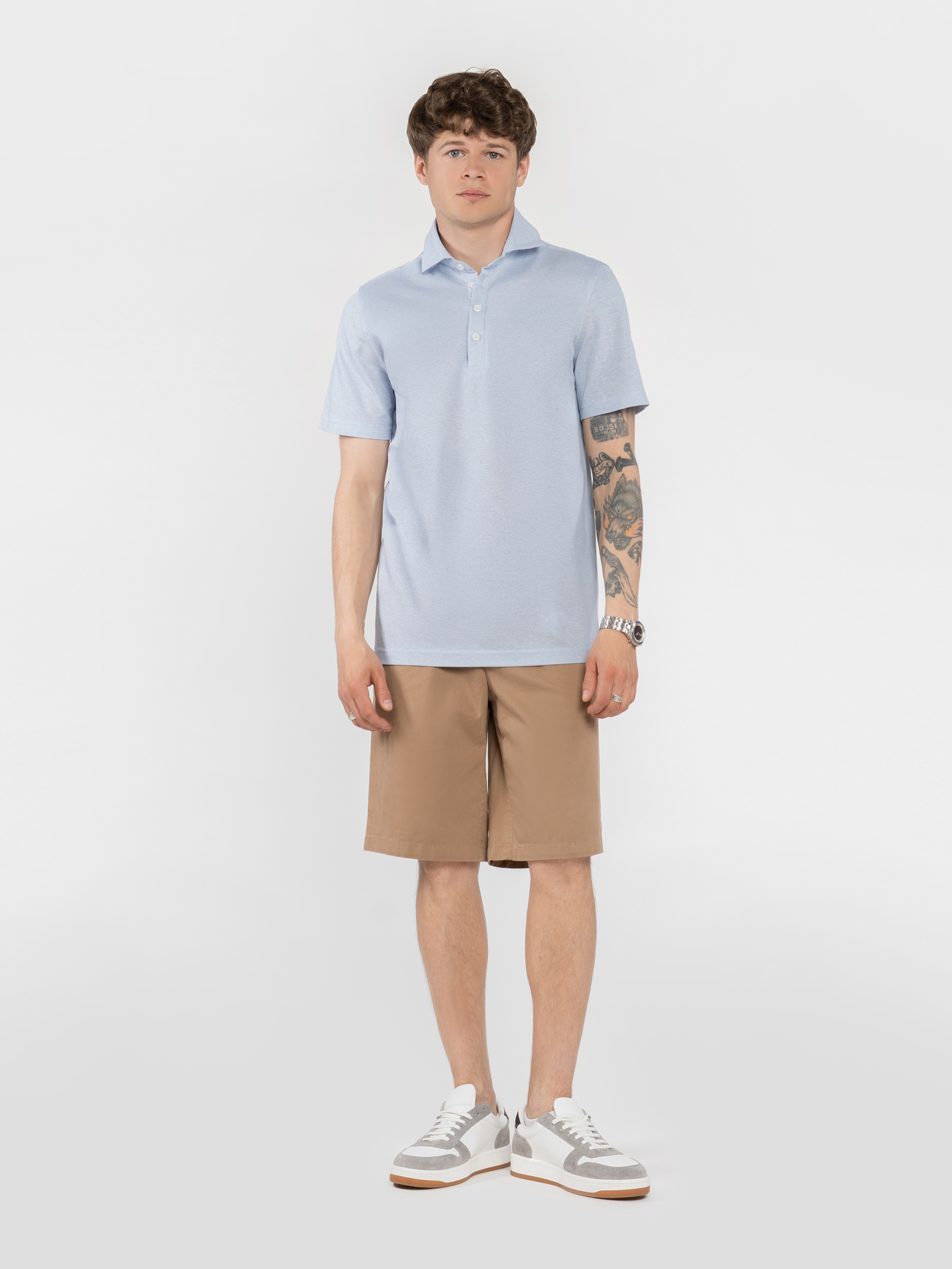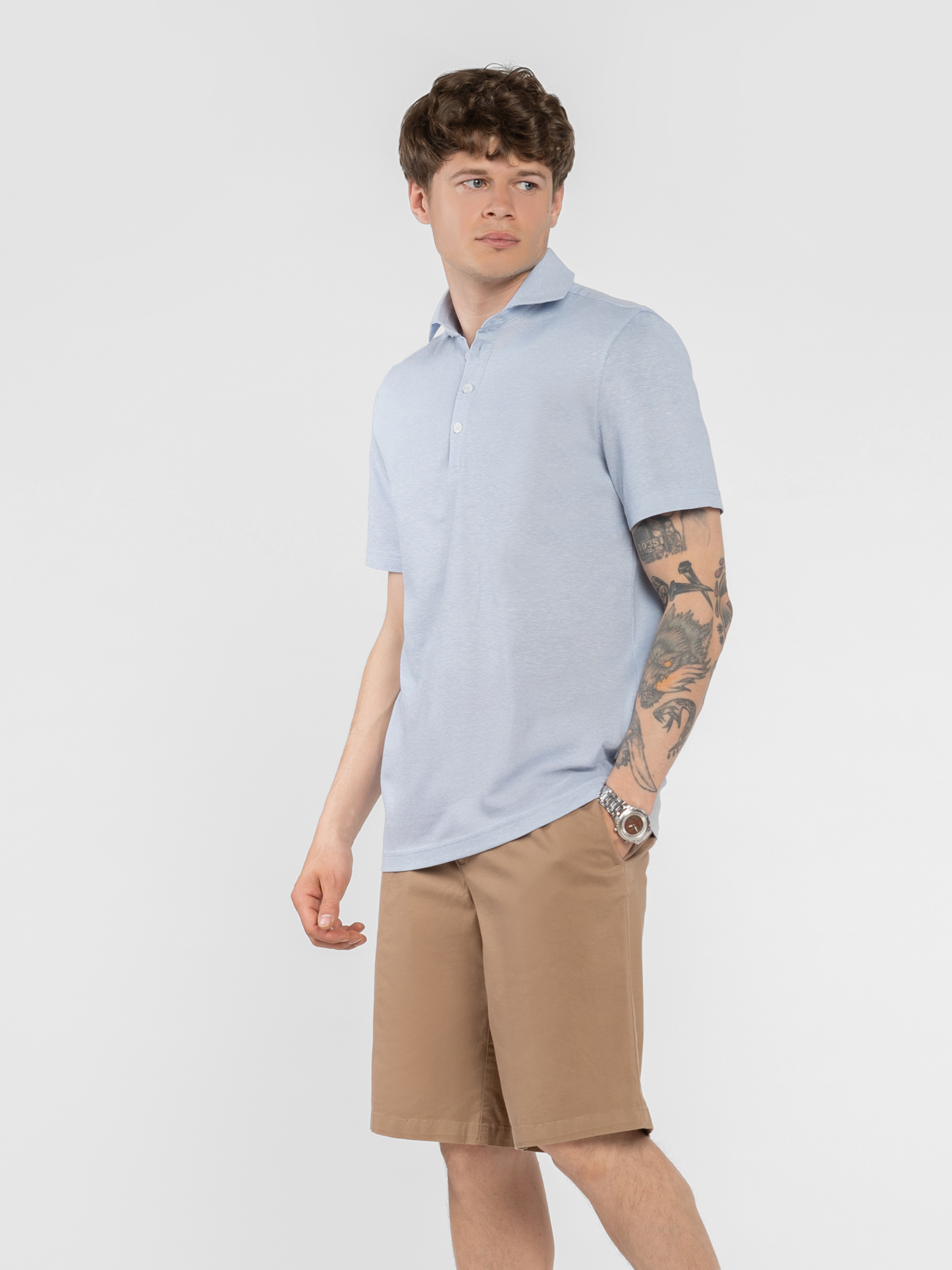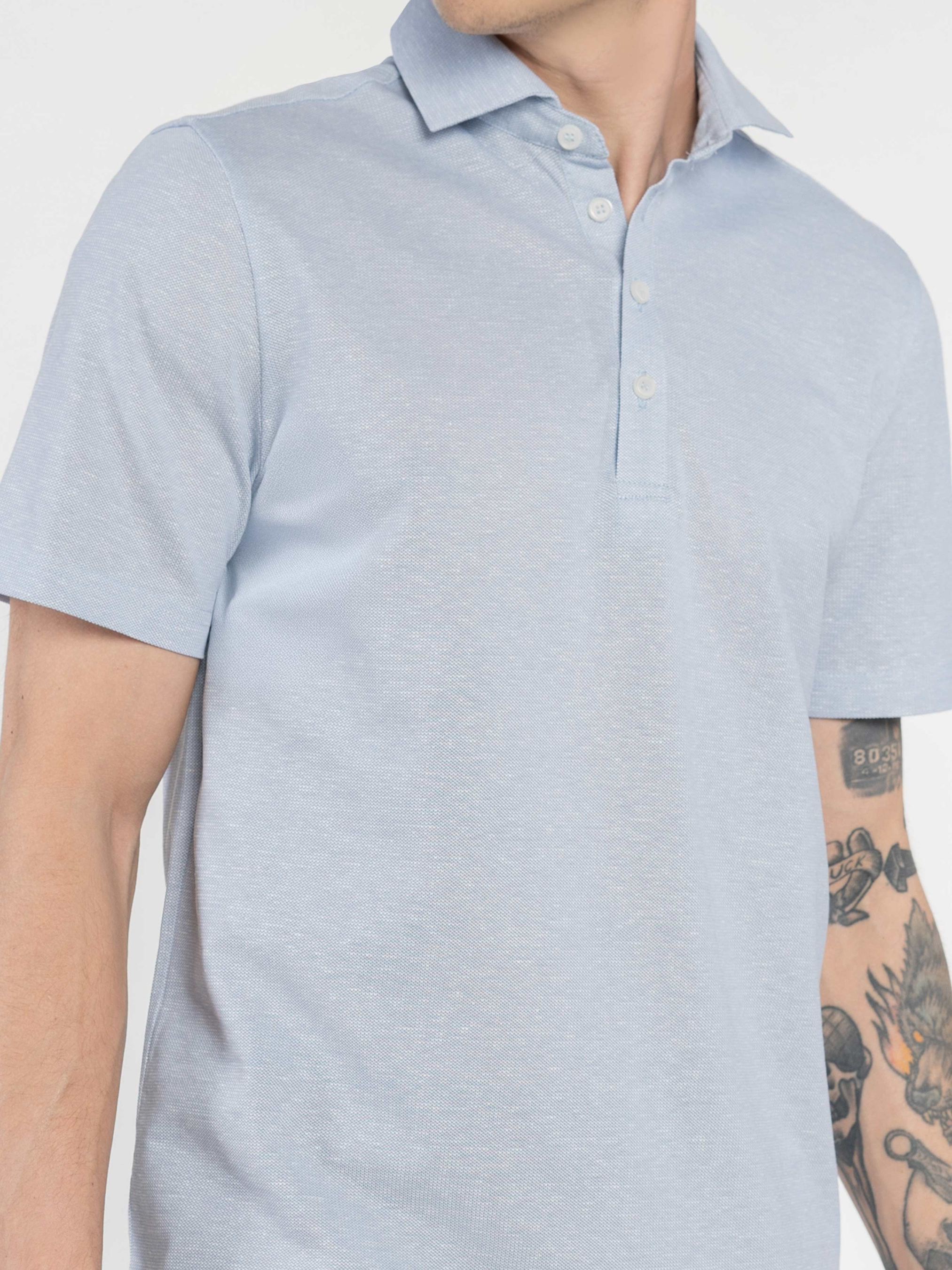 Мужское поло Arber голубого цвета изготовлено из натурального хлопка и льна, ткань дышащая, приятная на ощупь и дарит ощущение прохлады даже в жаркую погоду. Модель с застежкой на пять пуговиц и лаконичным дизайном идеально подходит для ежедневного использования. Легко сочетается с шортами или брюками, добавляя стиля и непринужденности в ежедневном наряде. Модель на фото: размер 48, рост 183 см, параметры: 97/86/96.