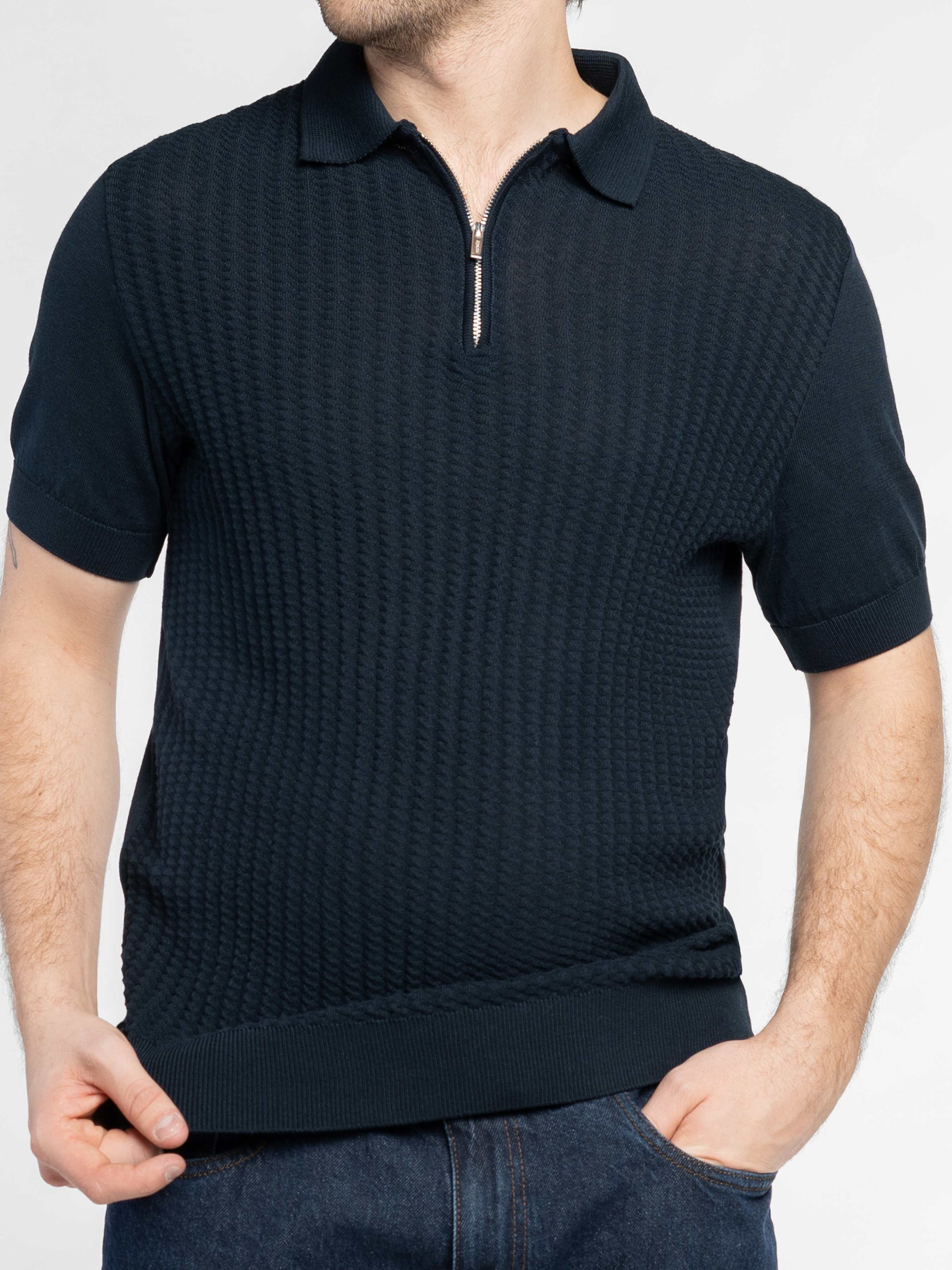 Мужское поло Arber синего цвета, созданное из тонкой пряжи 100% высококачественного хлопка. Натуральная ткань дарит ощущение легкости и исключительной мягкости, приятной к телу. Благодаря тонкой текстуре, поло отлично пропускает воздух, обеспечивая комфорт в течение всего дня. Поло с застежкой на молнию гармонично дополнит гардероб в сочетании с брюками или джинсами. Модель на фото в размере 48. Рост: 183 см. Параметры: 94/90/100