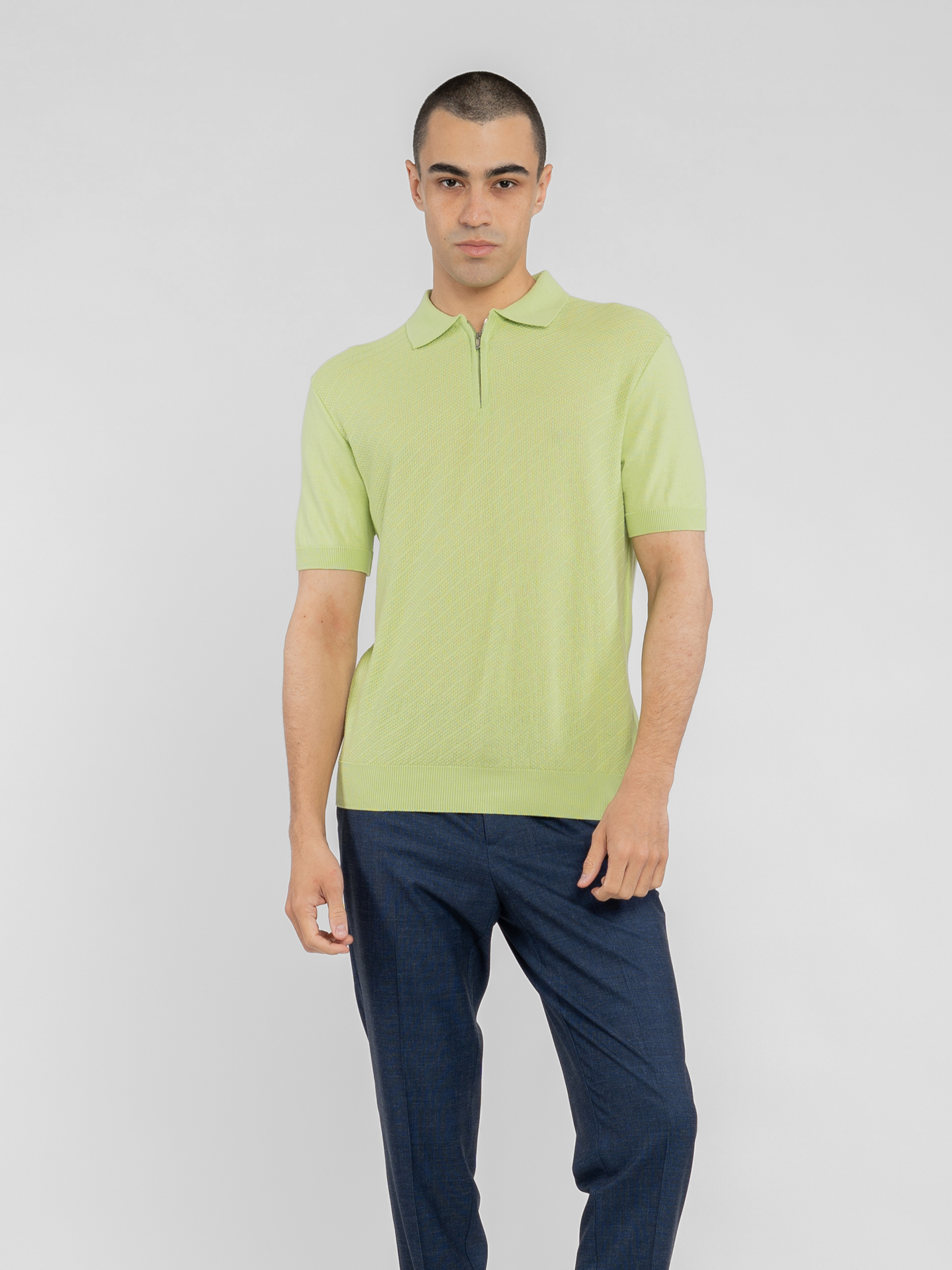 Мужское поло Arber зеленого цвета, связанное из тонкой пряжи 100% высококачественного хлопка. Легкая вязка из натурального хлопка приятна на ощупь и комфортна для кожи. Благодаря тонкой текстуре, поло хорошо пропускает воздух. Модель с застежкой на молнию добавляет образу сдержанной элегантности. Идеально сочетается с брюками, джинсами и шортами. Модель на фото в размере 48. Рост: 188 см. Параметры: 97/78/96.