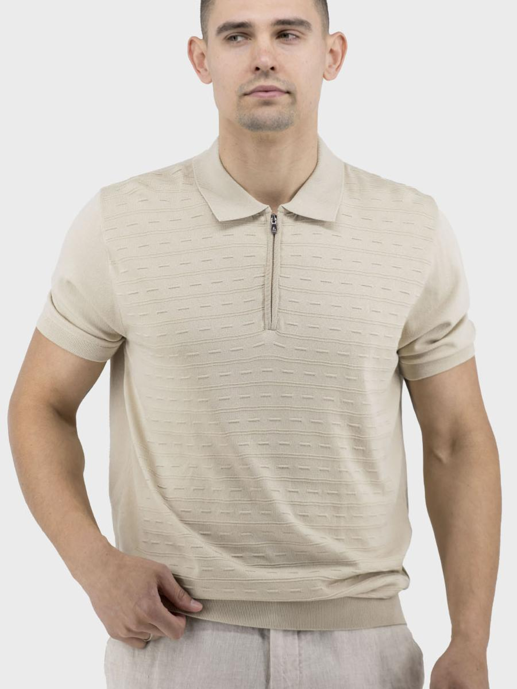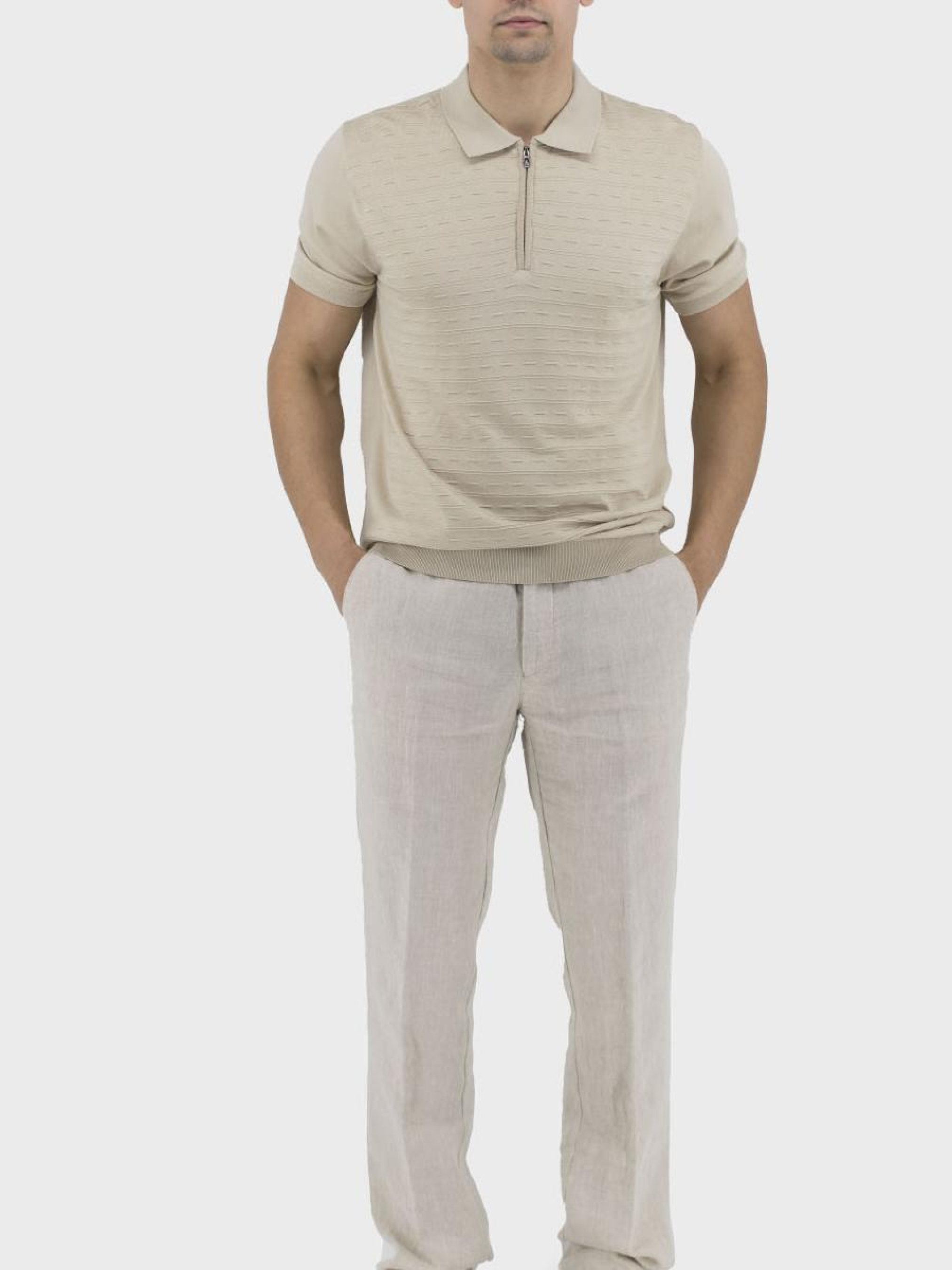 Стильна чоловіча поло-футболка, що поєднує в собі елегантність класичного стилю і зручність casual. Виготовлена з тонкої, еластичної тканини, ця модель без підкладки і утеплювача ідеально підходить для теплої весни та літнього сезону. Втачний короткий рукав забезпечує легкість руху, а прямий силует додає гармонійного вигляду. Сорочковий комір у поєднанні з оригінальними манжетами створює неповторний образ, а блискавка надає сучасного акценту. Відсутність капюшона та кишень підкреслює мінімалістичність дизайну, дозволяючи сфокусуватися на деталях і візерунках. Ідеальний вибір для поціновувачів стилю та комфорту!