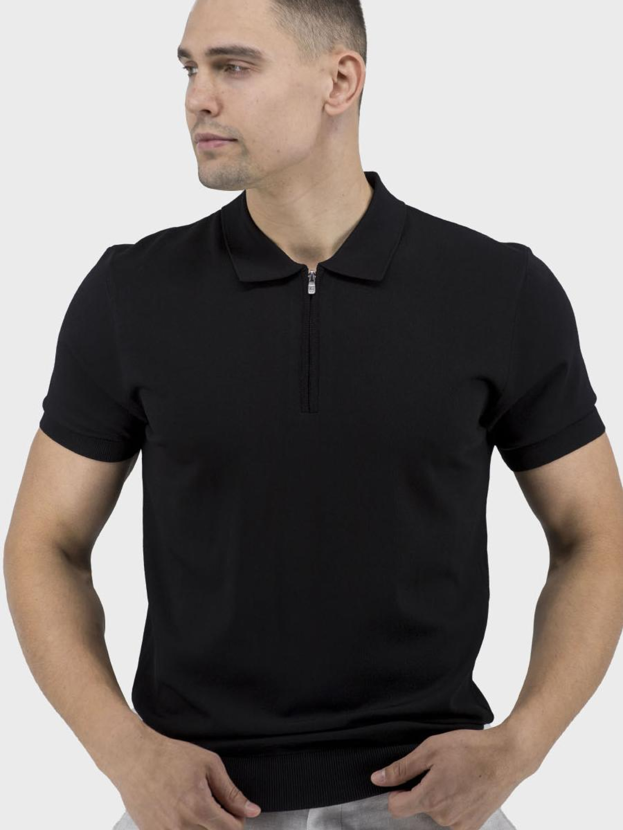 Откройте для себя комфорт и стиль с нашим классическим мужским поло, которое станет вашей излюбленной частью гардероба для весенне-летнего сезона. Это поло изготовлено из качественного материала без подложки, что обеспечивает легкость и комфорт в жаркую погоду. Втачные короткие рукава и прямой силуэт придают элегантности и подчеркивают вашу динамичность. Однотонный дизайн делает эту модель универсальной, отлично подходя для casual образов и классических сочетаний. Рубашечный воротник и стильные манжеты придают изысканность, а застежка-молния обеспечивает удобство и легкость ношения. Без капюшона и карманов, эта тонкая и эластичная модель идеально подходит для активного мужчины, ценящего простоту и качество.