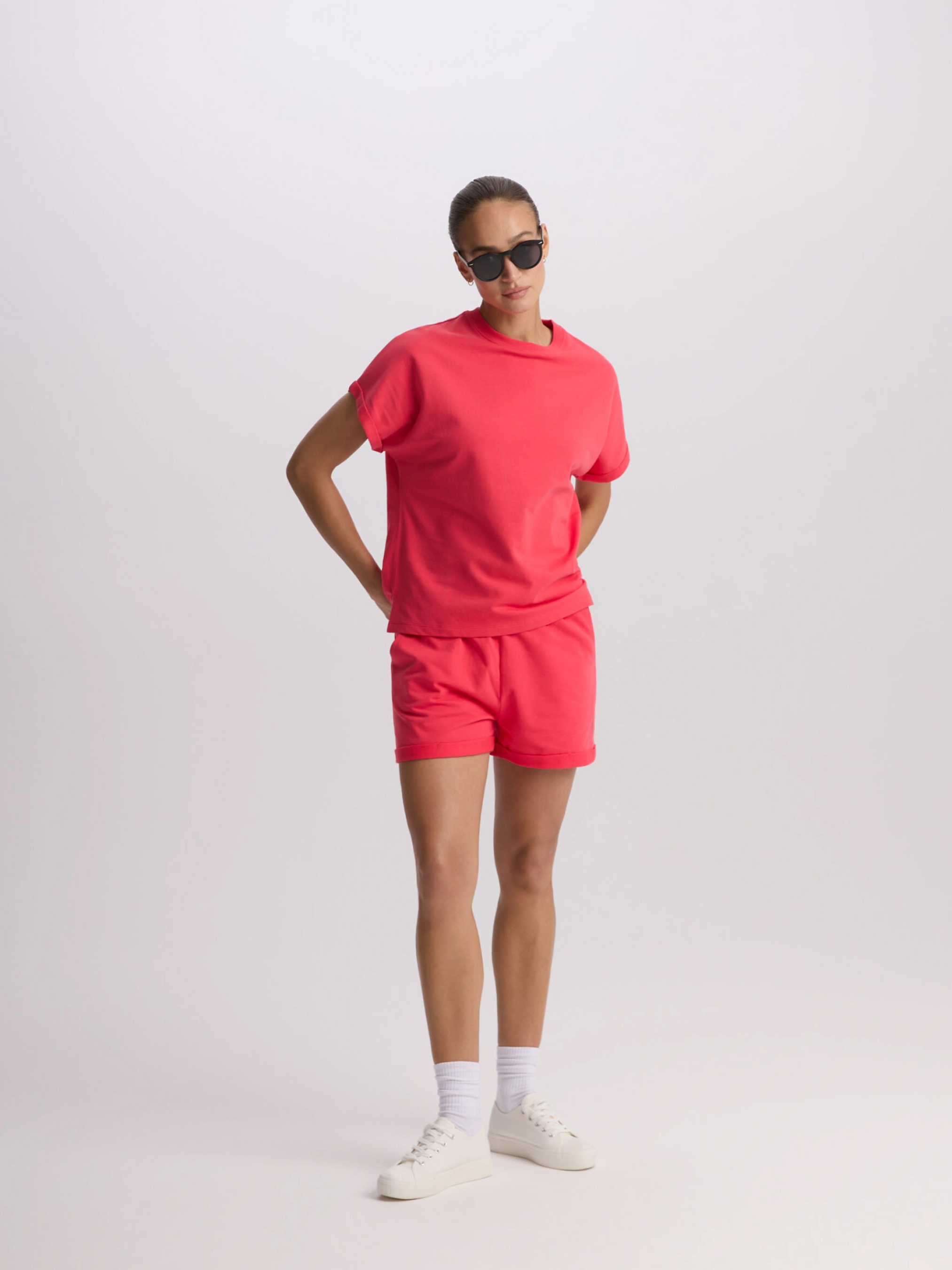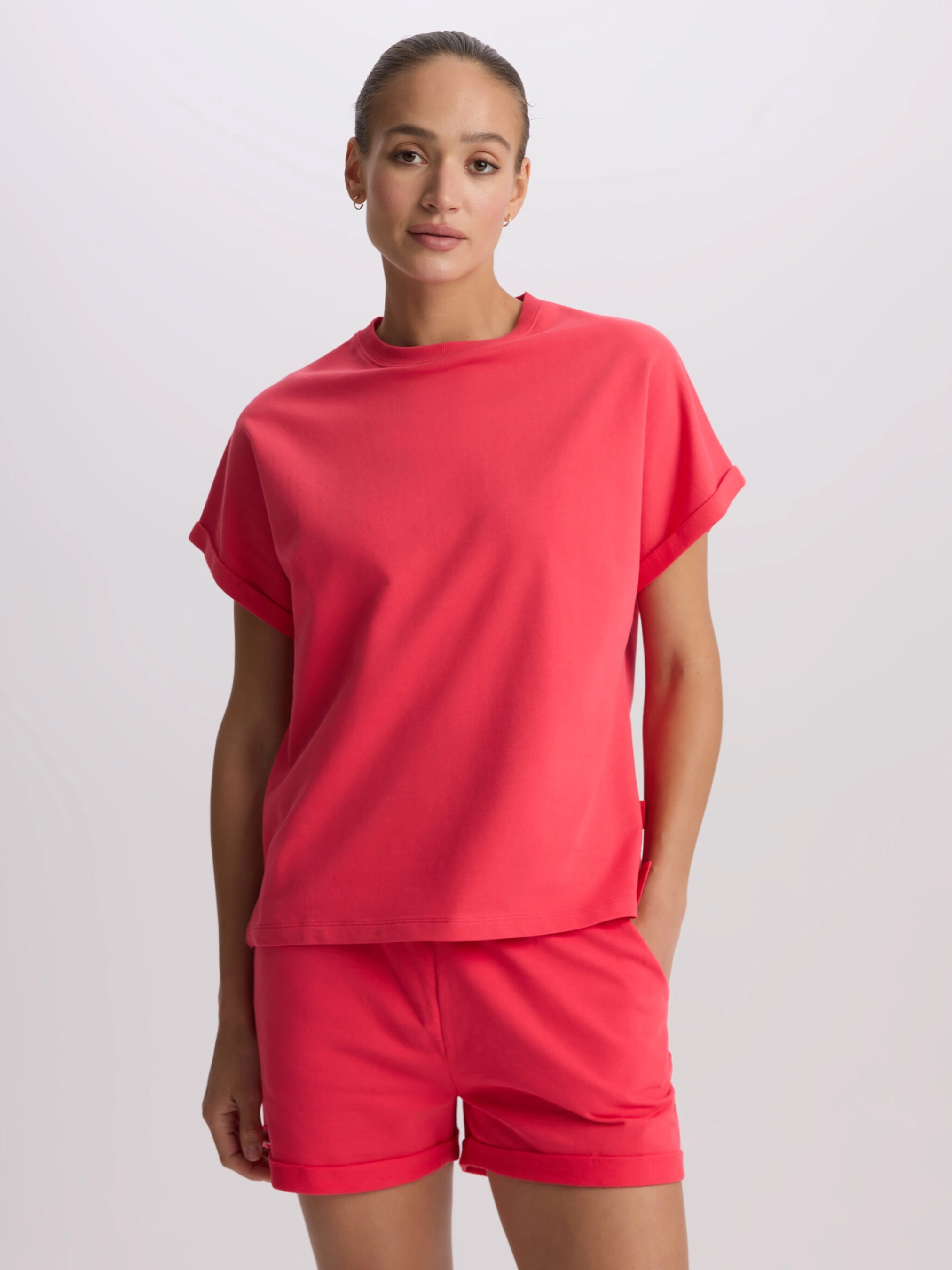 SIDACO Футболка из хлопкового трикотажа с короткими закатанными рукавами: - свободный крой, крой кимоно, - изготовлена из хлопкового трикотажа, - закатанные рукава. Состав: 100% хлопок Сезон: Весна/Лето Уход: - стирка при максимум 30 °С - деликатная стирка - не отбеливать - не сушить в сушильной машине - гладить максимум при темпе. 110 °С - не химчистка