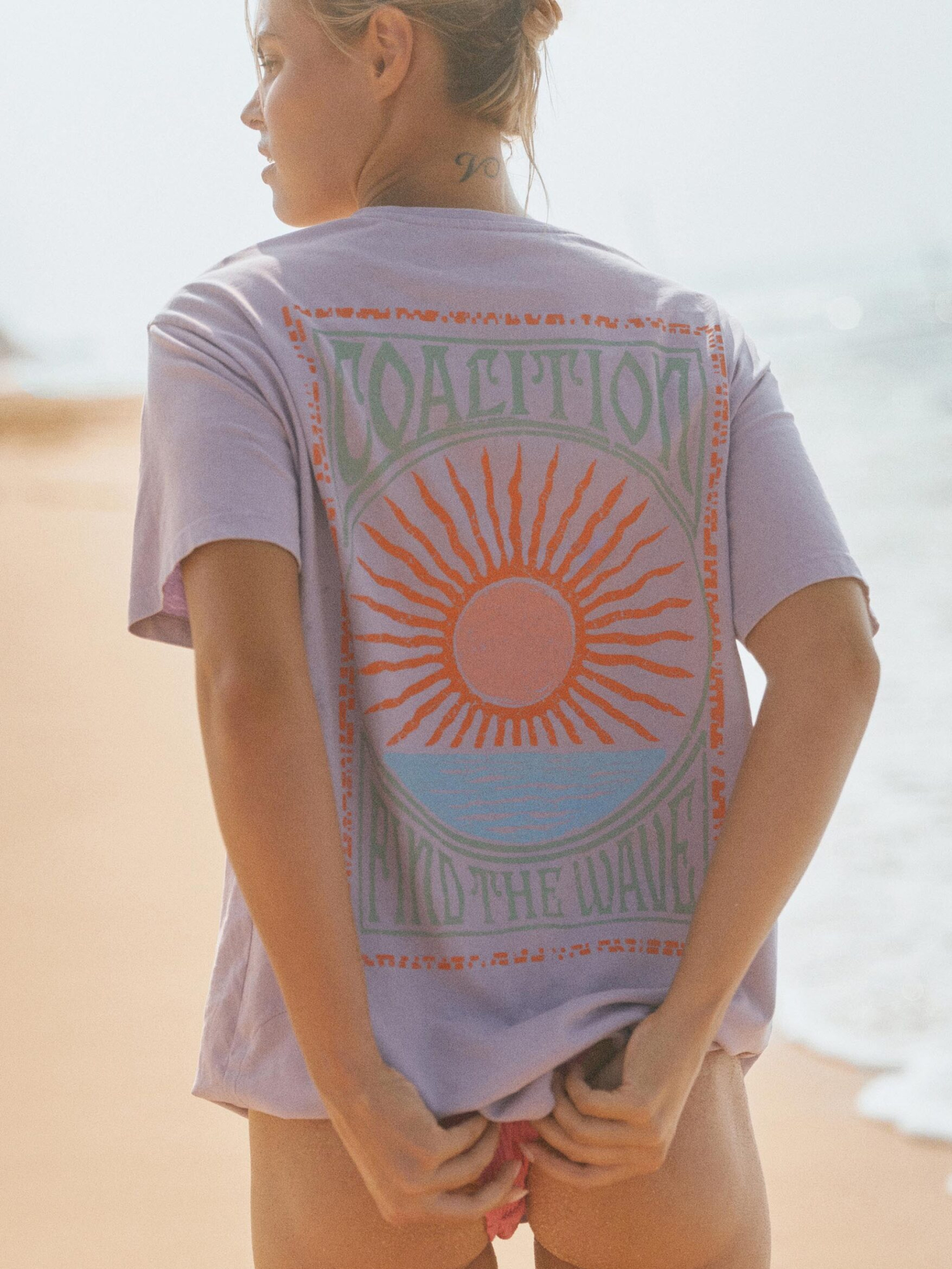 CLTN TIMA Женская футболка из коллекции Coalition с принтом на спине и небольшим эмблемой Roar на груди: - свободный крой, - удлиненная длина, - рукава до локтя, – небольшой круглый вырез горловины. Состав: 100% хлопок Сезон: Весна/Лето Уход: - стирка при максимуме 30 °С - деликатные вещи - не отбеливать - не сушить в сушильной машине - гладить максимум при темпе 110 °С. - не химчистка