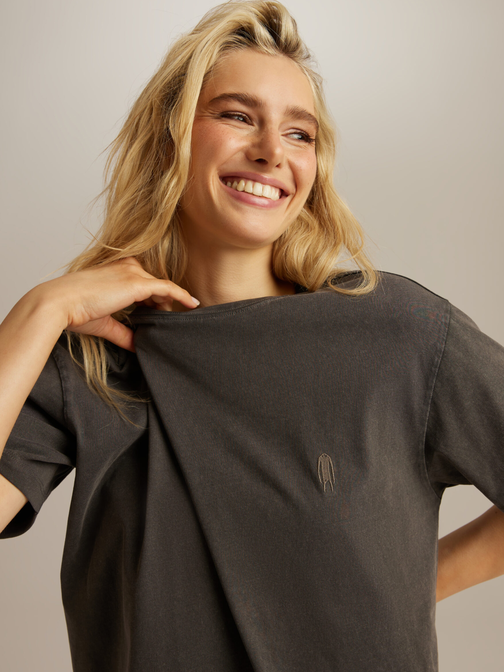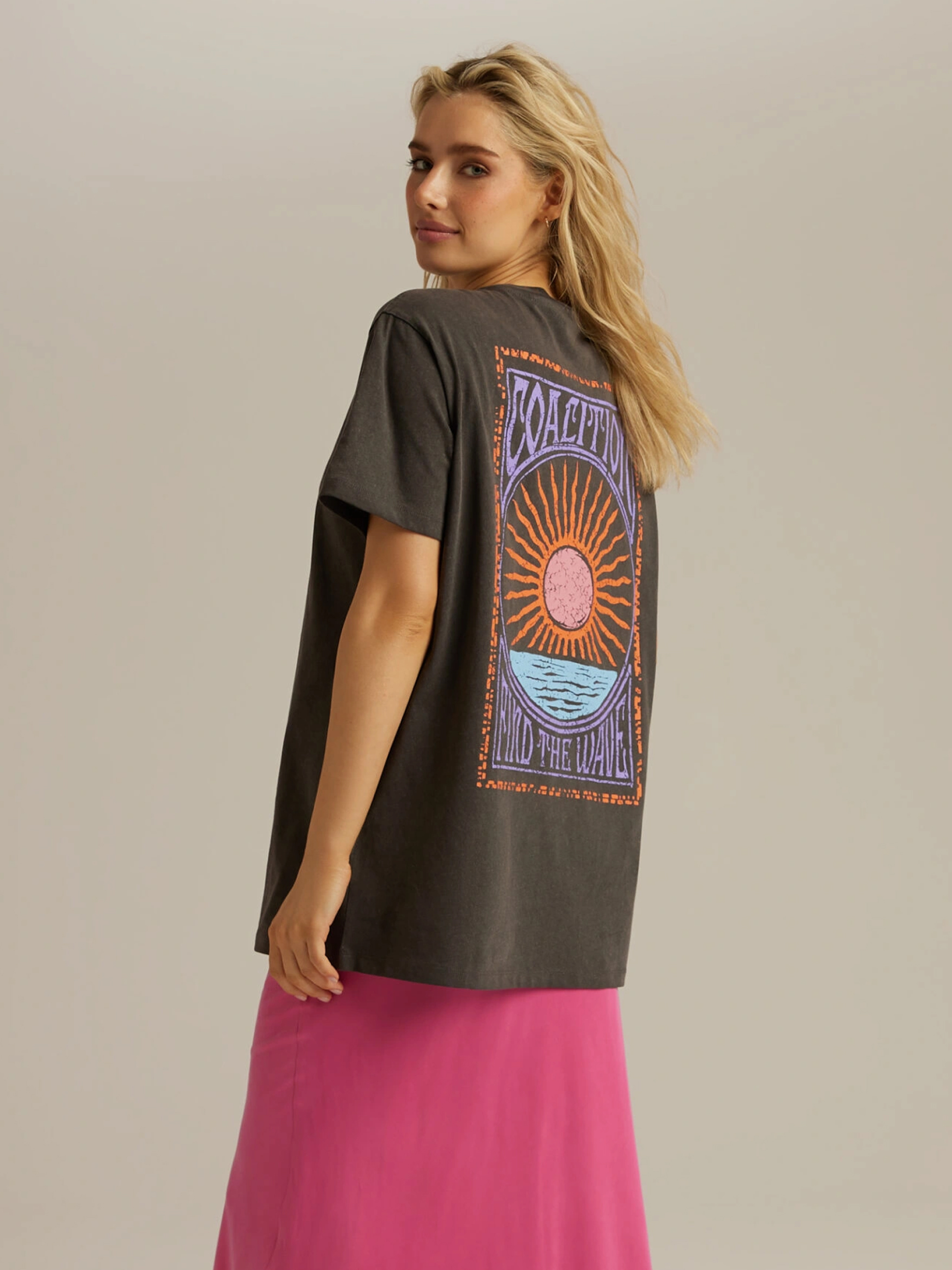 CLTN TIMA Женская футболка из коллекции Coalition с принтом на спине и небольшим эмблемой Roar на груди: - свободный крой, - удлиненная длина, - рукава до локтя, – небольшой круглый вырез горловины. Состав: 100% хлопок Сезон: Весна/Лето Уход: - стирка при максимуме 30 °С - деликатные вещи - не отбеливать - не сушить в сушильной машине - гладить максимум при темпе 110 °С. - не химчистка
