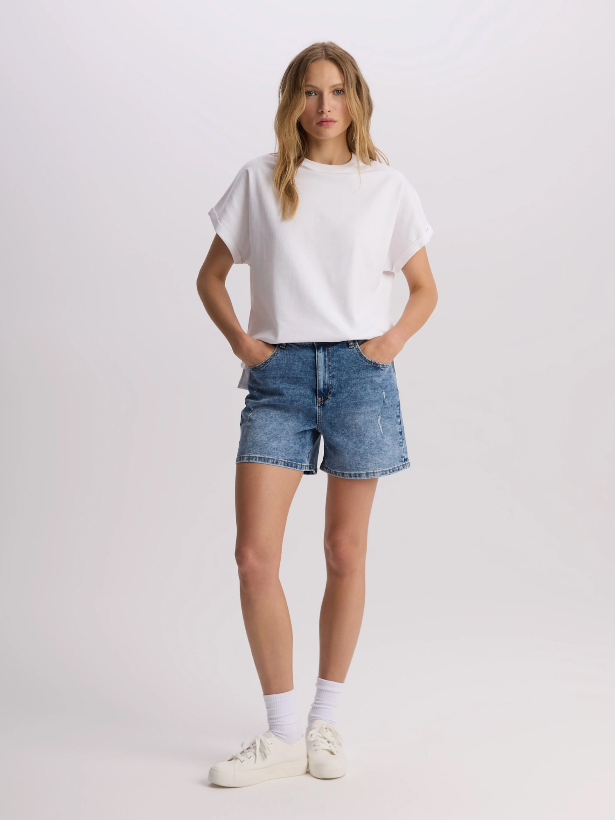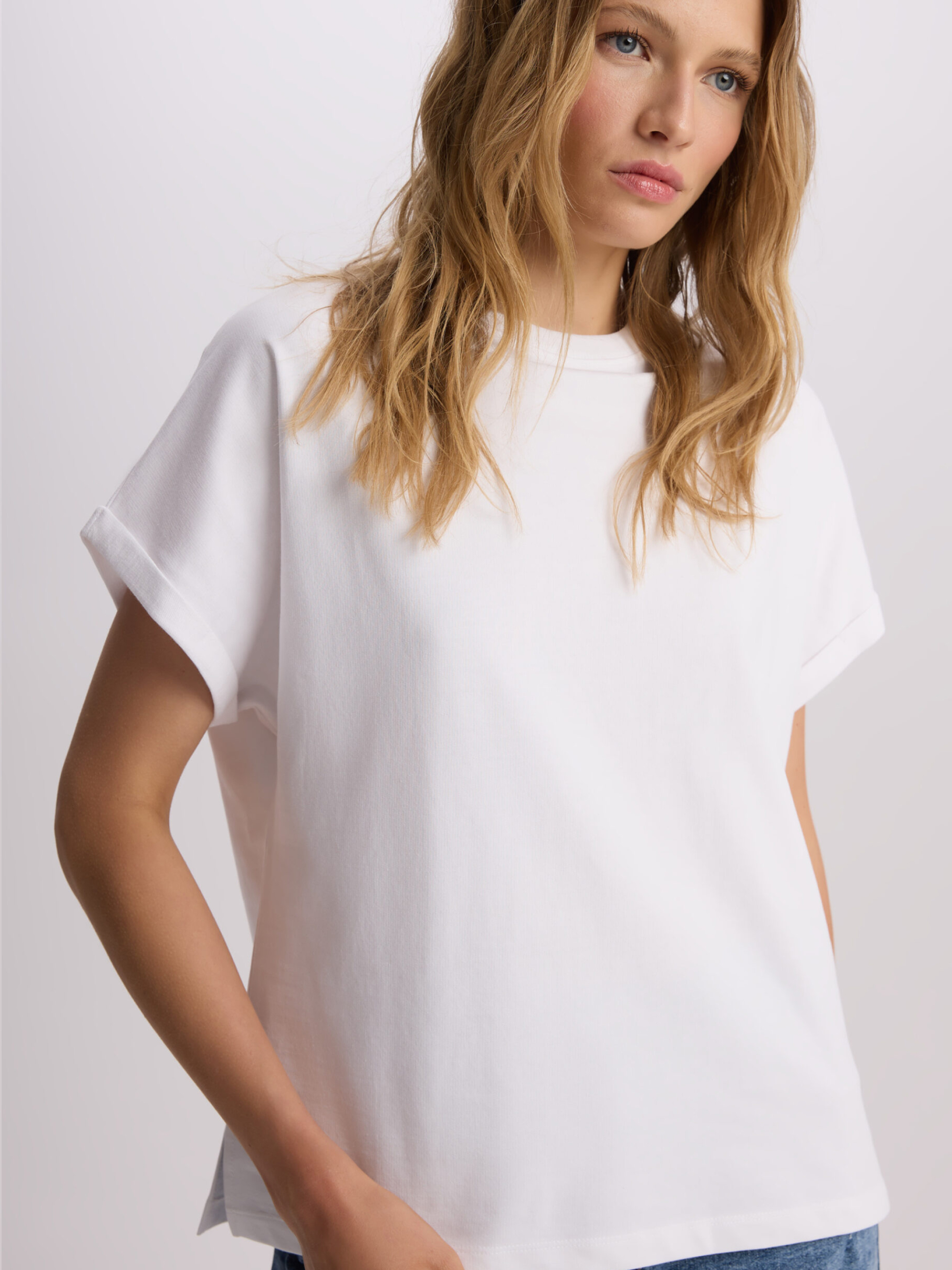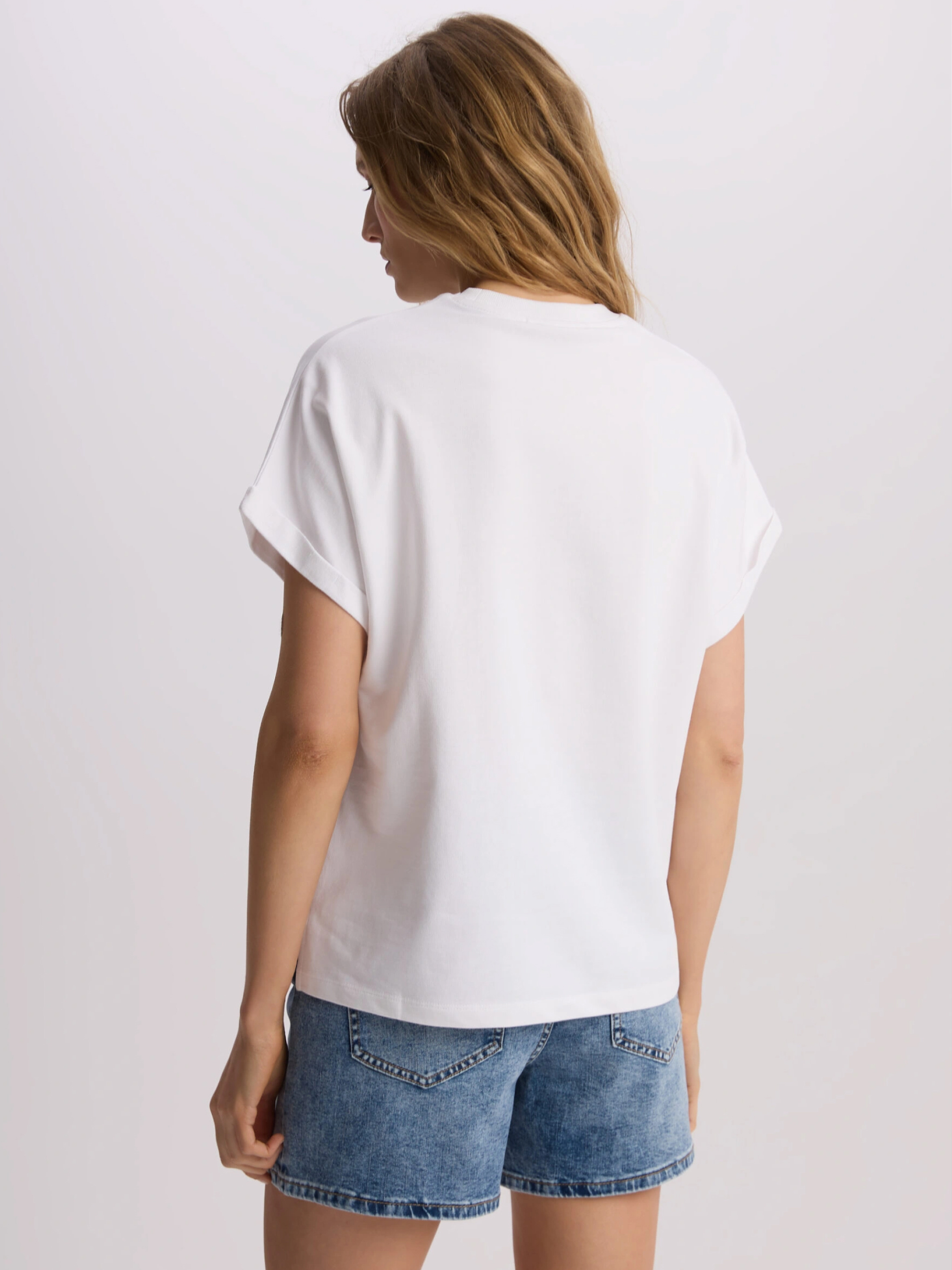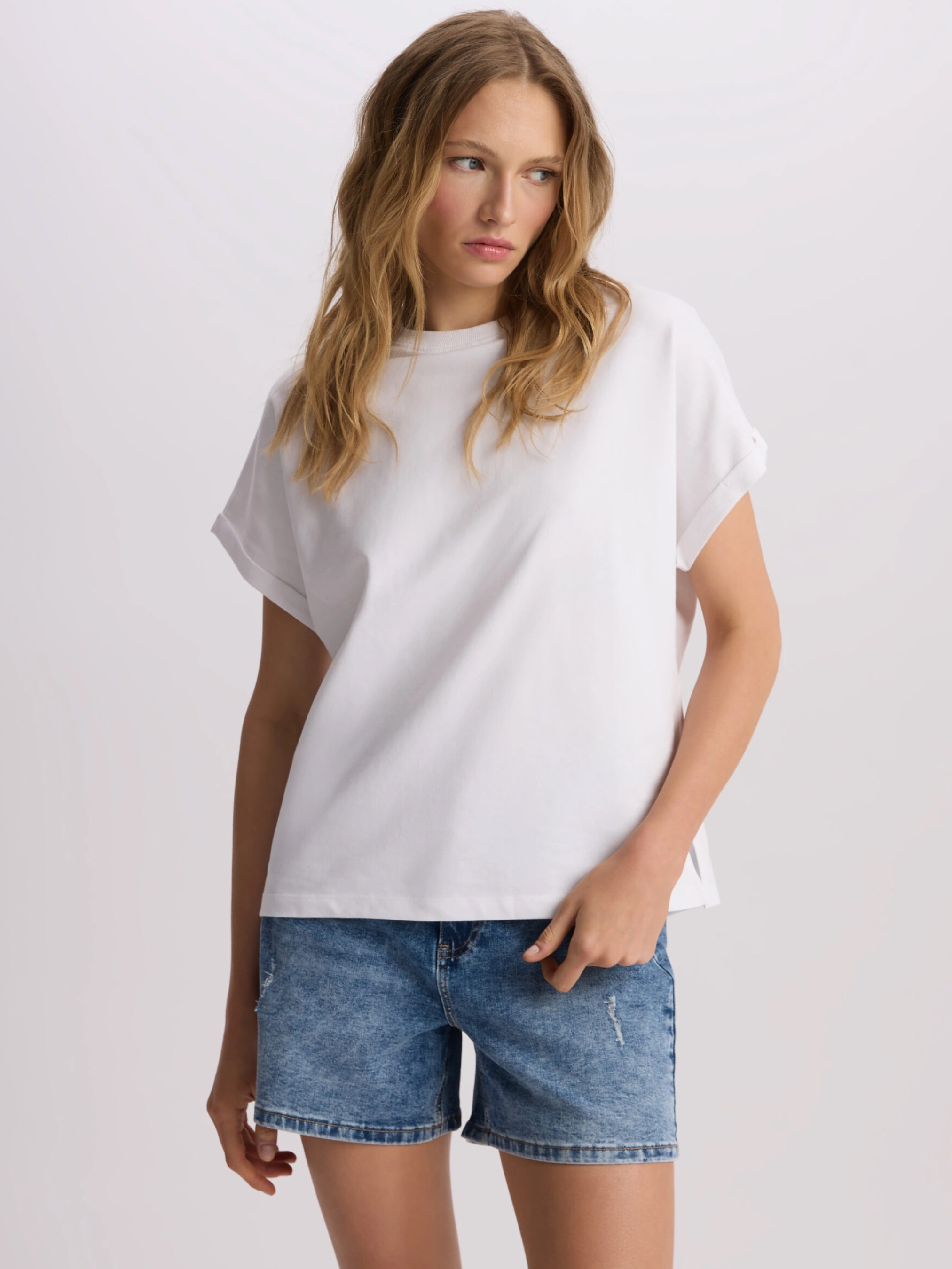 SIDACO Футболка из хлопкового трикотажа с короткими закатанными рукавами: - свободный крой, крой кимоно, - изготовлена из хлопкового трикотажа, - закатанные рукава. Состав: 100% хлопок Сезон: Весна/Лето Уход: - стирка при максимум 30 °С - деликатная стирка - не отбеливать - не сушить в сушильной машине - гладить максимум при темпе. 110 °С - не химчистка