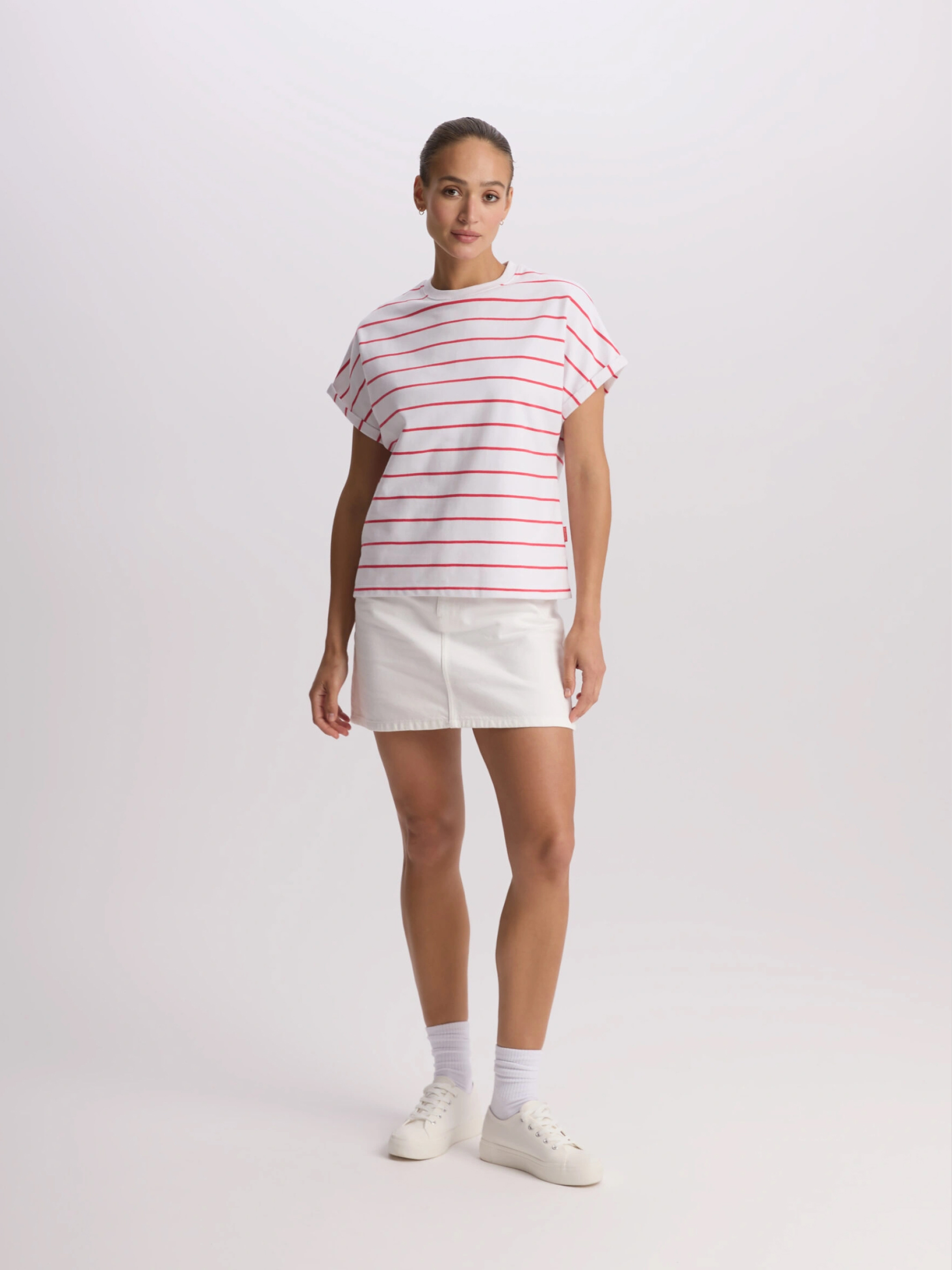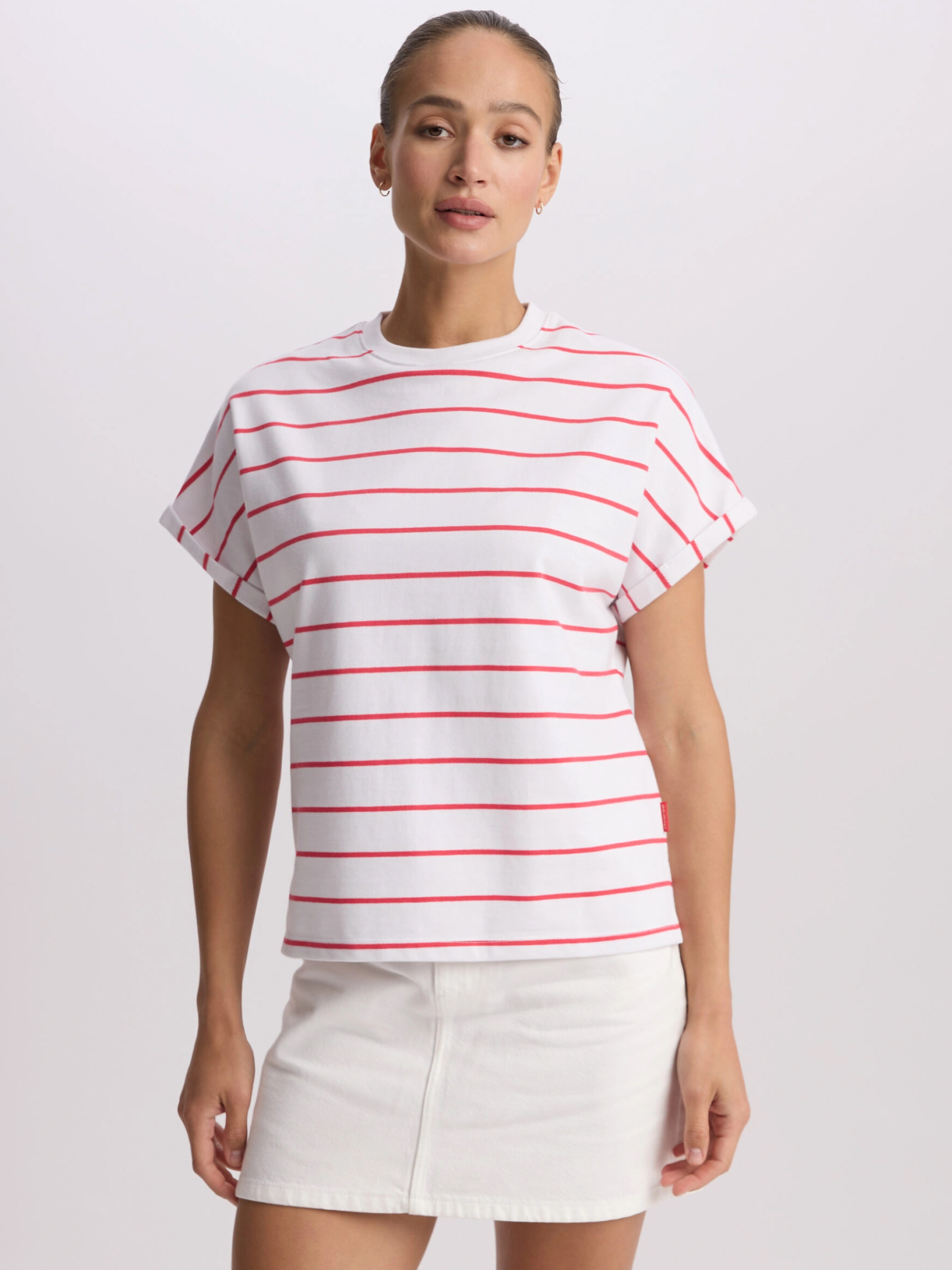SIDACO Футболка из хлопкового трикотажа с короткими закатанными рукавами: - свободный крой, крой кимоно, - изготовлена из хлопкового трикотажа, - закатанные рукава. Состав: 100% хлопок Сезон: Весна/Лето Уход: - стирка при максимум 30 °С - деликатная стирка - не отбеливать - не сушить в сушильной машине - гладить максимум при темпе. 110 °С - не химчистка