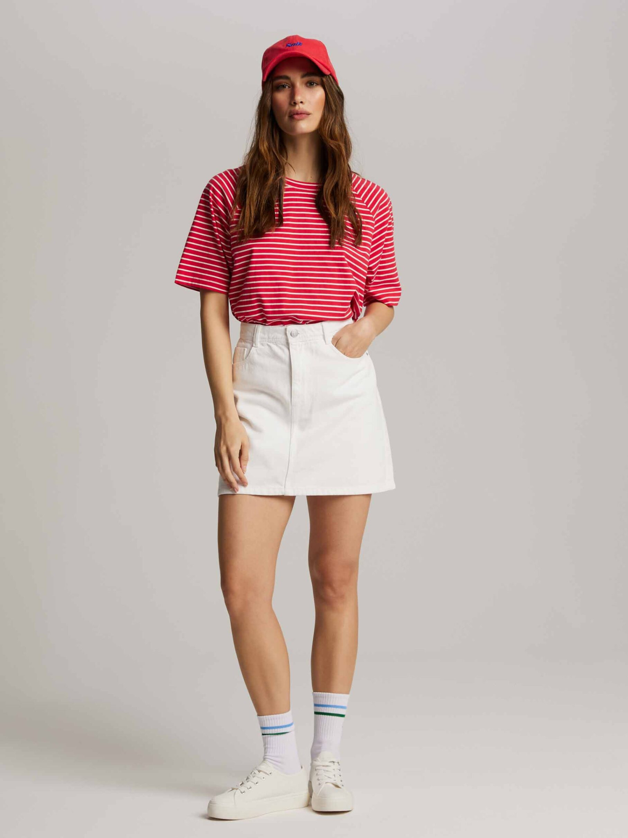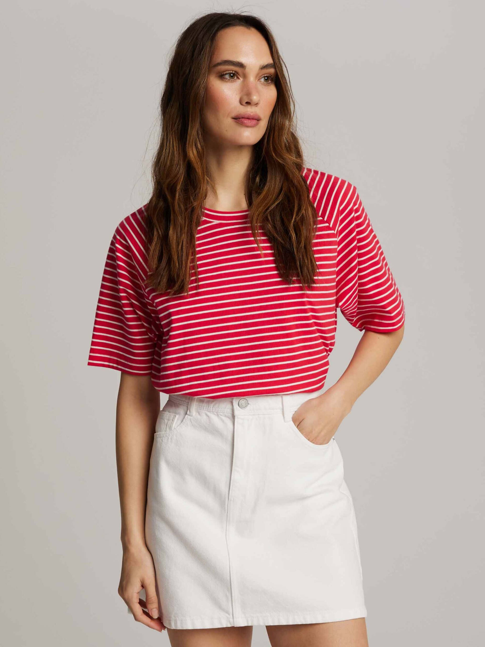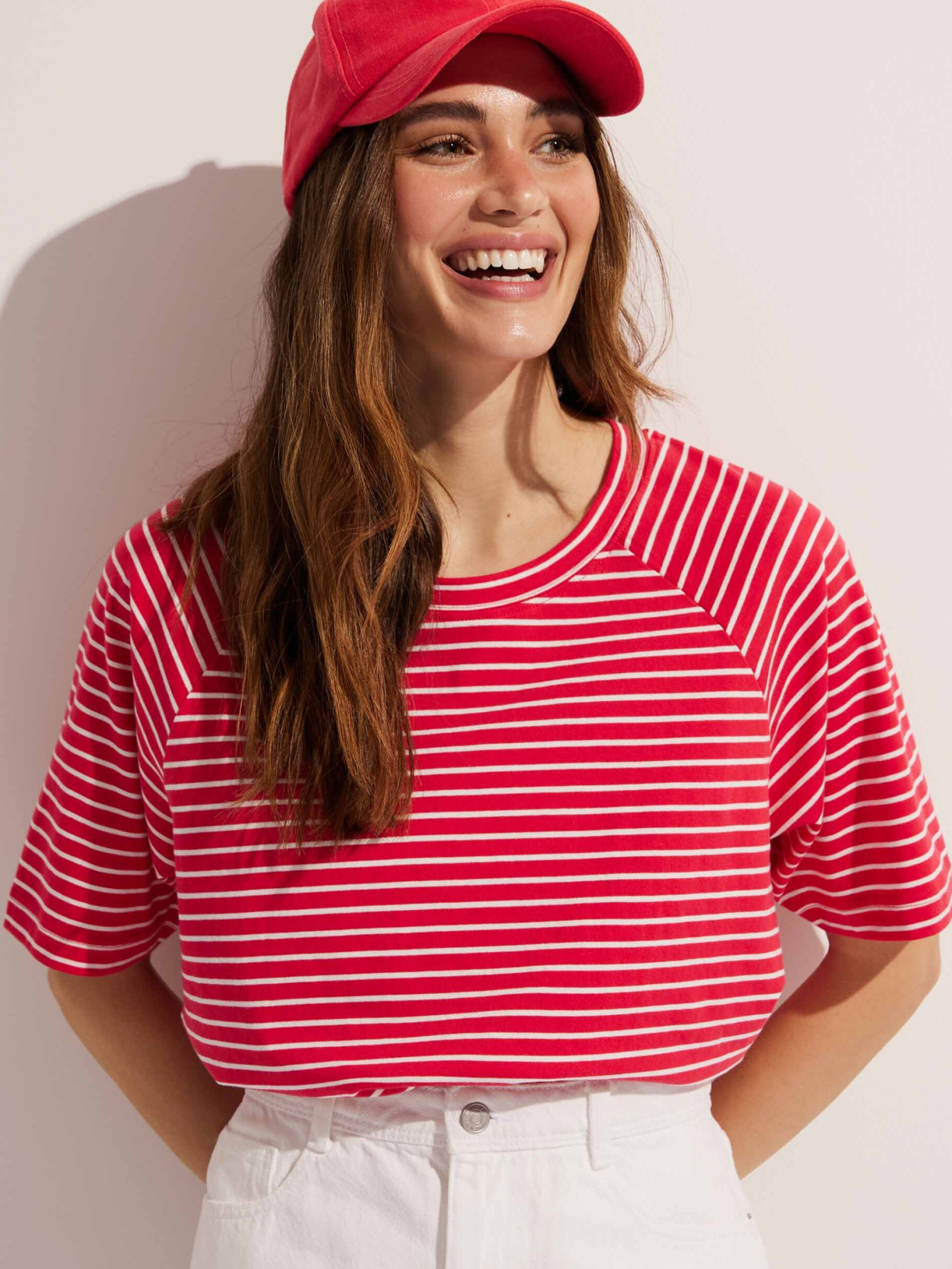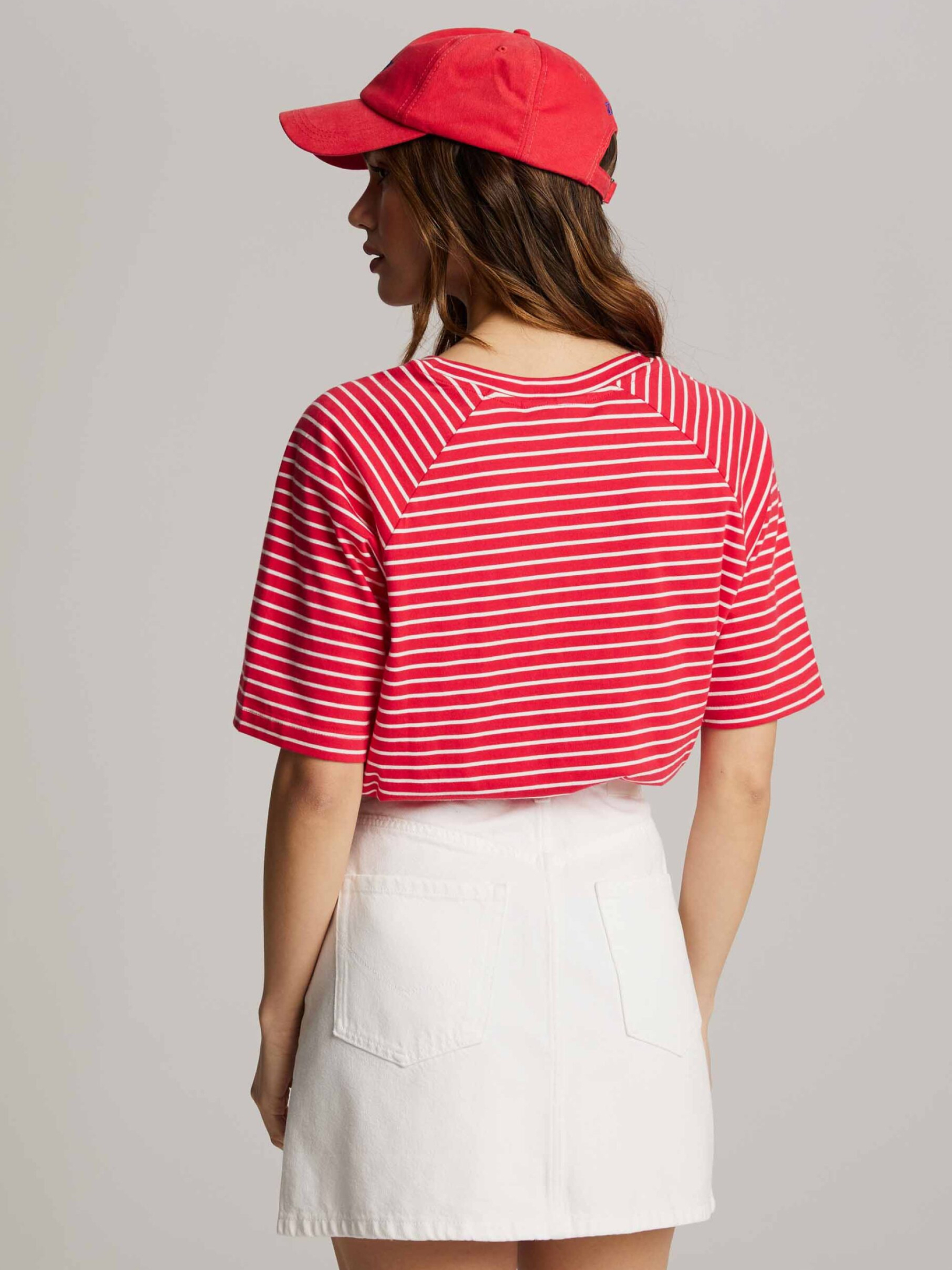 CALDERI Футболка свободного кроя с рукавами реглан: - обычного кроя, - изготовлена из хлопкового трикотажа, - с рукавами реглан, - с короткими рукавами, - доступна в полосках. Состав: 100% хлопок Сезон: Весна/Лето Уход: - стирка при максимуме 30 °С - деликатные вещи - не отбеливать - не сушить в сушильной машине - гладить максимум при темпе. 110 °С - не химчистка