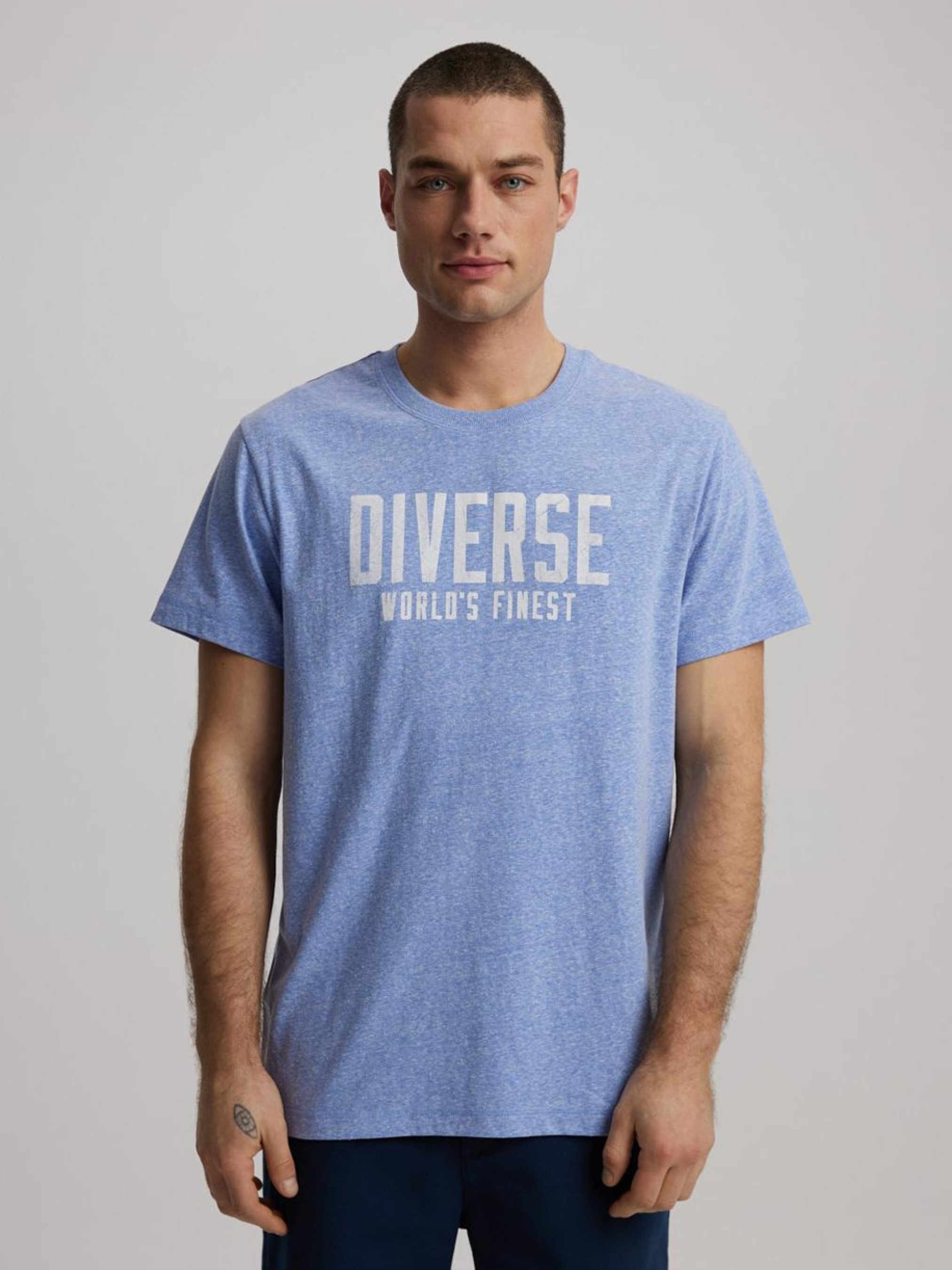 MERCED VIII Regular Fit Футболка свободного кроя из меланжевого трикотажа: - Diverse логотип на груди, - Декоративный ярлык спереди внизу. Состав: 50% полиэстер 38% хлопок 12% вискоза Сезон: Весна/Лето Уход: - стирка при максимуме 30 °С - деликатные вещи - не отбеливать - не сушить в сушильной машине - гладить максимум при темп. 110 °С - не химчистка Размер на модели – XL Рост модели – 186 см
