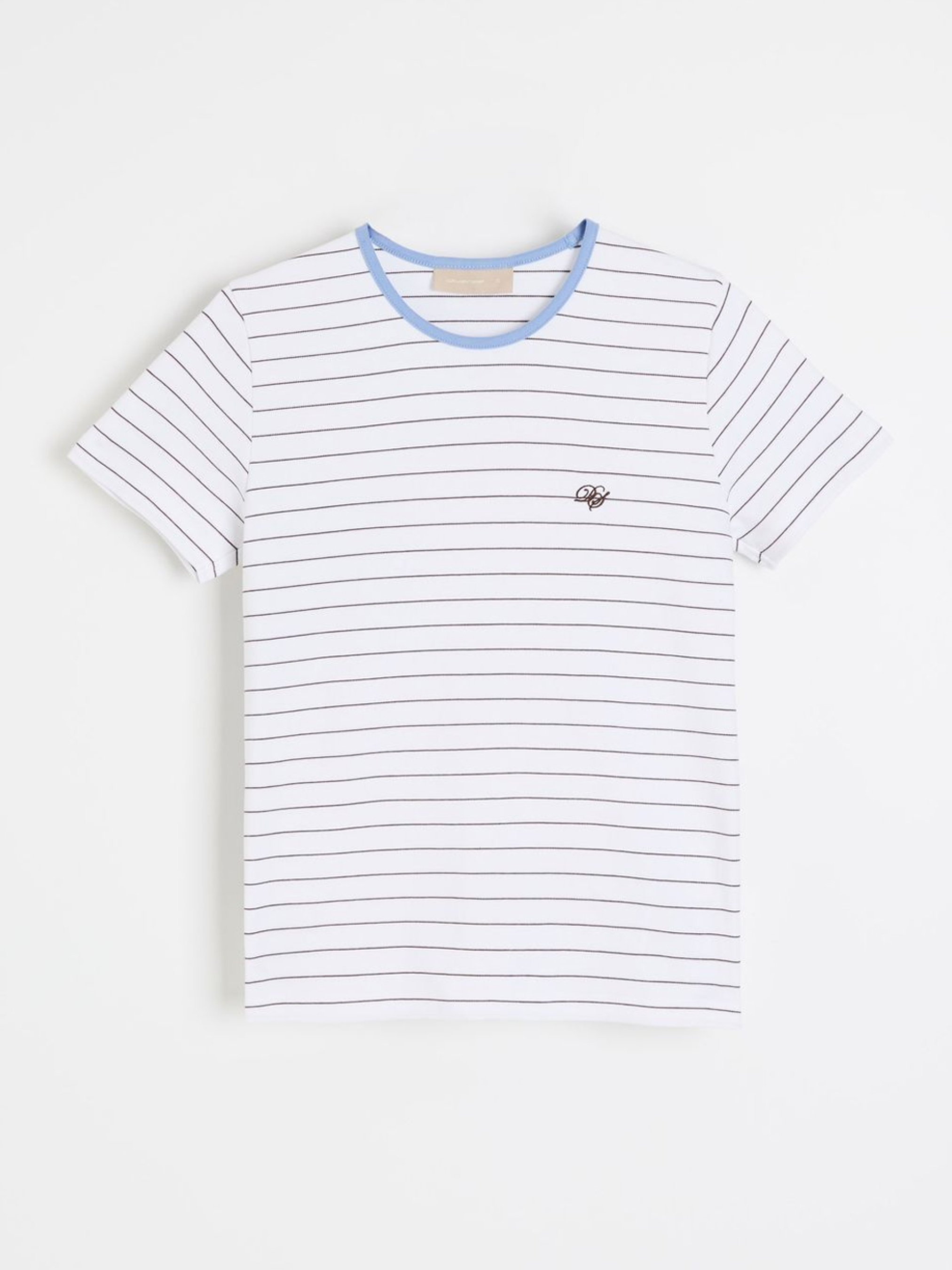 Футболка PILORA / ID: 10048883 Рост модели: 175 см Размер товара: S Женская полосатая футболка с контрастным воротником – обычный крой, круглый вырез горловины, полосатый узор, контрастный воротник, короткие рукава. Идеально подходит для весенних и летних дней, хорошо сочетается с повседневной одеждой. Внешний состав 96% хлопок 4% эластан Уход: - стирка при максимум 30 °С - деликатная стирка - не отбеливать - не сушить в сушильной машине - гладить при максимальной температуре 110 °C - не подвергать химчистке Размер: XS S М L XL Длина спинки: 54 56 58 60 62 Ширина снизу: 43 45 47 49 51 Ширина подмышками: 42,5 44,5 46,5 48,5 50,5 Длина рукава: 15 16 17 18 19