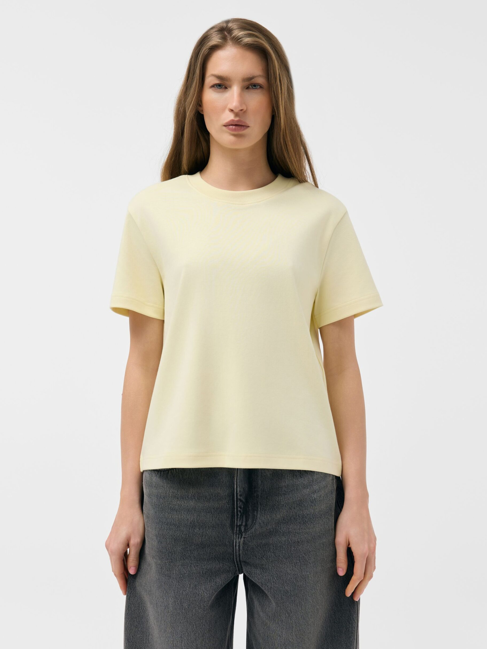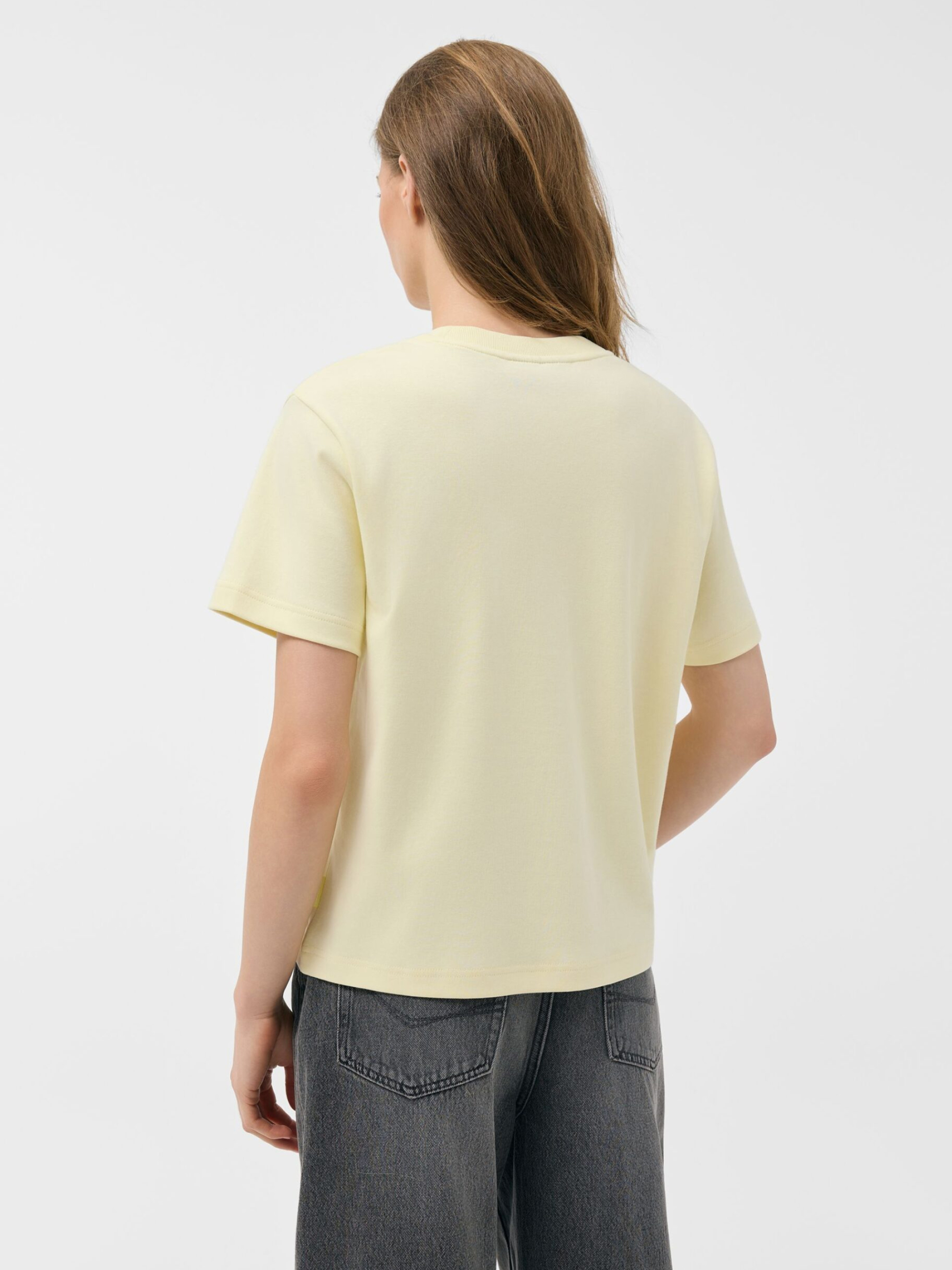 Футболка JASINTA 261 / ID: 10048881 Женская хлопковая футболка - классический крой, круглый вырез горловины, 100% хлопок. Идеально подходит для повседневного стиля, незаменимая часть вашего летнего гардероба. Уход: - стирка при максимум 30 °С - деликатная стирка - не отбеливать - не сушить в сушильной машине - гладить при максимальной температуре 110 °C - не подвергать химчистке Размер: XS S М L XL Длина спинки: 56 58 60 62 64 Ширина снизу: 51 53 55 57 59 Ширина подмышками: 50 52 54 56 58 Длина рукава: 18,5 19,5 20,5 21,5 22,5