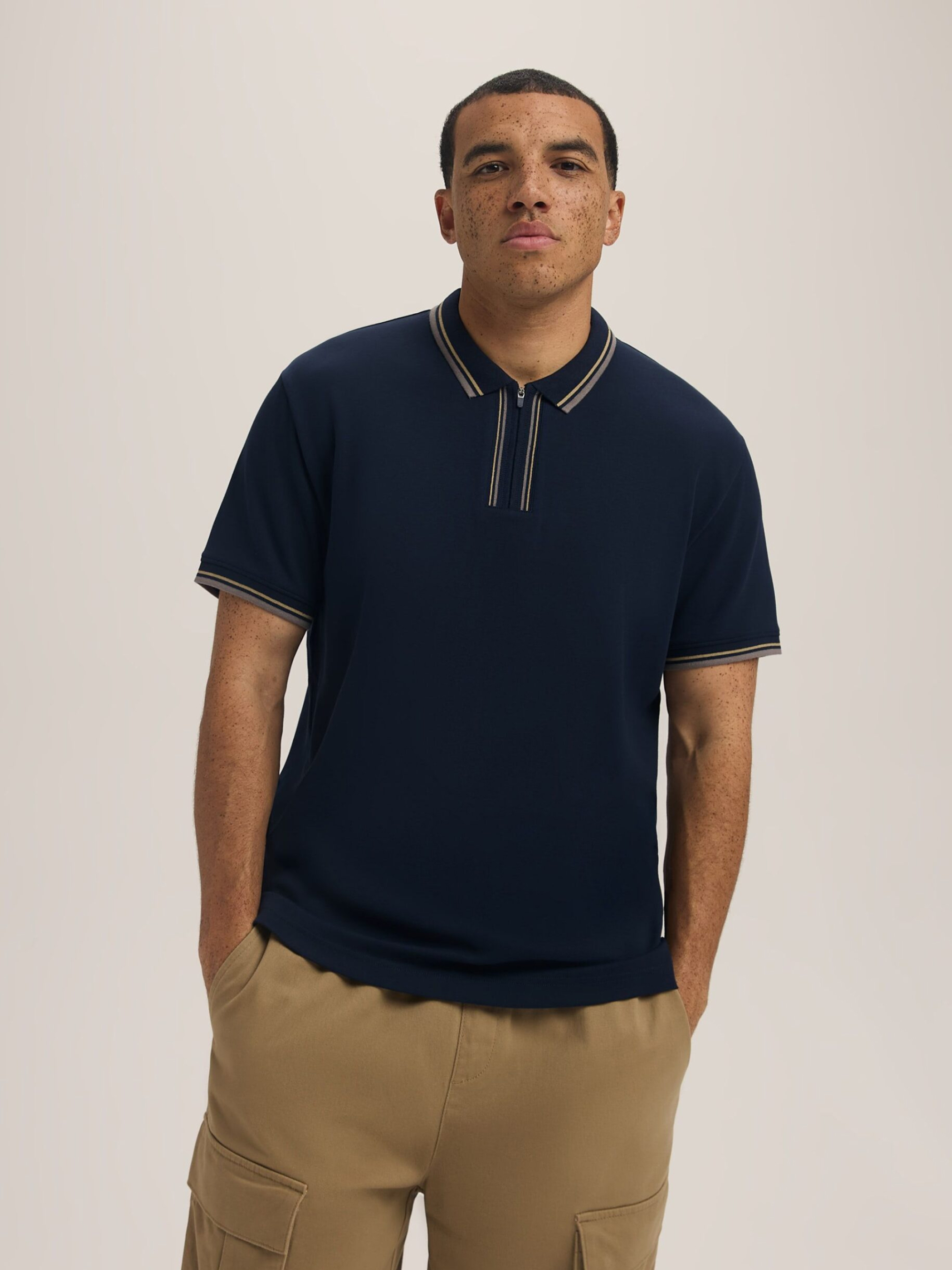 Футболка-поло на молнии с контрастными полосками STRIPEZIP / ID: 10047745 Обычный крой (Regular Fit) Рост модели: 186 см Размер товара: XL Гарантирует долговечность и идеальную посадку по фигуре: - контрастные полоски на воротнике и рукавах, - молния под горловиной, - короткие рукава. Наружный состав 97% хлопок 3% эластан Уход: - стирка при максимуме 30 °С - деликатные вещи - не отбеливать - не сушить в сушильной машине - гладить максимум при темпе. 110 °С - не подвергать химчистке Размер: М, L, XL, XXL, XXXL, Общая длина спинки: 71, 73, 75, 77, 79, Ширина снизу: 52, 54, 56, 59,5, 63, Ширина груди: 53, 55, 57, 60,5, 64, Внешняя длина рукава: 20, 21, 22, 23, 24,5,