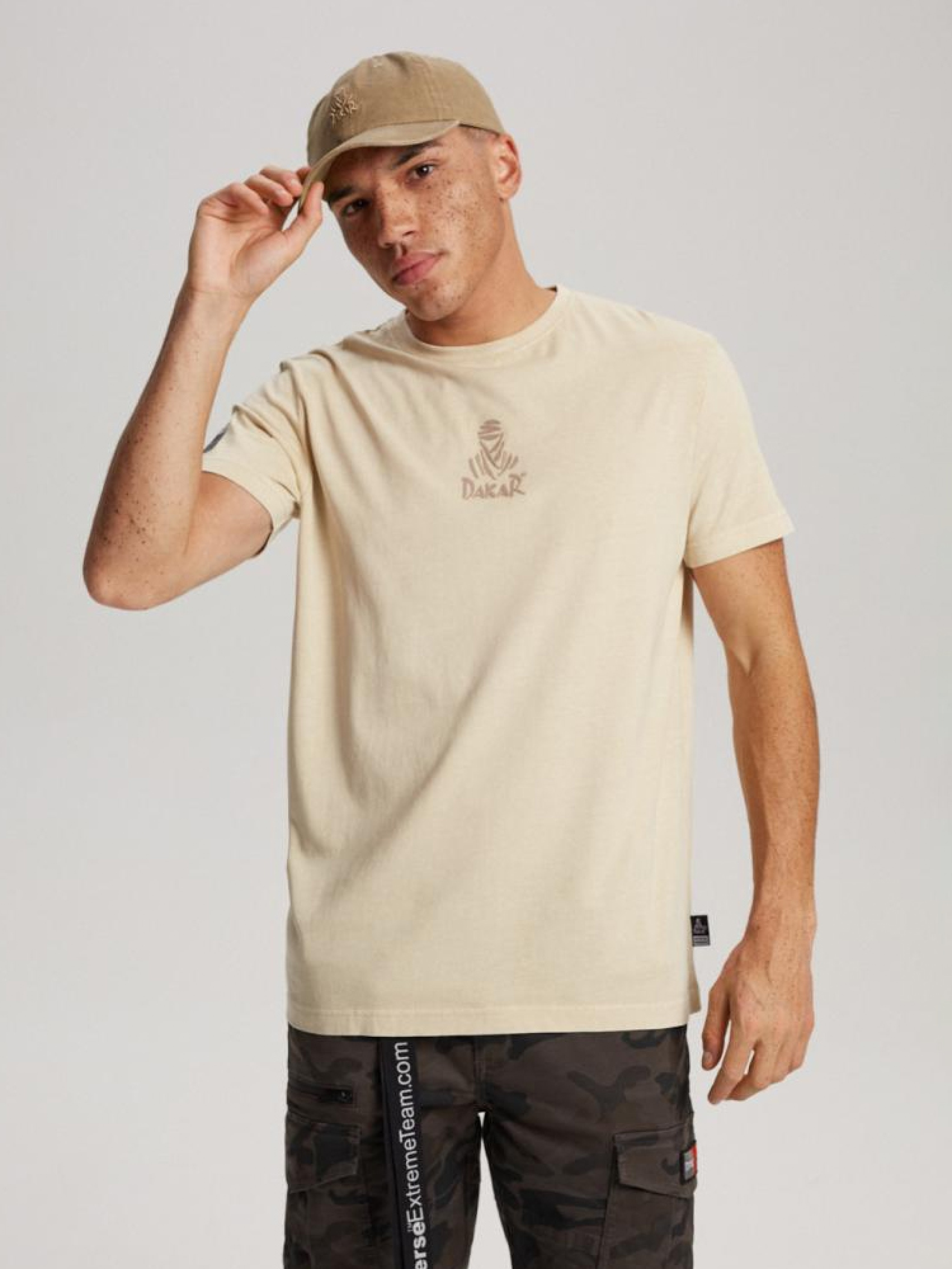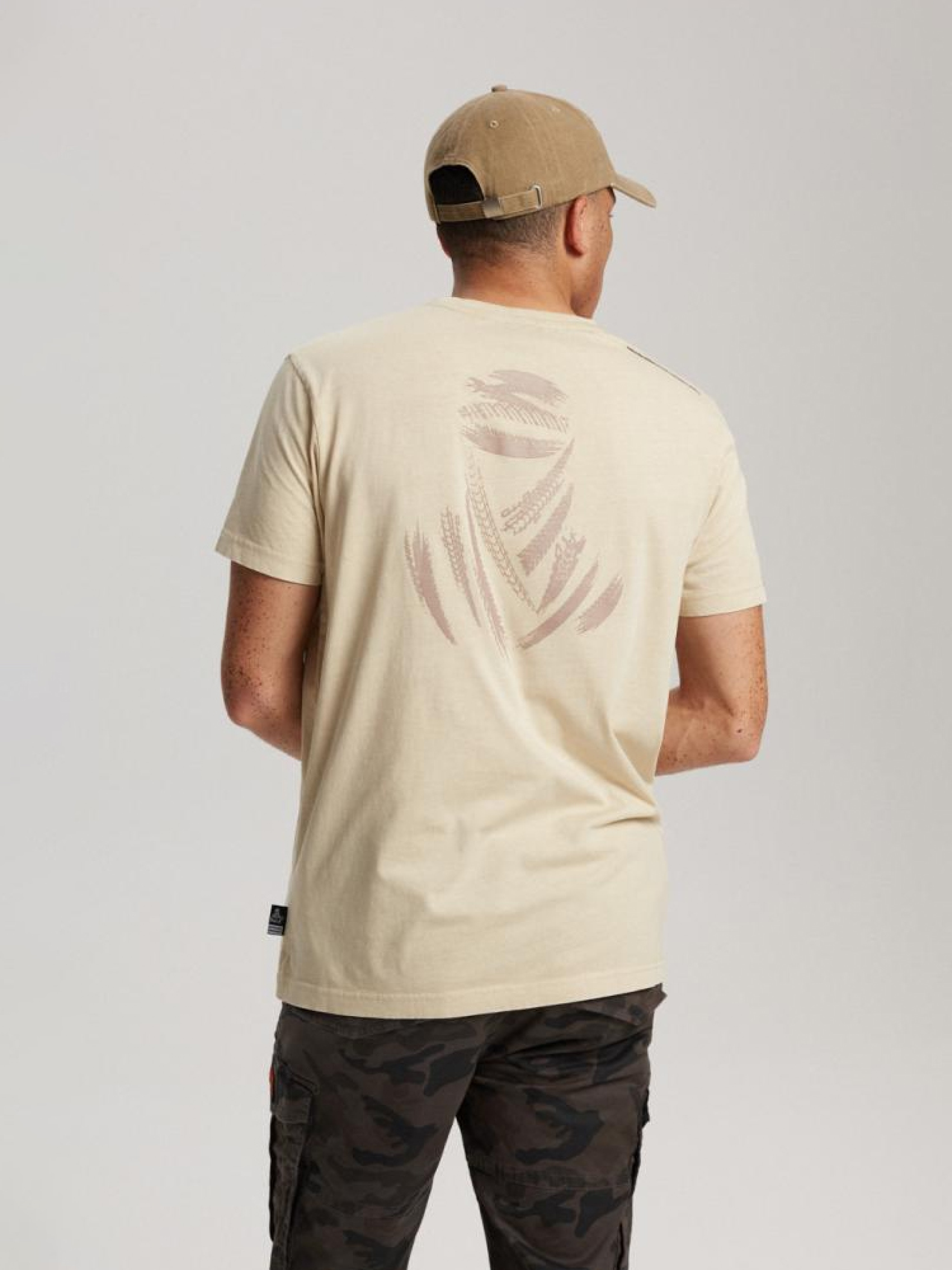 Мужская футболка с коротким рукавом обычного кроя. Имеет интересный принт как спереди, так и сзади. Для изделий этой серии характерны изысканные детали. Кроме того, украшена декоративными этикетками, посвященными линии. Основные характеристики: - интересный принт спереди и сзади, - логотип на рукаве, - декоративная этикетка сбоку, - доступна в бежевом цвете. Состав: 100% хлопок. Сезон: Весна-Лето Уход: - стирка при максимум 30 °С - не отбеливать - не сушить в сушильной машине - гладить максимум при темпе. 110 °С - не химчистка Размер на модели – L Рост модели – 187 см