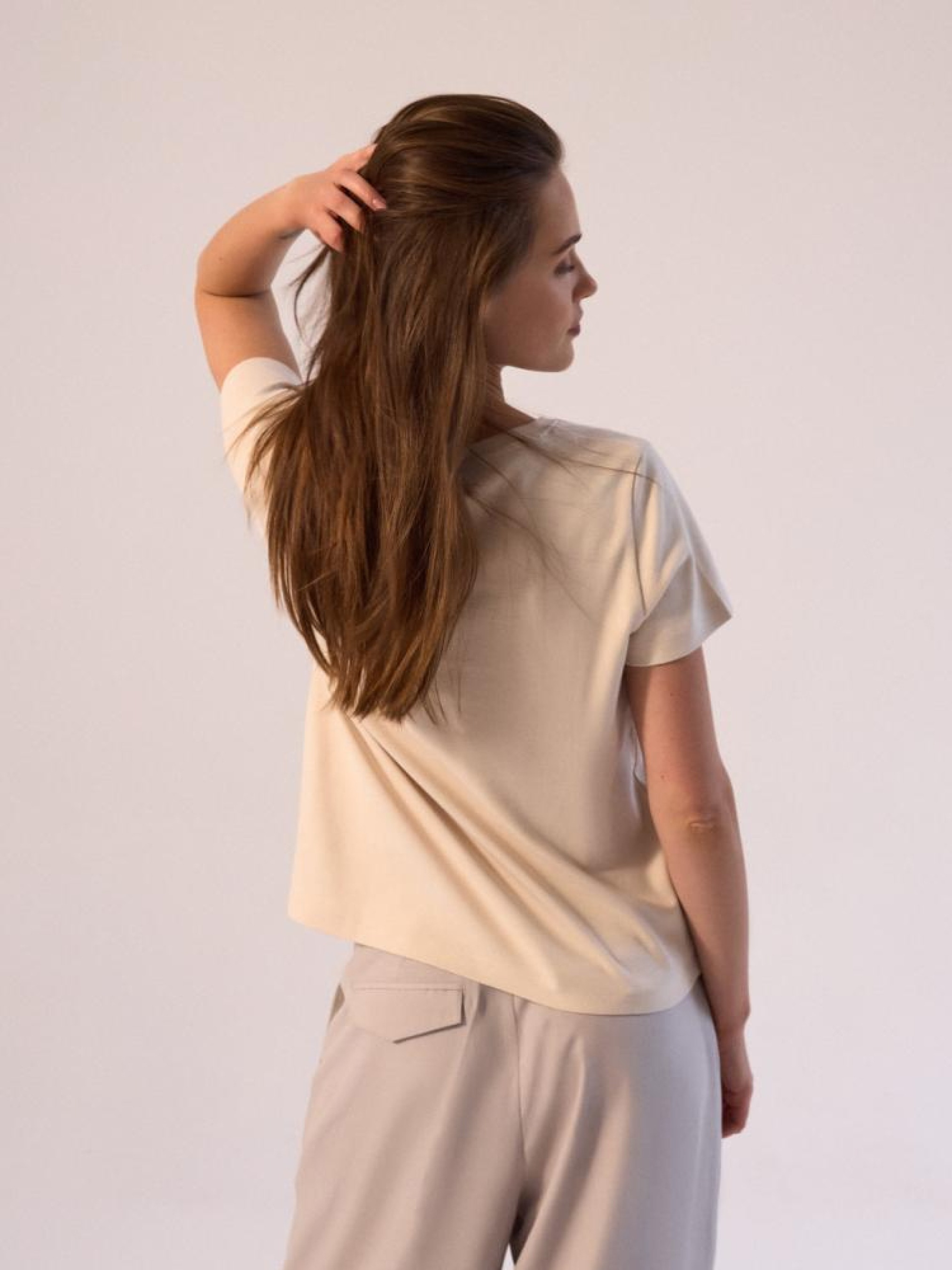 Футболка BAUTIS 10045102 из высококачественной хлопковой ткани: - из плотной хлопковой ткани, - горловина круглая, - спереди декоративная вышивка, - доступный цвет экрю. Сезон: осень/зима 2024 Состав: 100% хлопок Уход: - стирка при максимум 30 °С - деликатные вещи - не отбеливать - не сушить в сушильной машине - гладить максимум при темп. 110 °С - не химчистка Размер на модели - M Рост модели - 174 см