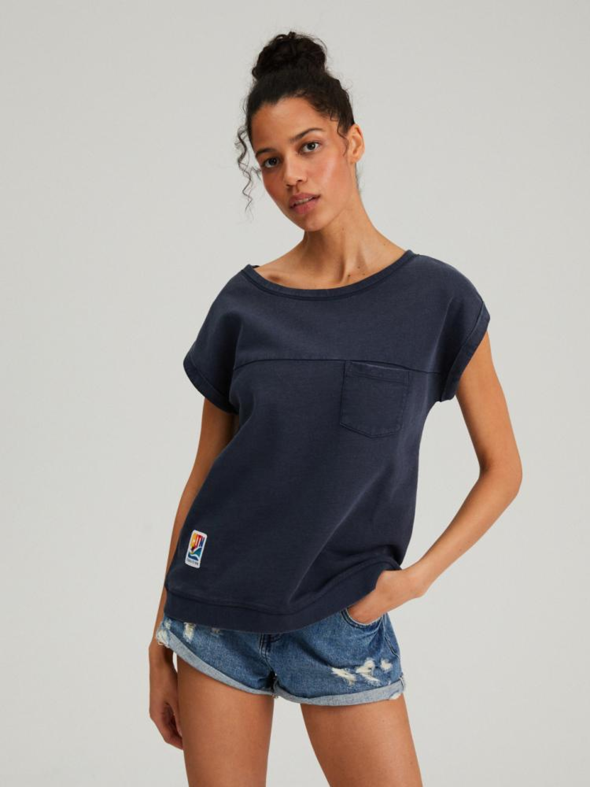 CLTN R LUGGIA Футболка 10042128 Хлопковая трикотажная футболка с декоративной прострочкой и карманом: - классического кроя, - из хлопкового трикотажа, - с декоративной прострочкой, - с карманом, - с подвернутыми рукавами, - темно-синего цвета. Сезон: Весна/Лето 2023 Состав: 100% хлопок Уход: - стирка при максимум 30 °С - деликатные вещи - не отбеливать - не сушить в сушильной машине - гладить максимум при темп. 110 °С - не химчистка Размер на модели - S Рост модели - 180 см
