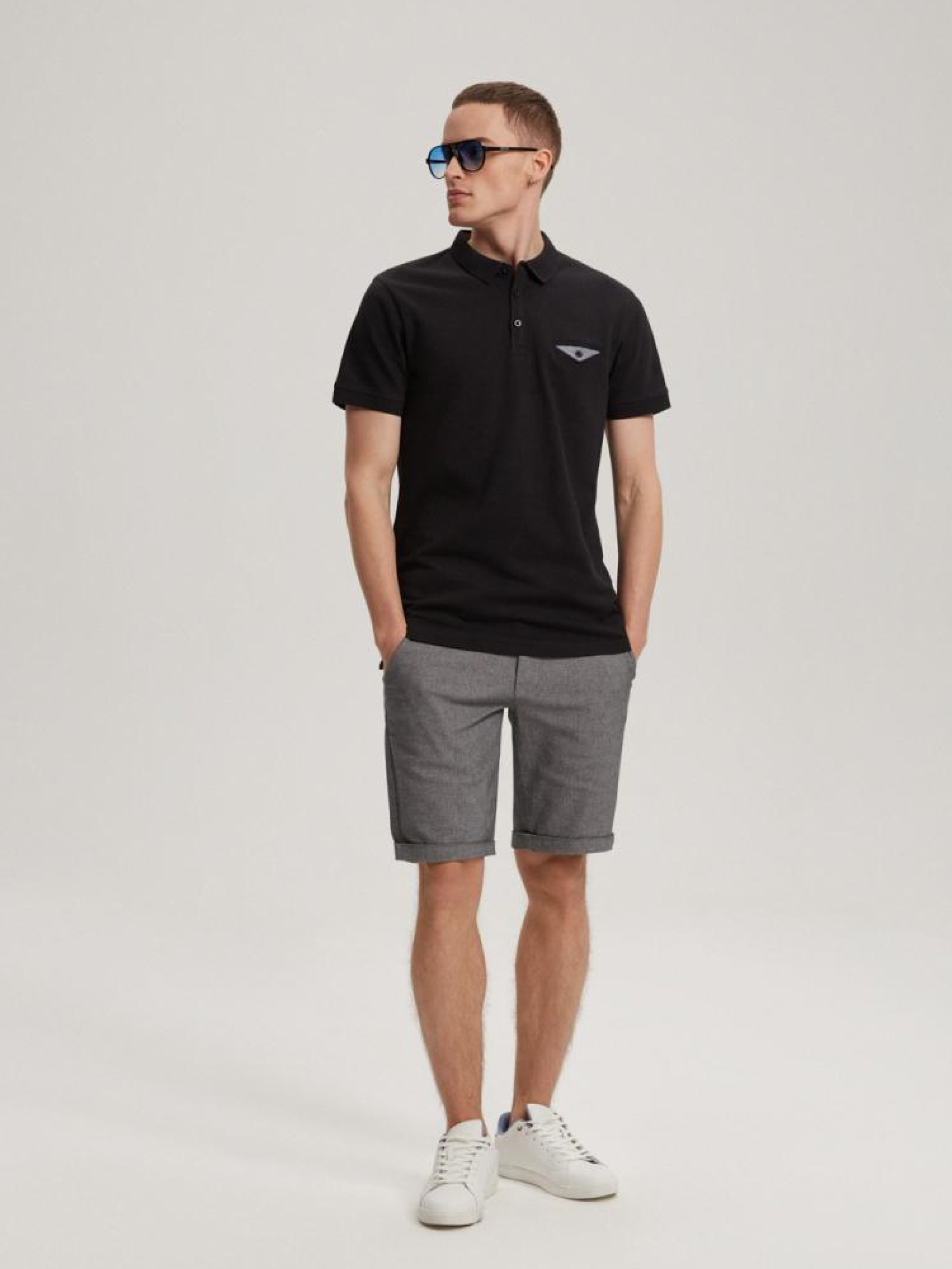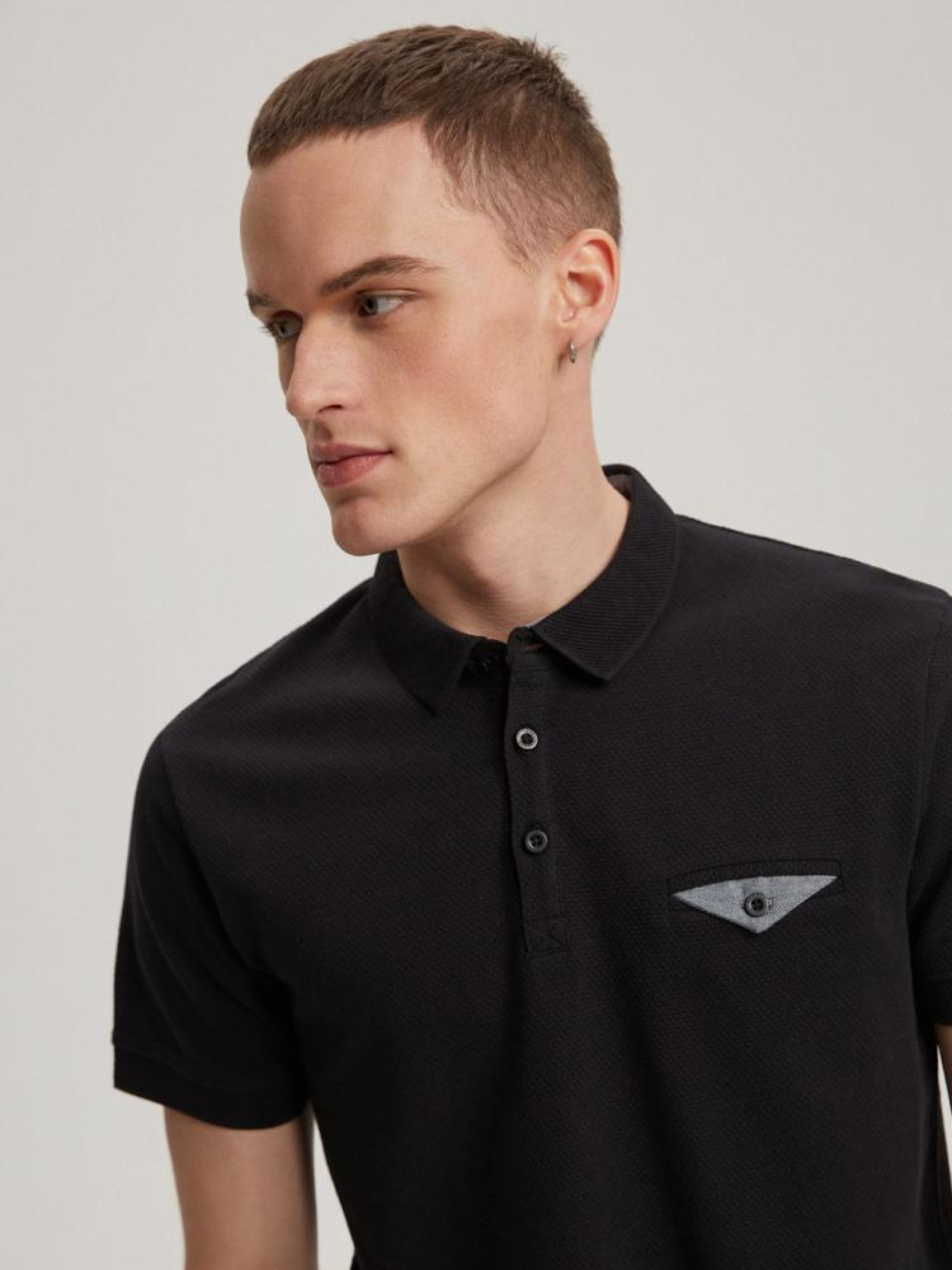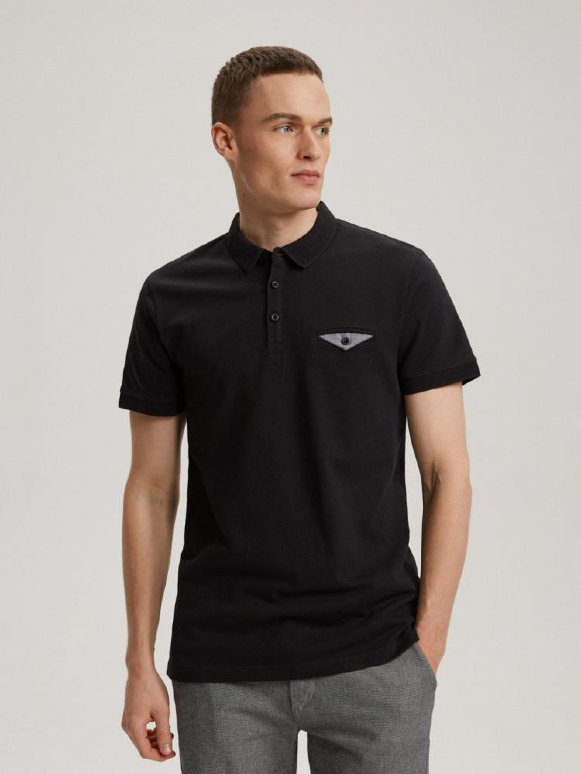 Polo PRM P 0323 10041297 Футболка поло с коротким рукавом приталенного кроя из линии Premium. Его уникальность подчеркивают контрастные детали: - имитация кармана на груди, - интересный воротник со структурным узором, - застежка на пуговицы, - доступна в белом и черном цветах. Сезон: Весна/Лето Состав: 100% хлопок Уход: - стирка при максимум 30 °С - деликатные вещи - не отбеливать - не сушить в сушильной машине - гладить максимум при темп. 110 °С - не химчистка Размер на модели - L Рост модели - 188 см