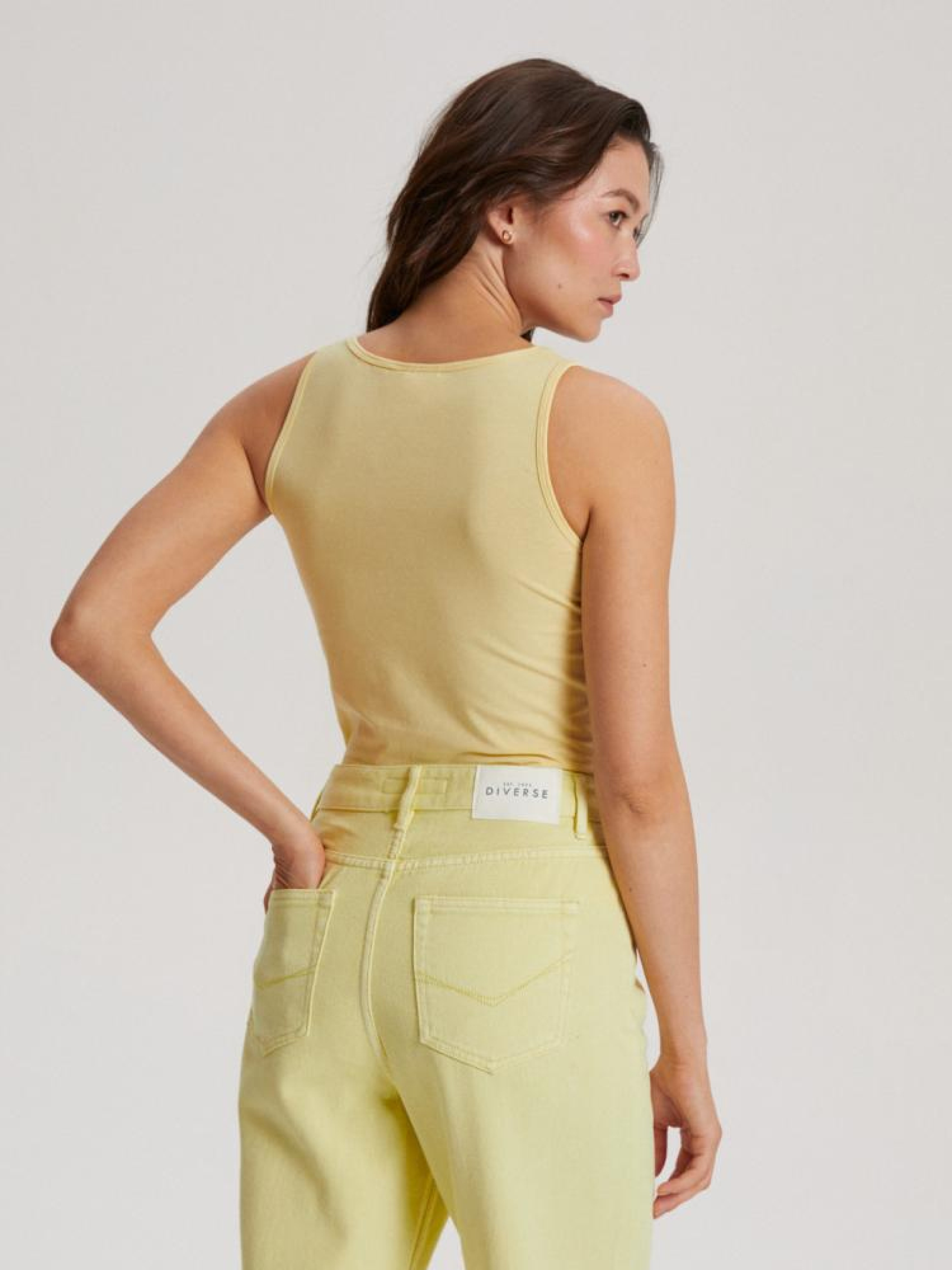 Топ MONK 10041476 Трикотажный топ с круглым вырезом: - приталенного кроя, - из хлопкового трикотажа с примесью эластана, - с круглым вырезом, - доступен в светло-желтом цвете. Сезон: Весна/Лето Состав: 95% хлопок, 5% эластан Уход: - стирка при максимум 30 °С - деликатные вещи - не отбеливать - не сушить в сушильной машине - гладить максимум при темп. 110 °С - не химчистка Размер на модели - S Рост модели - 173 см