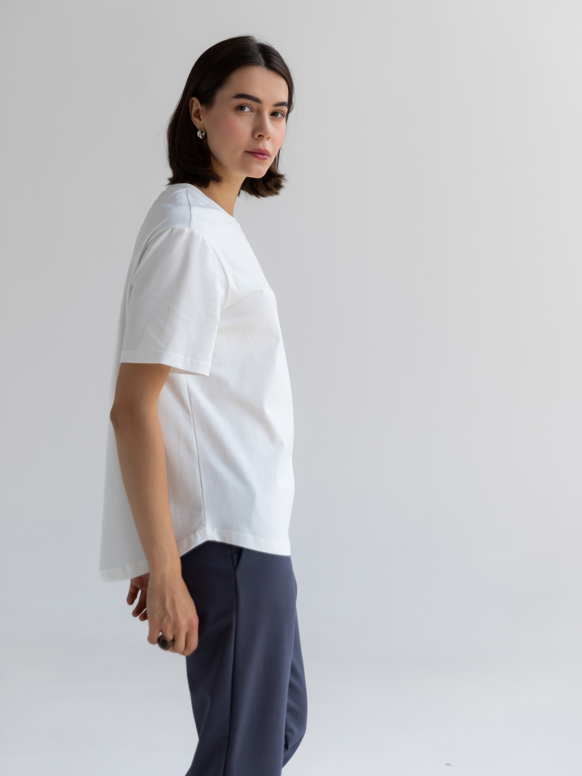 Хлопковая однотонная футболка - базовая вещь для любого гардероба. Приятная на ощупь ткань, которая дышит и обеспечивает комфорт в течение всего дня, особенно в жару. Классический крой подходит для любого типа фигуры, создавая аккуратный и стильный образ. Однотонный цвет позволяет легко комбинировать футболку с разной одеждой - от джинсов до классических брюк. Идеально подходит как для повседневной носки, так и для активного отдыха. Легкость ухода за футболкой делает ее отличным выбором для тех, кто ценит удобство и практичность в ежедневной жизни. Материал: трикотажное полотно кулирная гладь Сезон: всесезонный Состав: 95% хлопок 5% эластан Рост модели: 175 Параметры модели: 82-63-92 Размер изделия на модели: S Замеры изделия Ширина по груди S(42) - 53см, M(44) - 55см, L(46) - 57см, XL(48) - 59см, XXL(50) - 61см; Ширина по плечам S(42) - 45см, M(44) - 46см, L(46) - 467м, XL(48) -48,5см, XXL(50) -49,5см; Длина рукава S(42) - 25,5см, M(44) - 23см, L(46) - 23,5см, XL(48) - 24,5см, XXL(50) - 25,5см; Длина изделия по середине переда S(42) - 66,5см, M(44) - 61см, L(46) - 62см, XL(48) - 62,5см, XXL(50) - 63см.